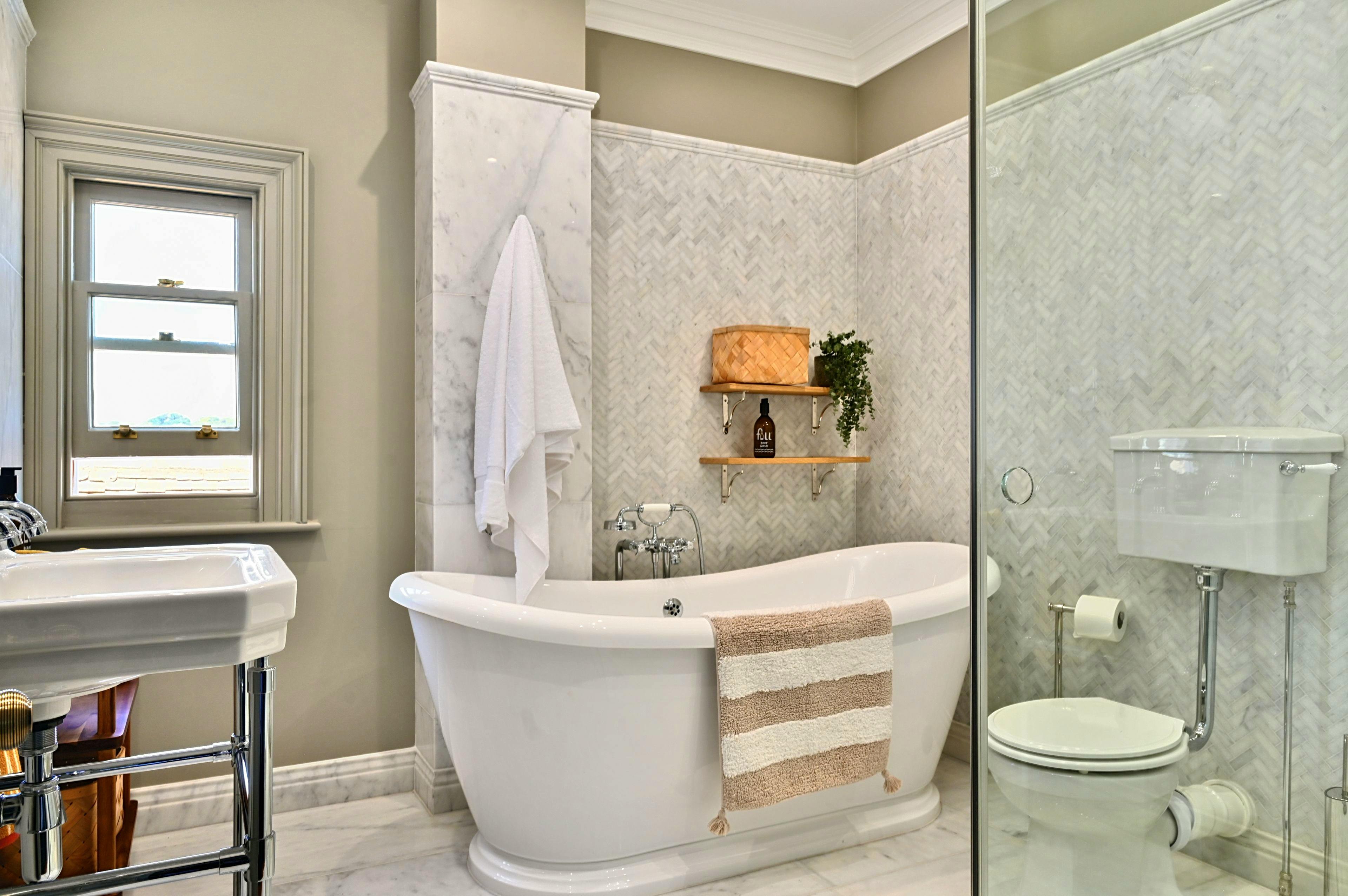 Seven boutique bedrooms and six bathrooms, beautifully designed with luxury linens and heritage charm.