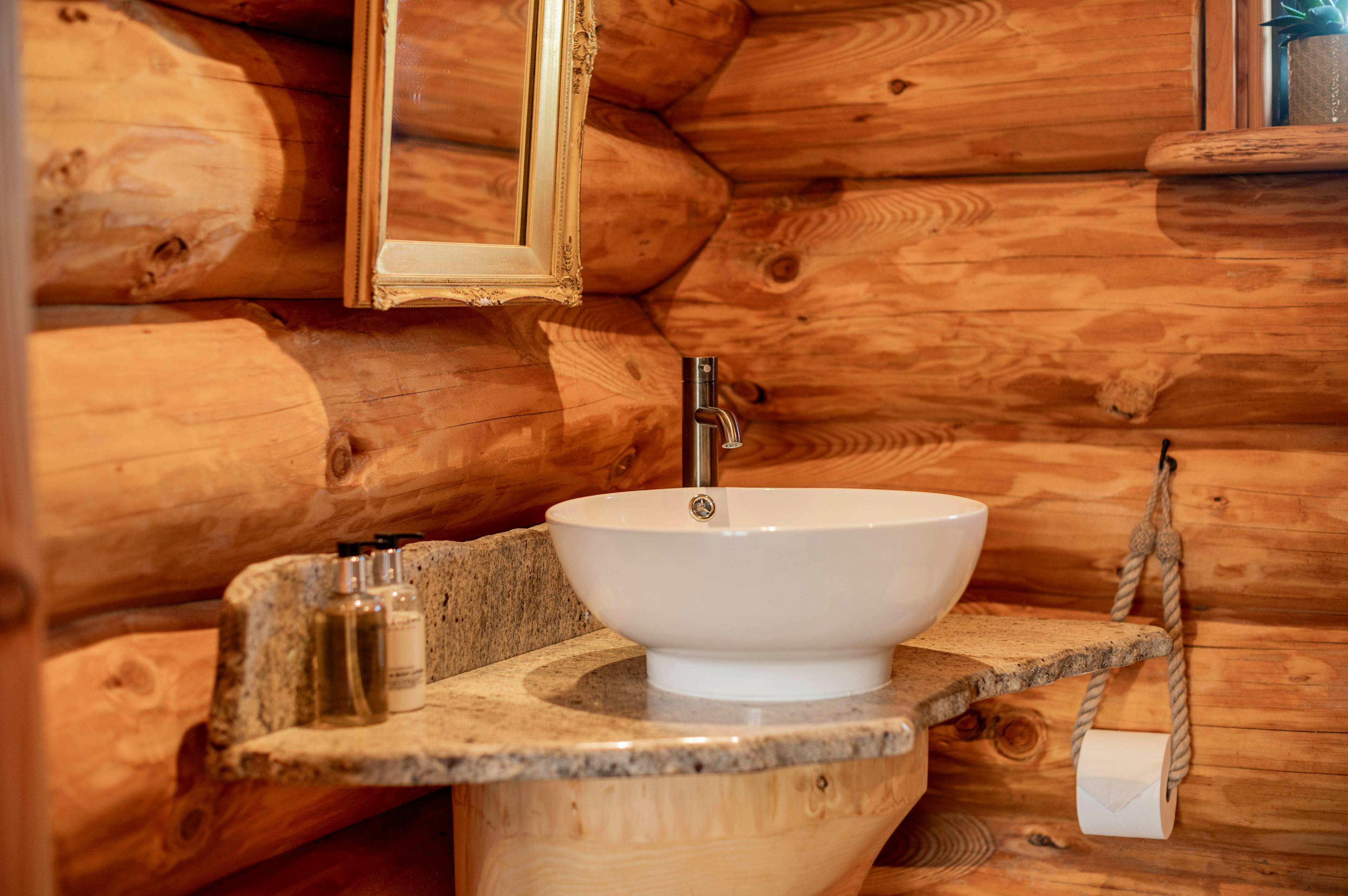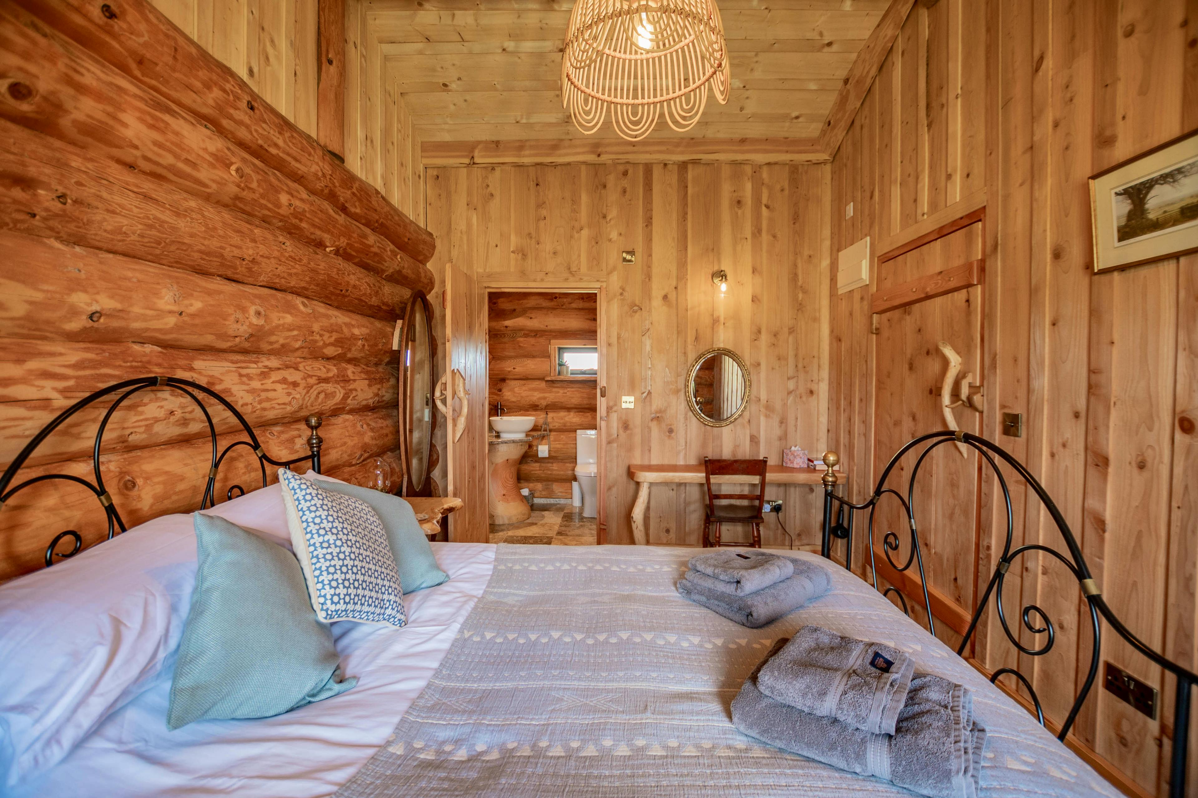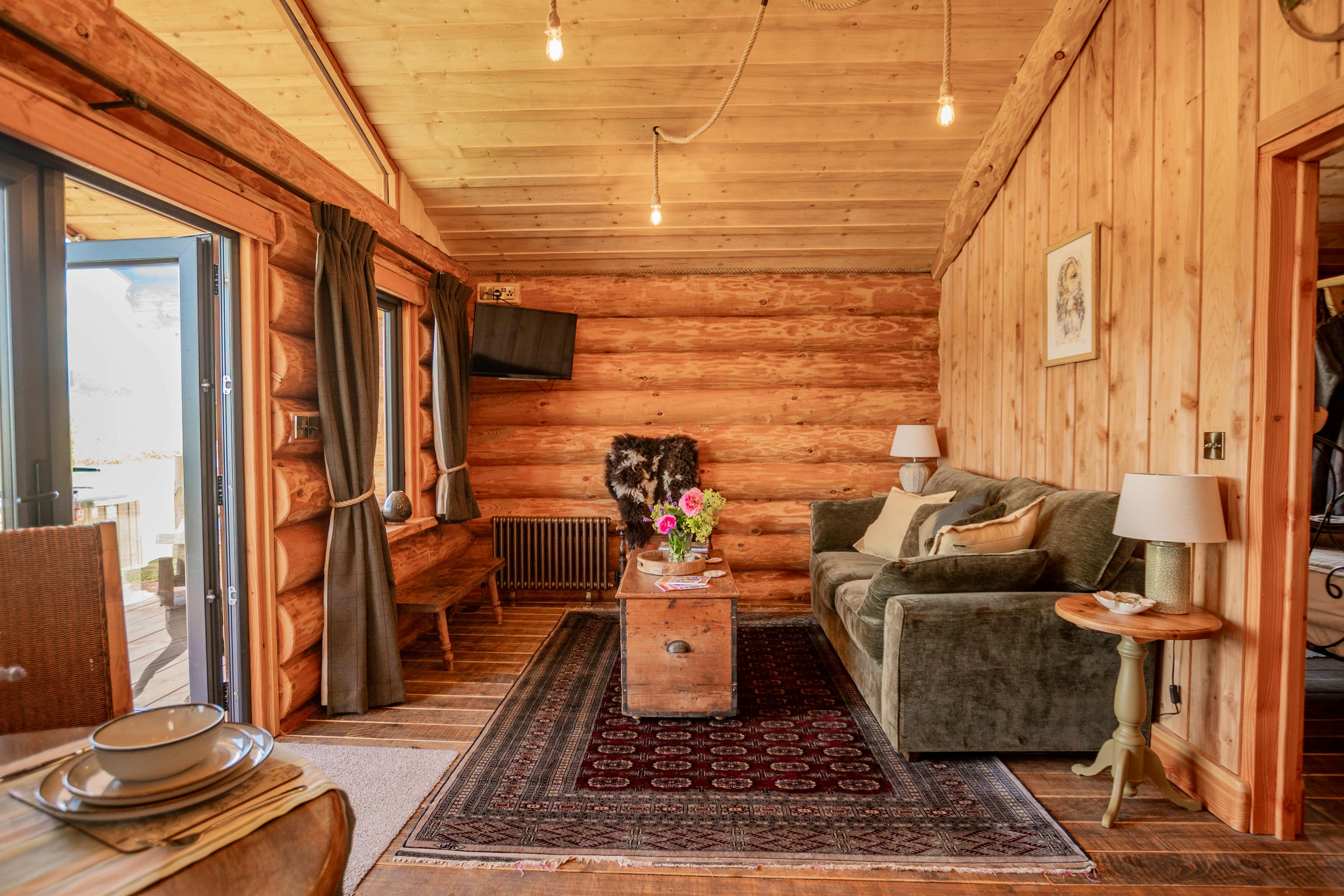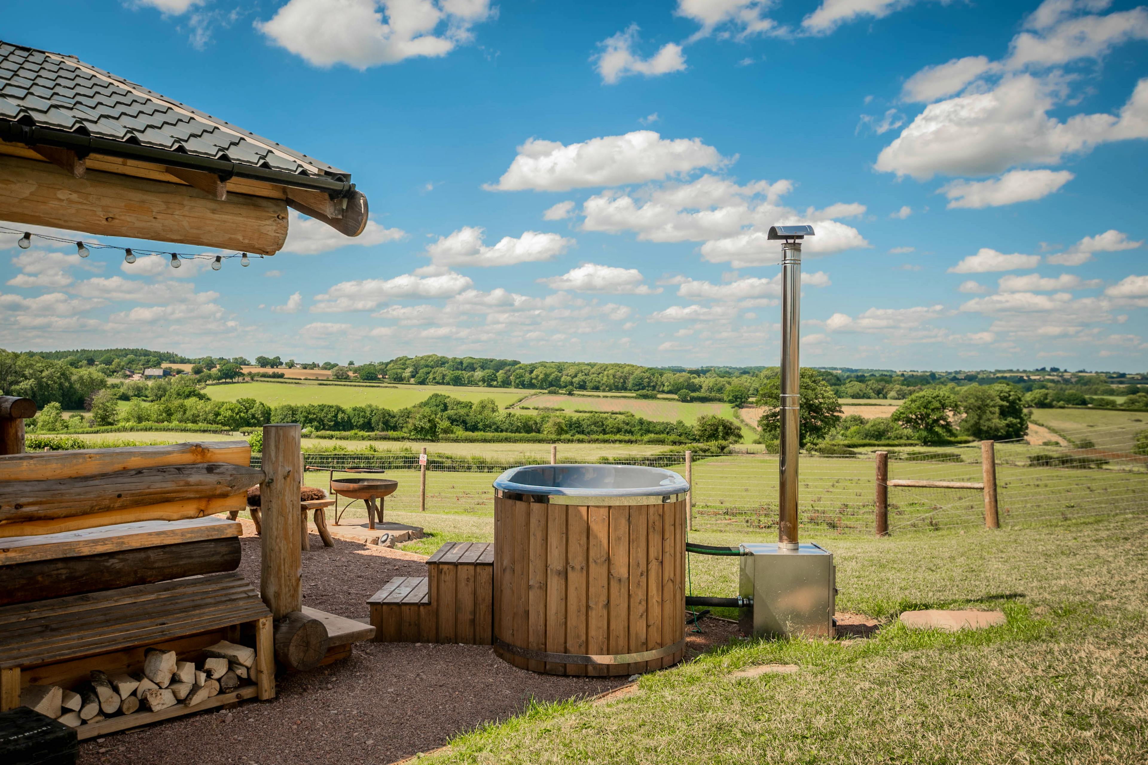 Handcrafted log cabin with a wood fired hot tub set in the Herefordshire countryside, perfect for a quiet couple’s escape.