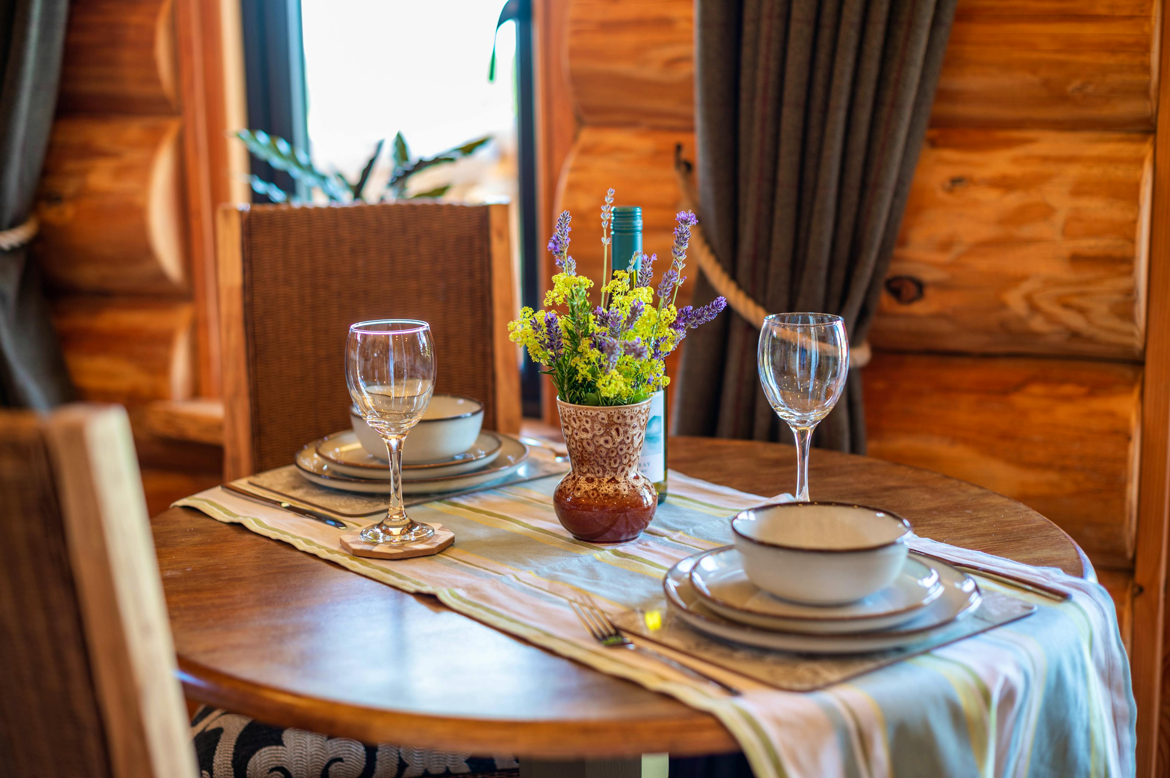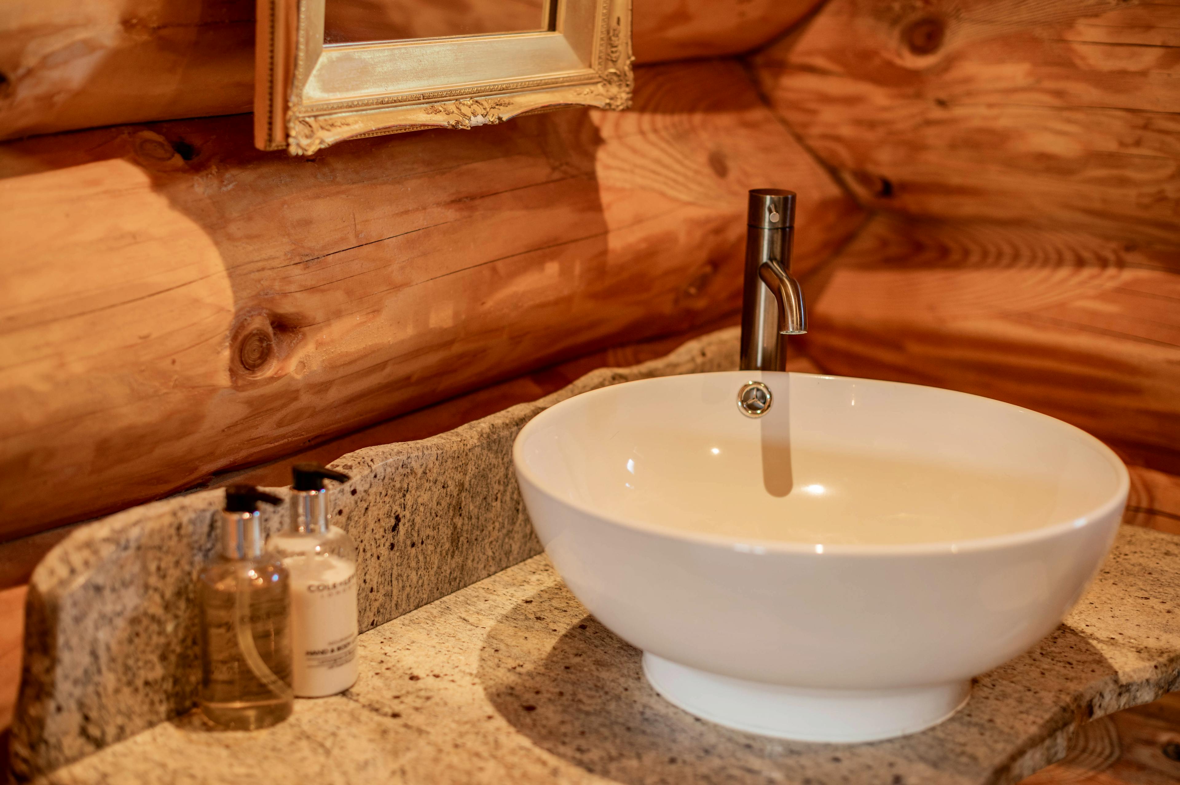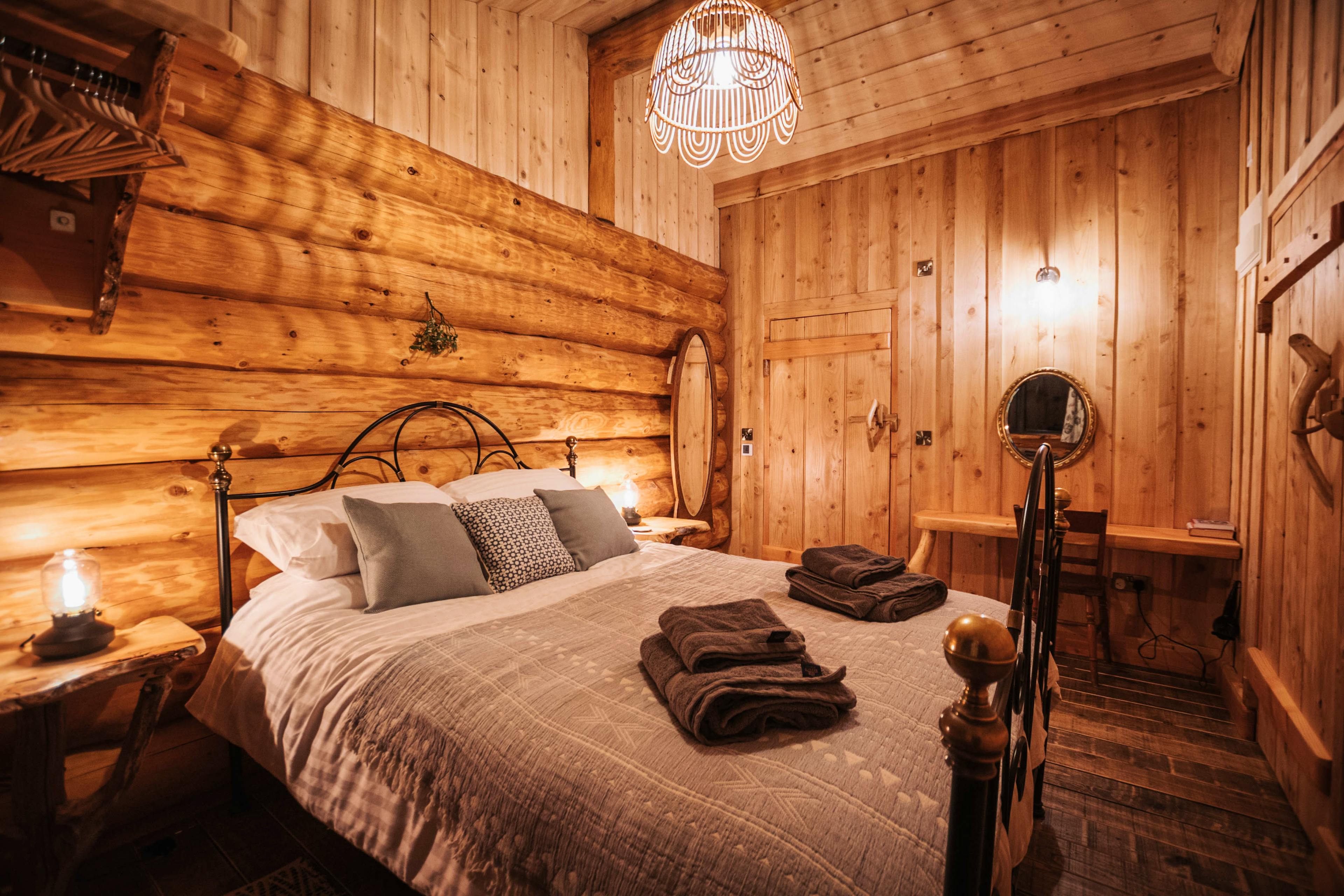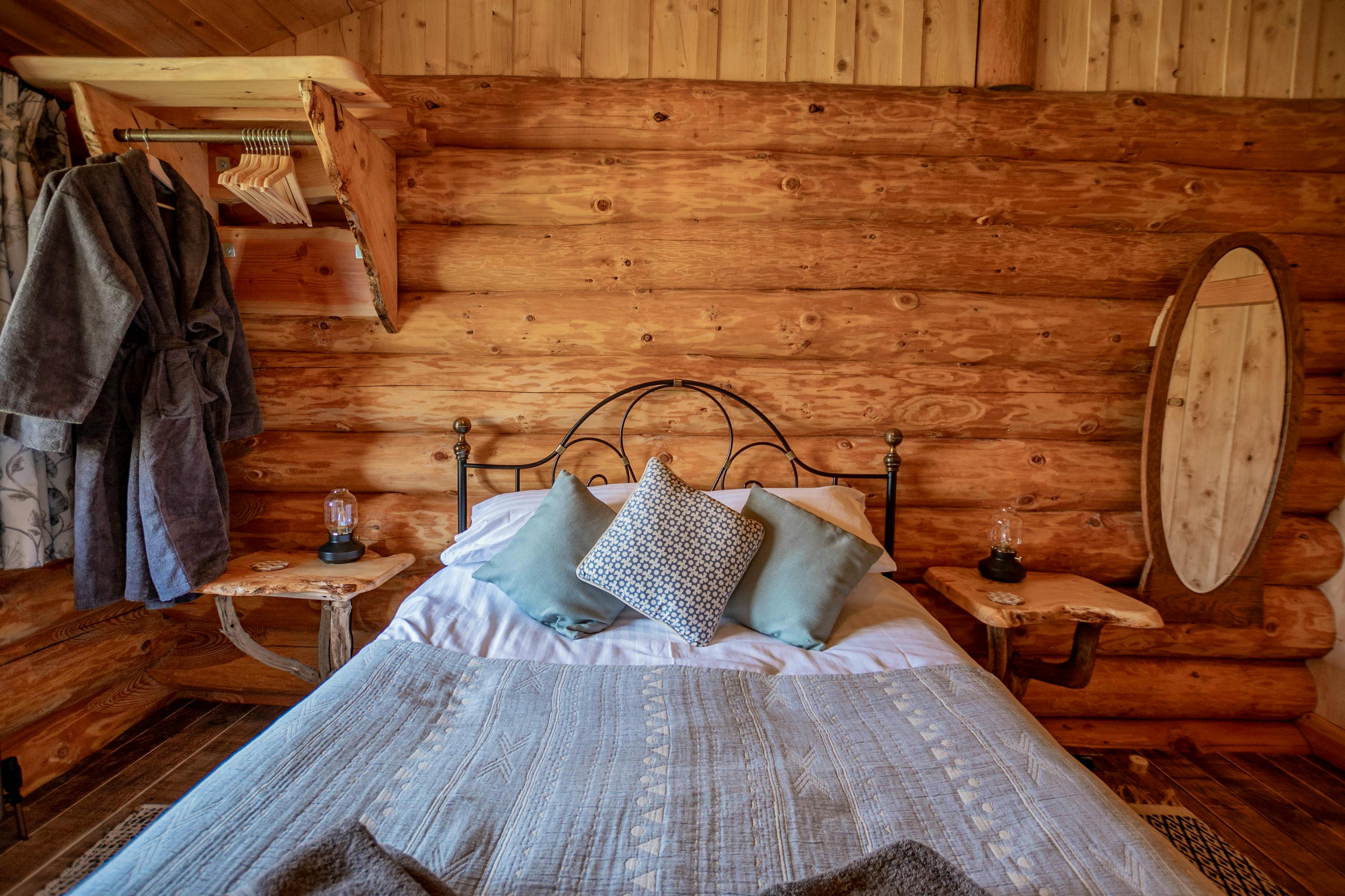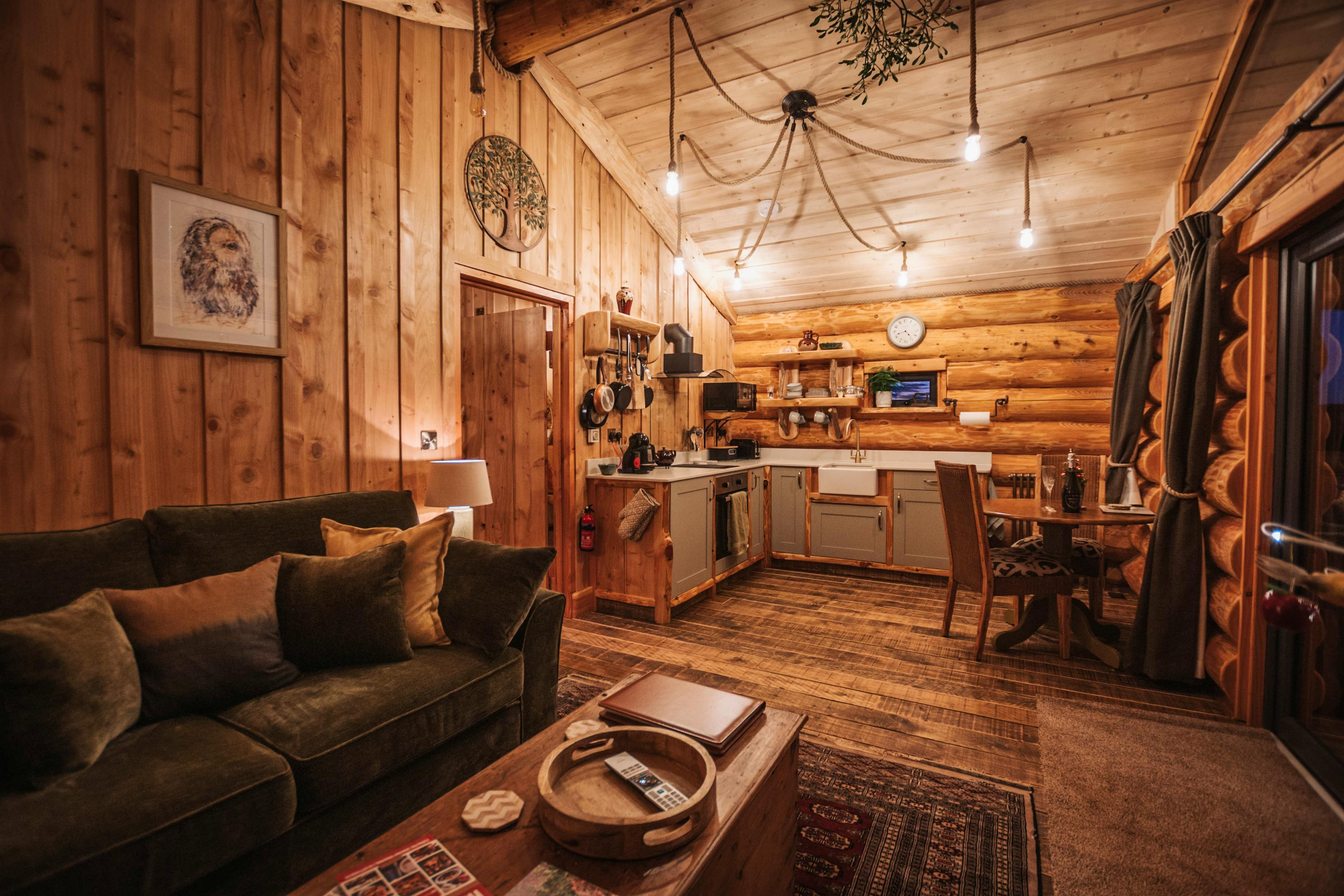 Handcrafted log cabin with a wood fired hot tub set in the Herefordshire countryside, perfect for a quiet couple’s escape.