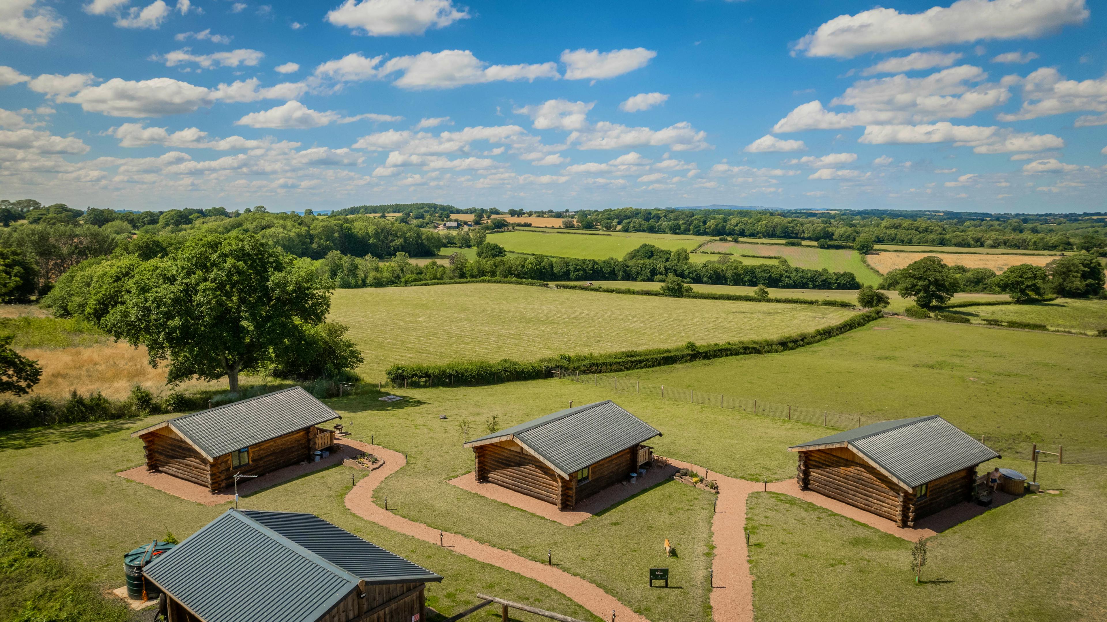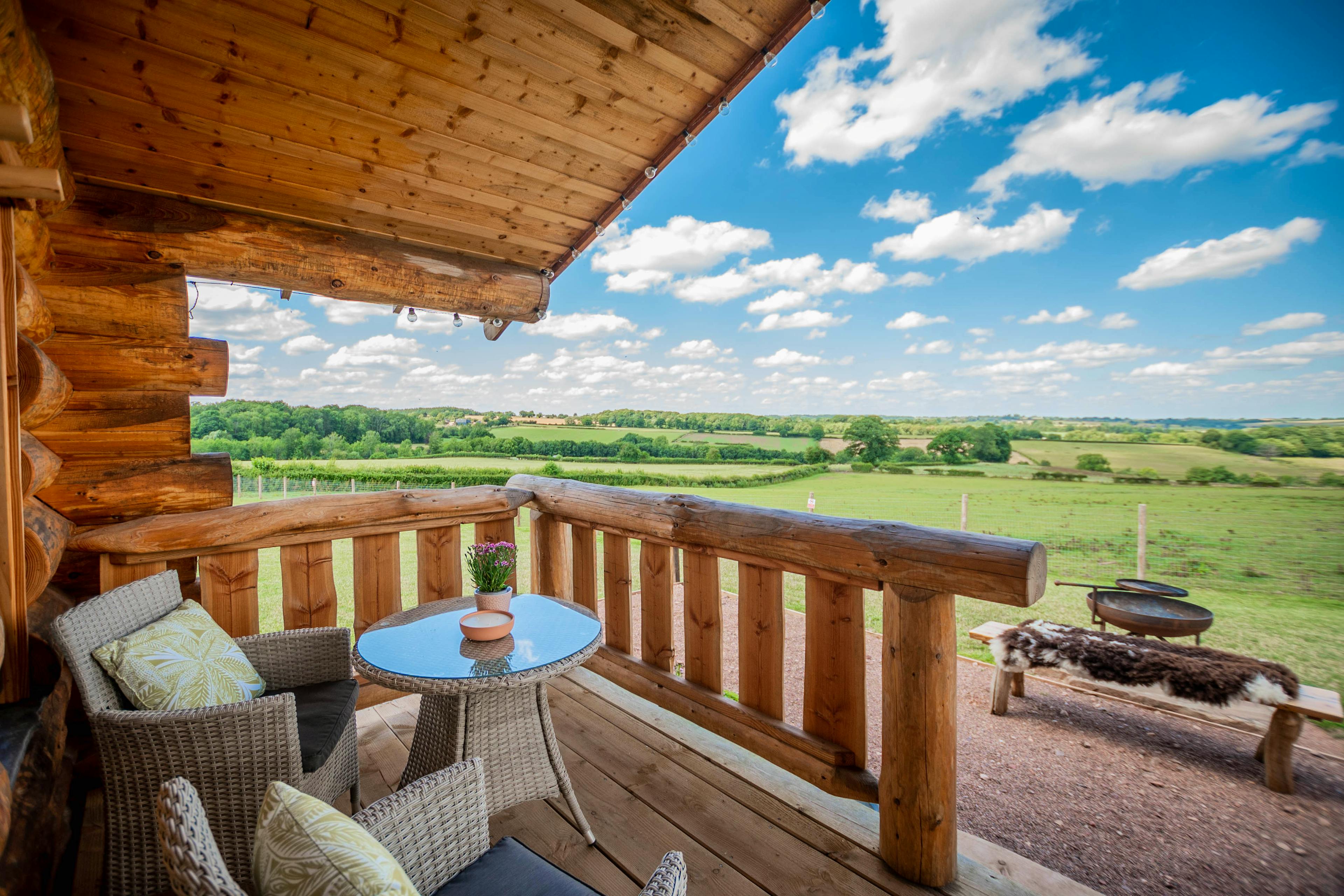 Bespoke log cabin, with uninterrupted views over rolling countryside on the border between Herefordshire and Worcestershire.