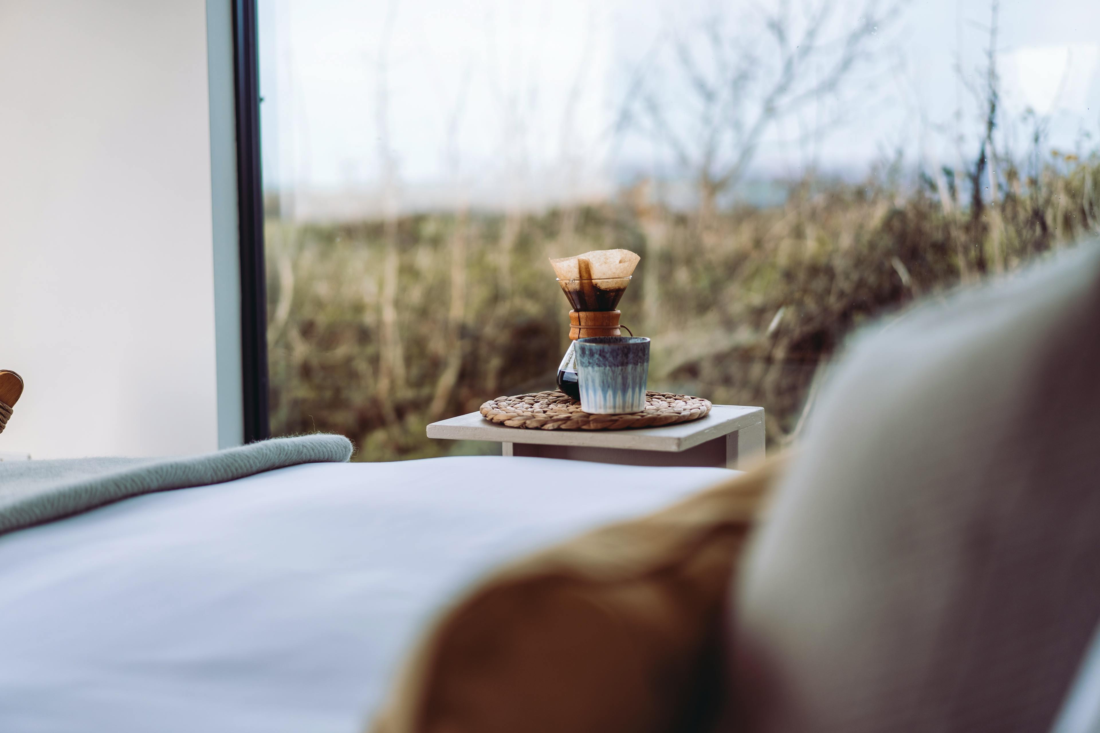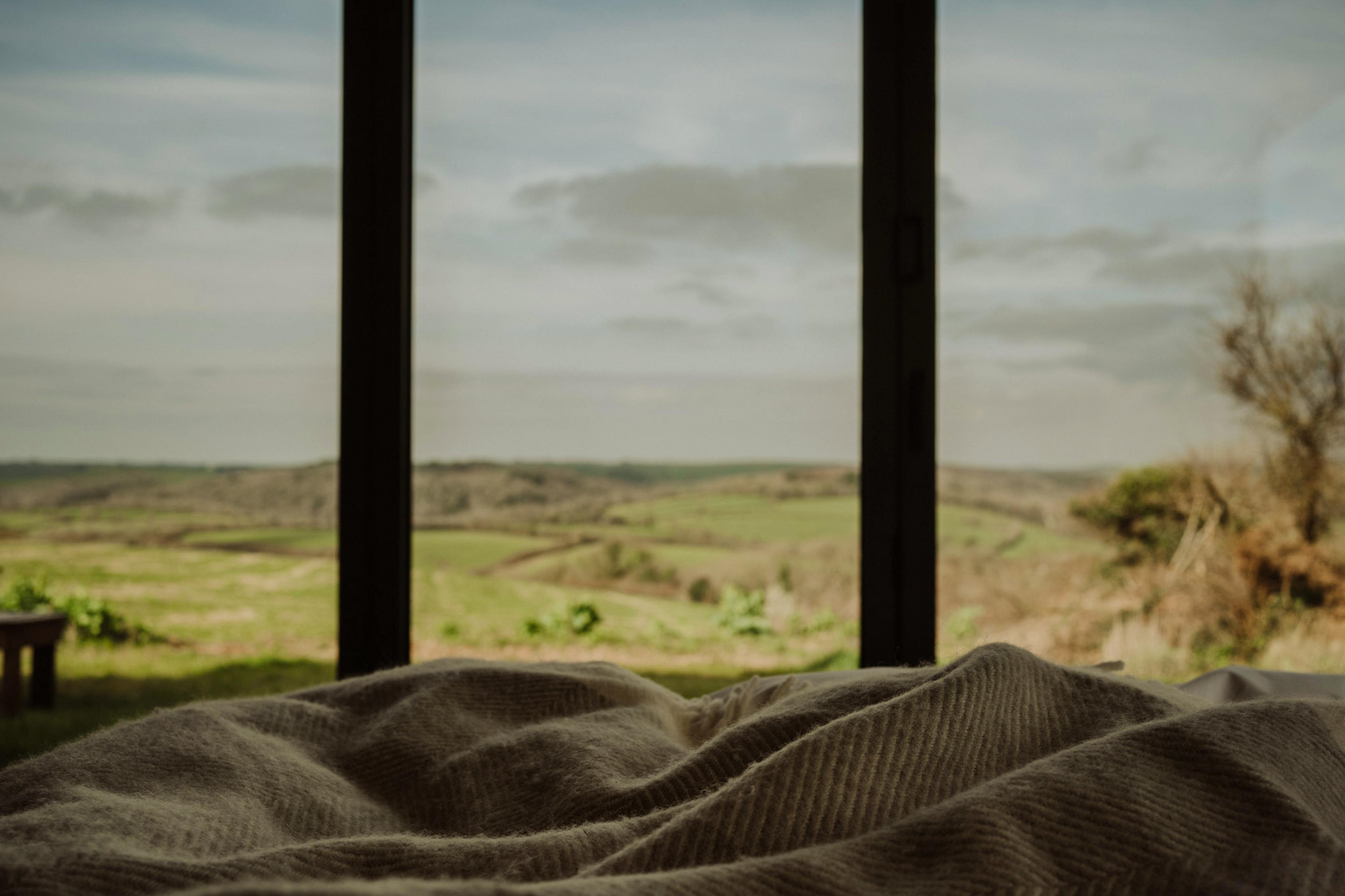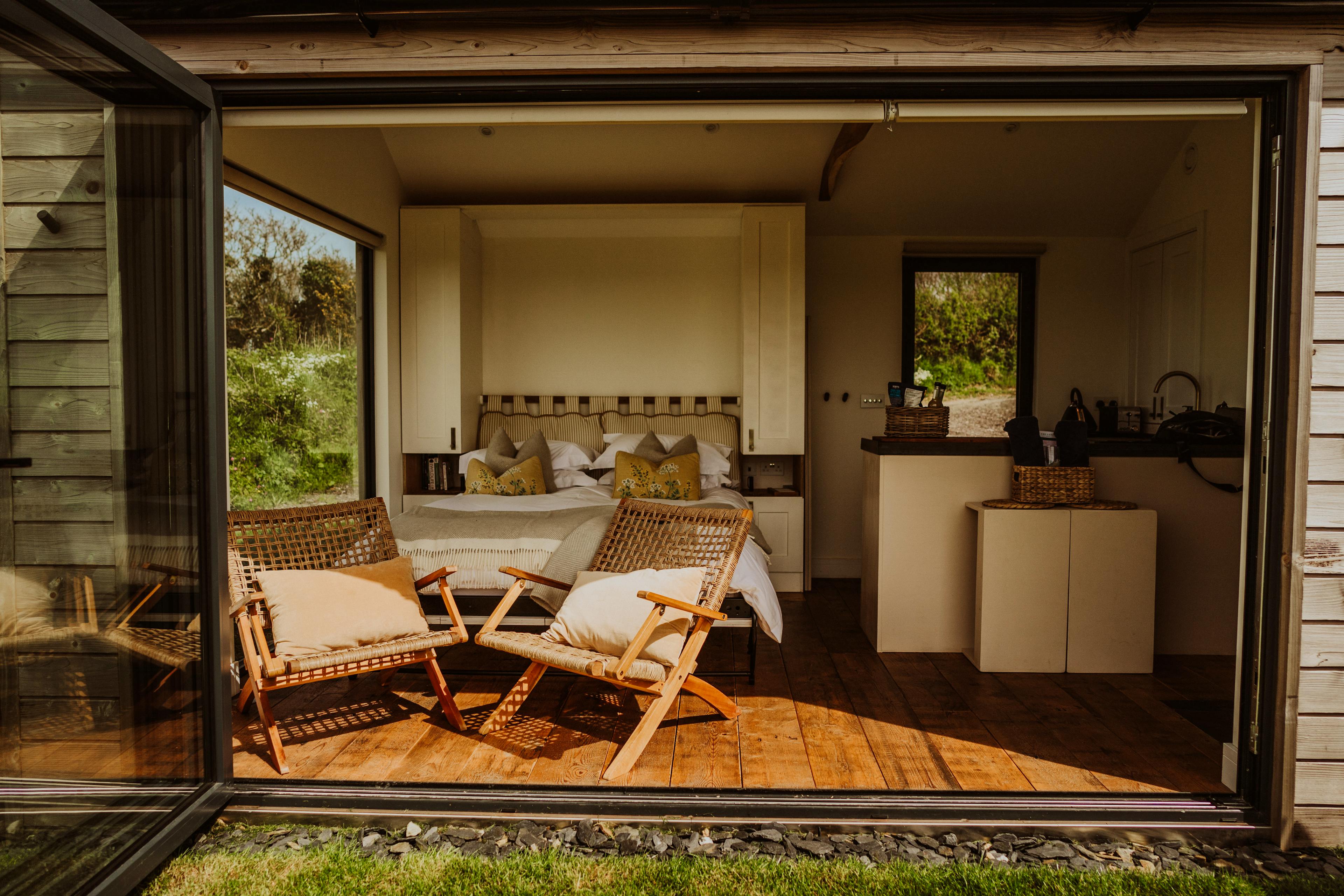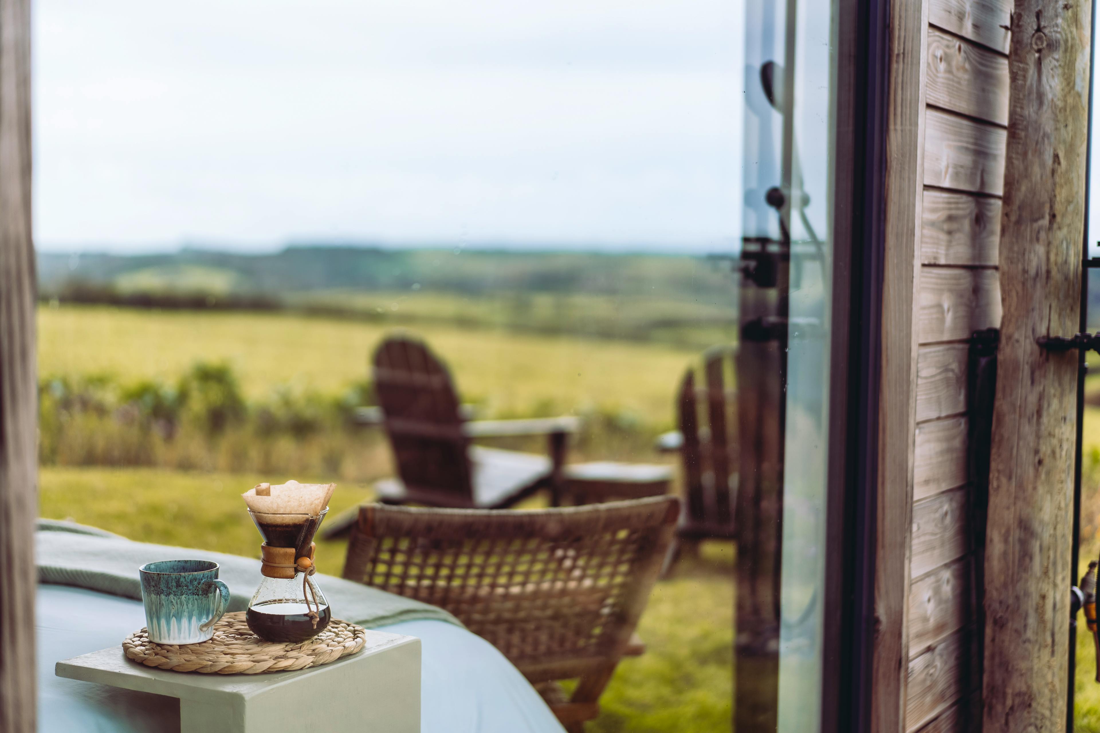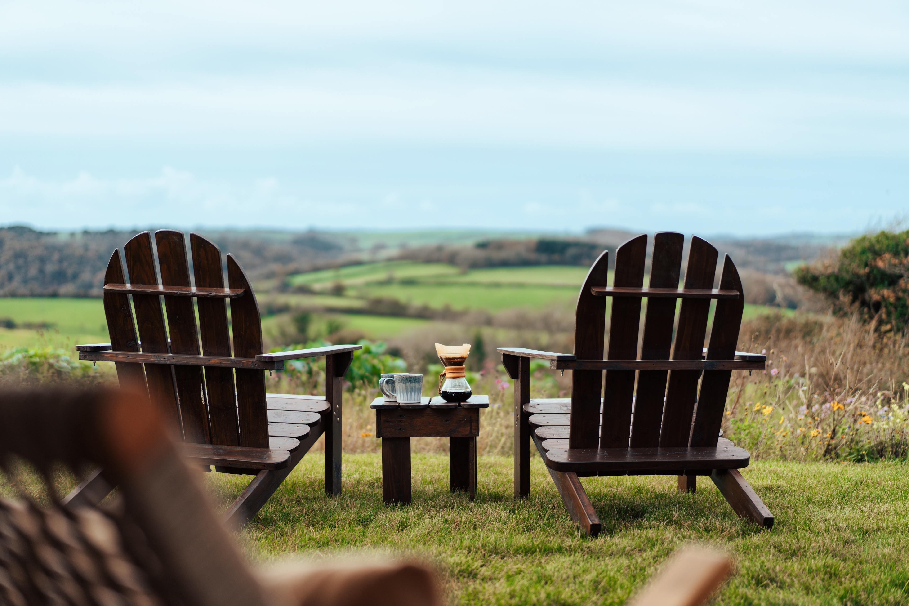 If solitude, tranquility, breathtaking scenery and high-end artisan craftsmanship are what you are after, look no further than Cottlass Cabin. Here you’ll be surrounded by rolling hills and fields where nature provides an ever-changing canvas to keep you captivated. From livestock wandering the paddocks to astonishing sunsets, your vantage point on the hill not only gives you privacy but also a unique front-row seat to the best view for miles. Your bespoke cabin is handmade by local craftspeople using local materials wherever possible with sustainability and quality to the fore. The stylish ensuite bathroom offers a large rainfall and handheld shower with a sink bowl which is a bespoke design and hand thrown by a local ceramicist less than a mile away in Modbury. The bathroom has underfloor heating for those chilly winter days and boasts Land and Water toiletries which are made here in the British Isles using natural and ethical ingredients for a luxurious spa-like experience. In the kitchen you’ll find an induction hob with two rings, a combined oven, microwave, grill and a small fridge plus all the saucepans, kitchen equipment, crockery, cutlery and glasses you’ll need to create cosy romantic dinners for two. Natural and sustainable fabrics are the focus of the sumptuous king sized bed which is topped with a sustainably made and environmentally conscious mattress topper from Naturmat. Made using Devon organic wool and biodegradable materials they will transport you into a deep and comfortable sleep. The bedding is from EarthKind and Dip and Doze, who both use 100% organic and fairtrade cotton materials with an emphasis on quality and sustainability in keeping with the ethos of the cabin. Outside your cabin is a wood-fired two-person hot tub with jacuzzi bubbles where you can totally relax with a chilled drink while taking in the view or watching out for deer, foxes, birds of prey and hedgehogs. A ceramic BBQ gives you the option to do a bit of alfresco cooking and outdoor hot and cold showers come in useful for washing off sandy feet or dirty paws. Modbury High Street is only a mile away and has lots of amenities including three pubs, cafes, a farm shop and lots of unique independent shops. Nearby you’ll discover sandy beaches and secluded coves where you can try waterskiing, sailing, surfing, paddle boarding, snorkelling, diving and sea swimming. Or why not hike across Dartmoor, take a horse ride or go and explore some waterfalls?