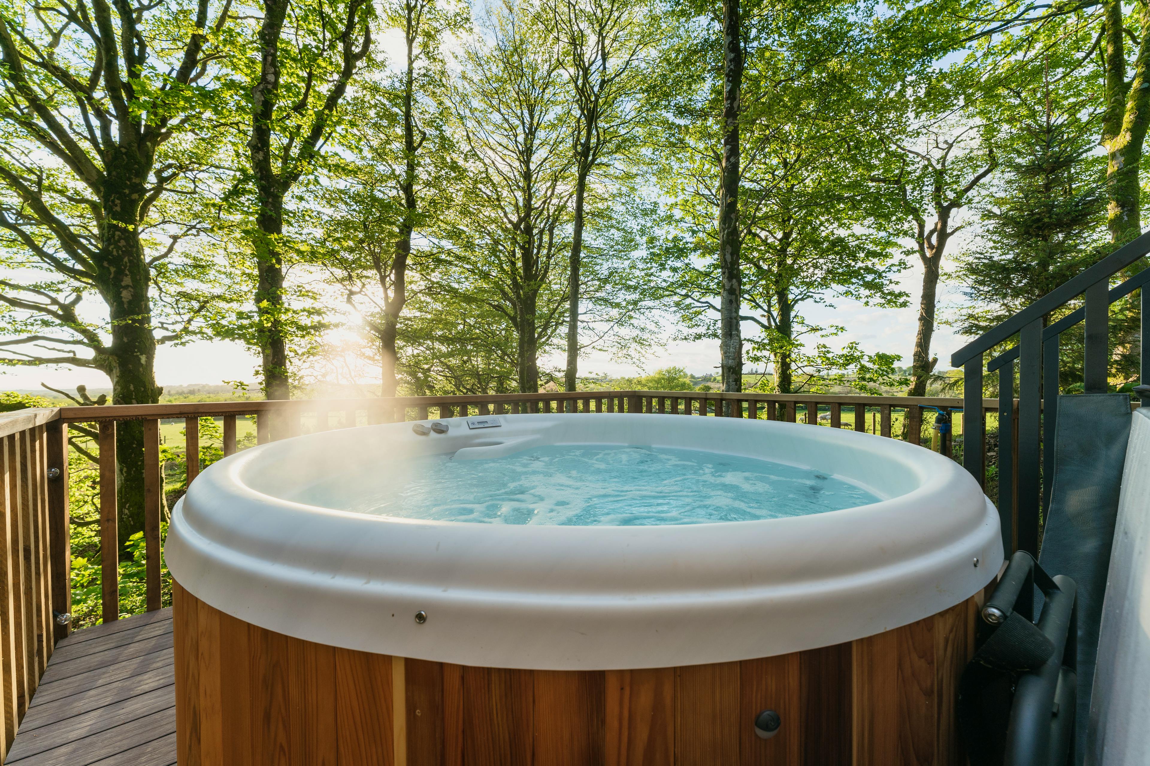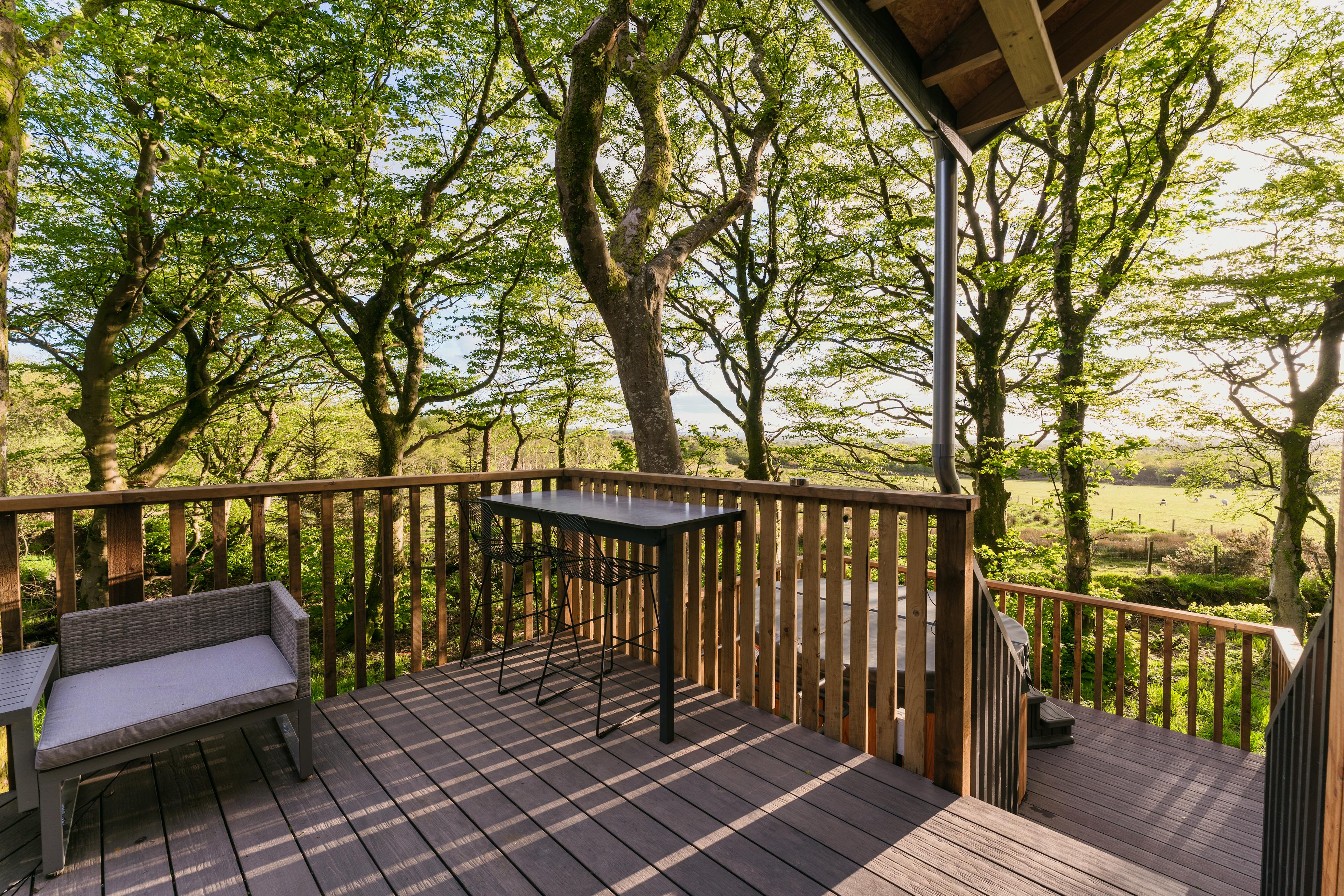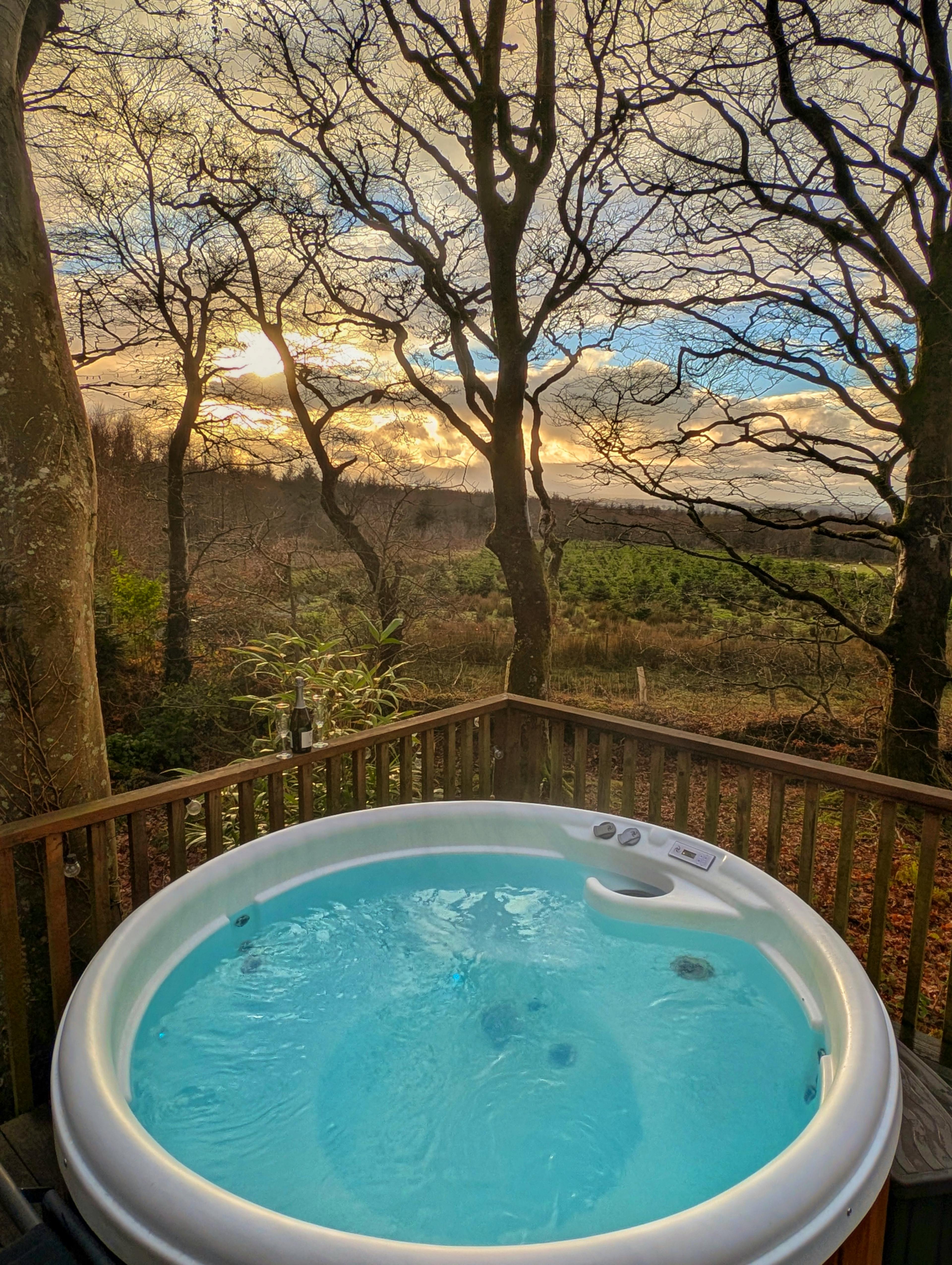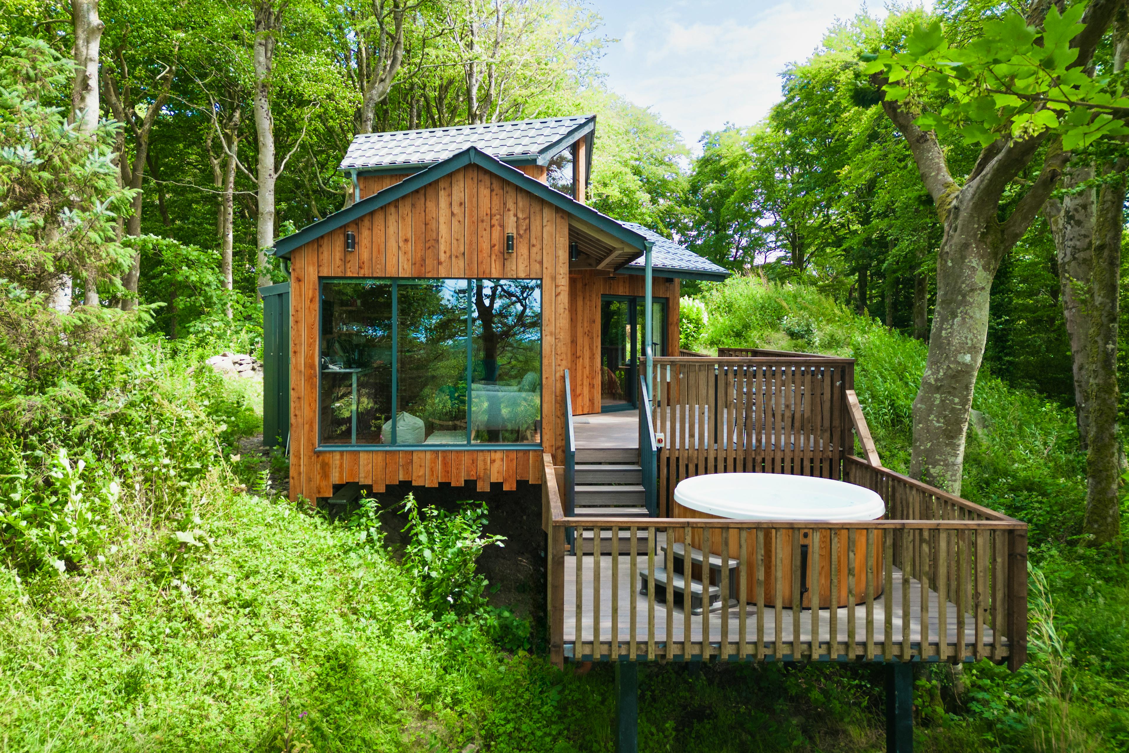Luxurious treehouse with stunning views and a hot tub near the Ceredigion coast in Wales, a secluded and romantic hideaway for couples.