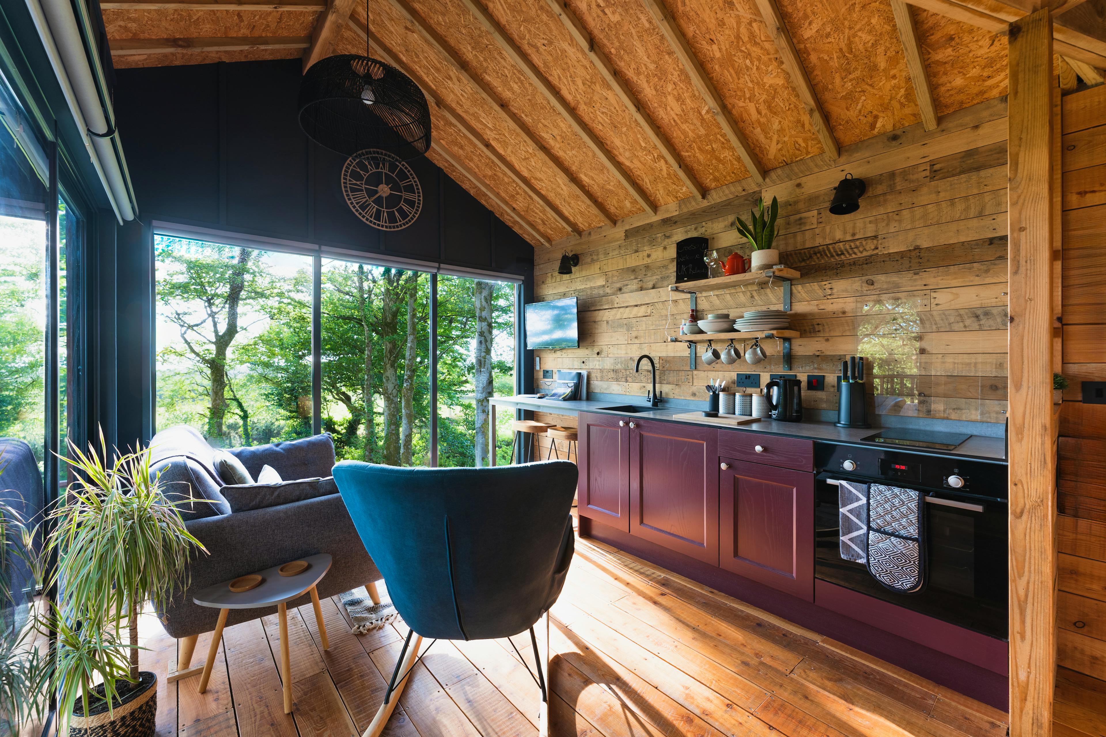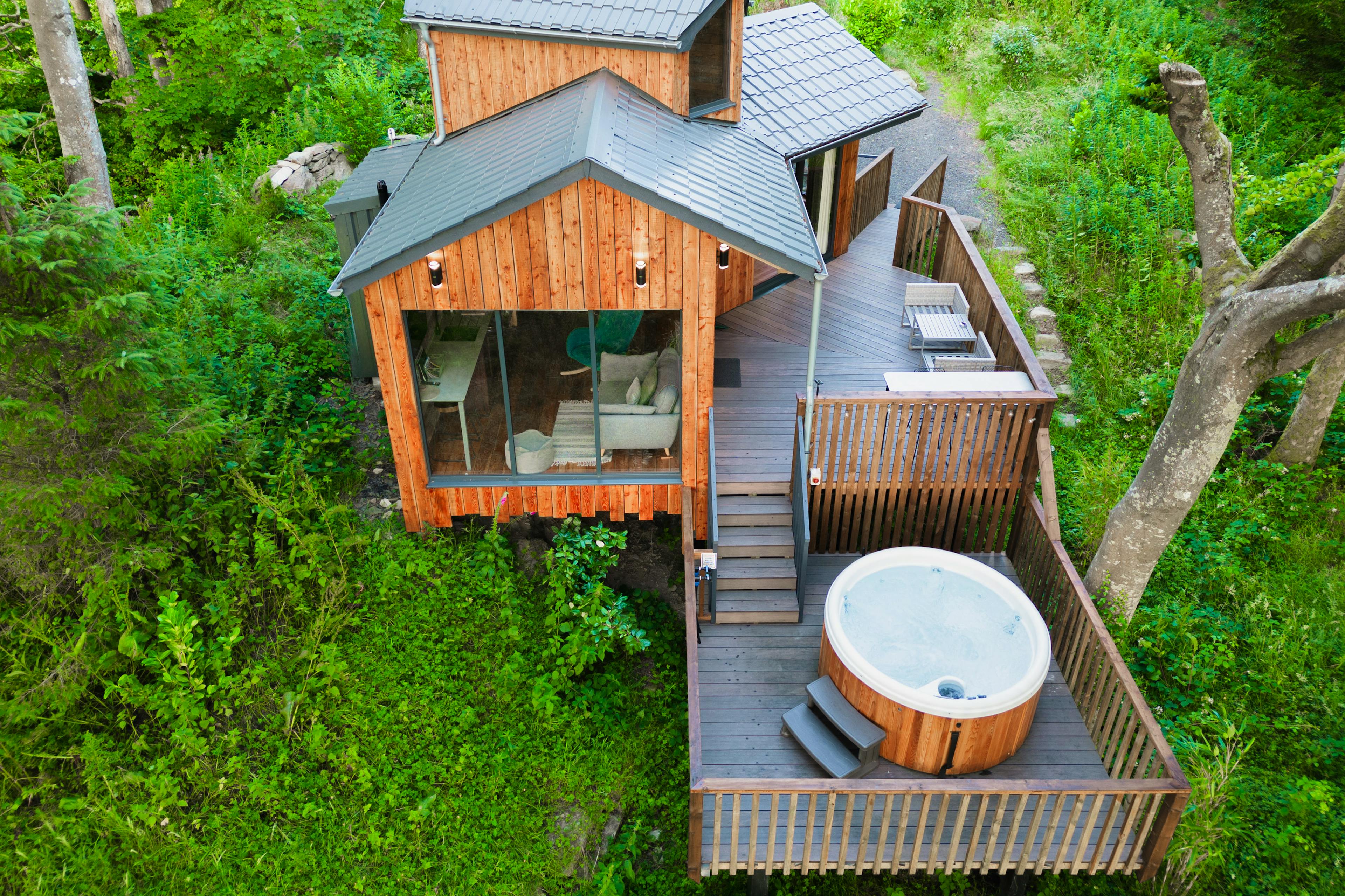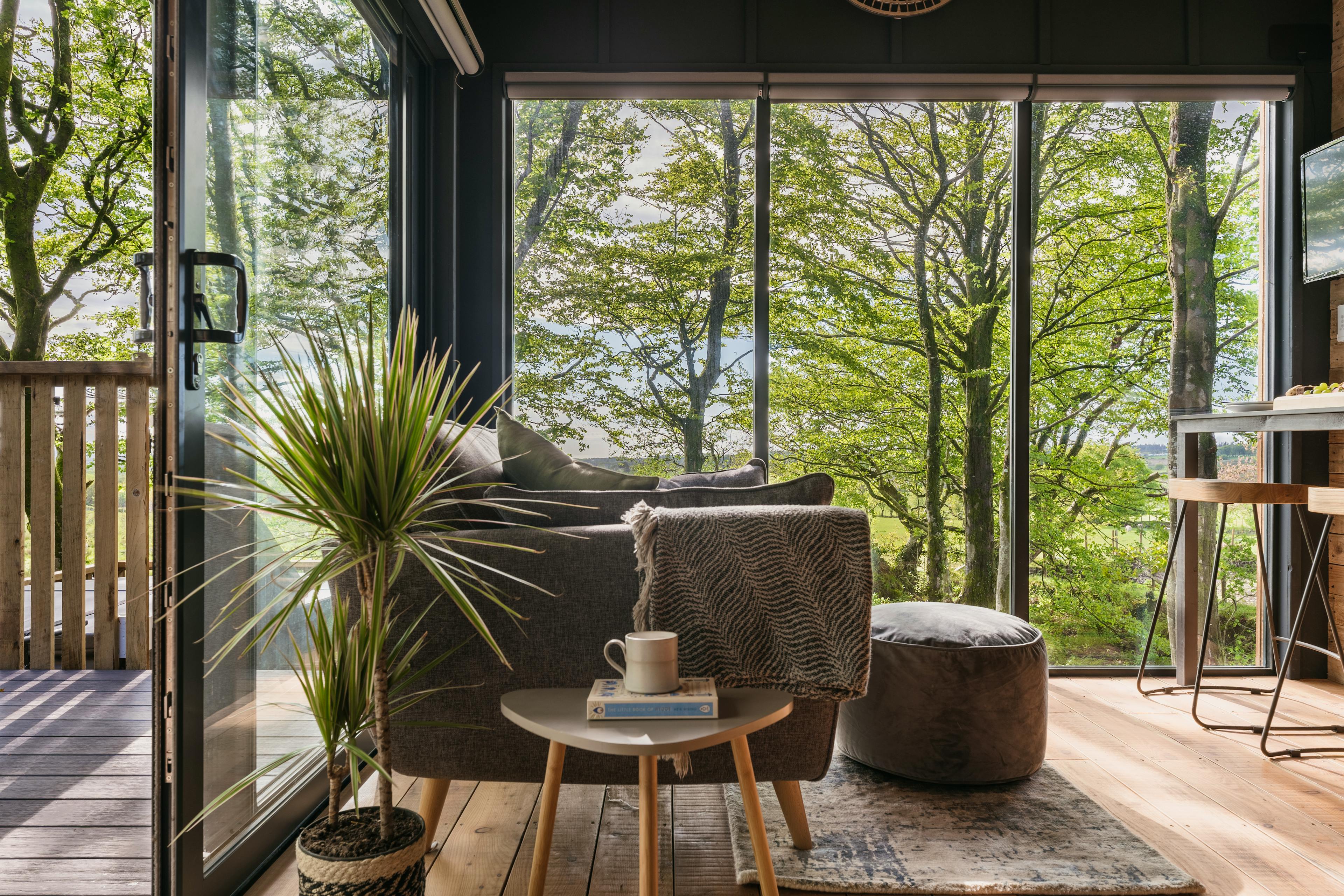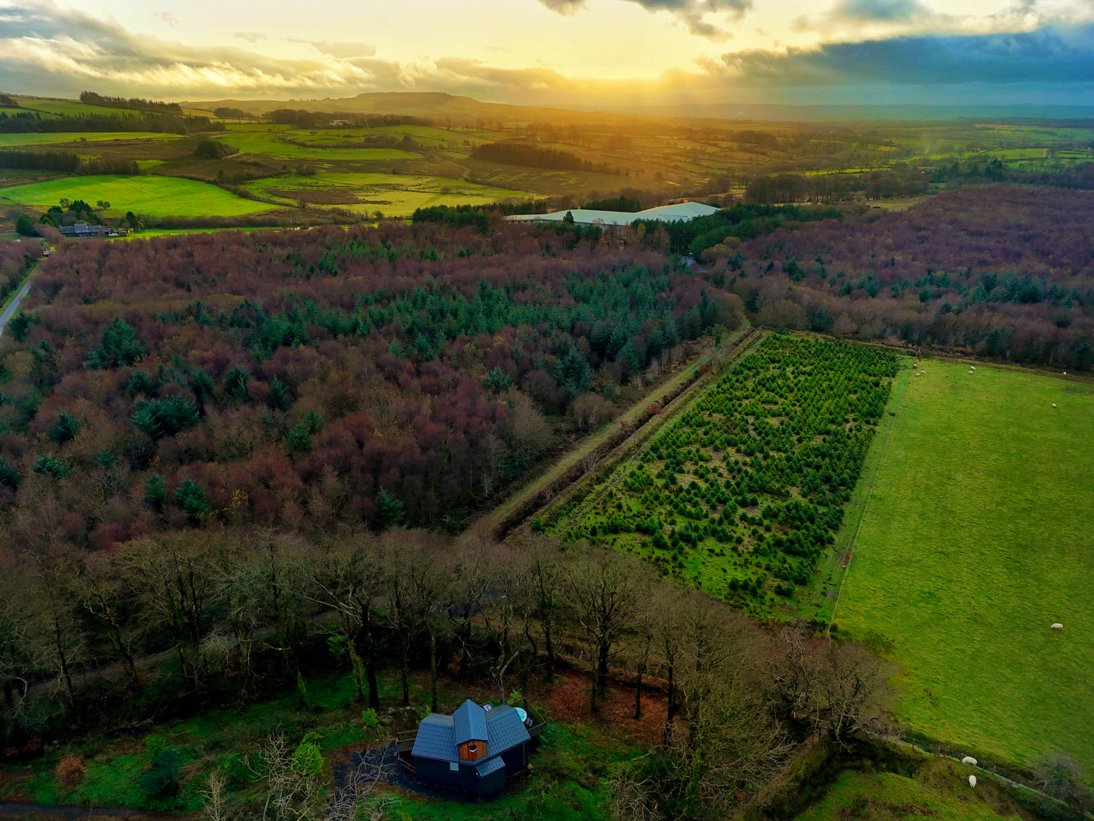 Luxurious treehouse with stunning views and a hot tub near the Ceredigion coast in Wales, a secluded and romantic hideaway for couples.