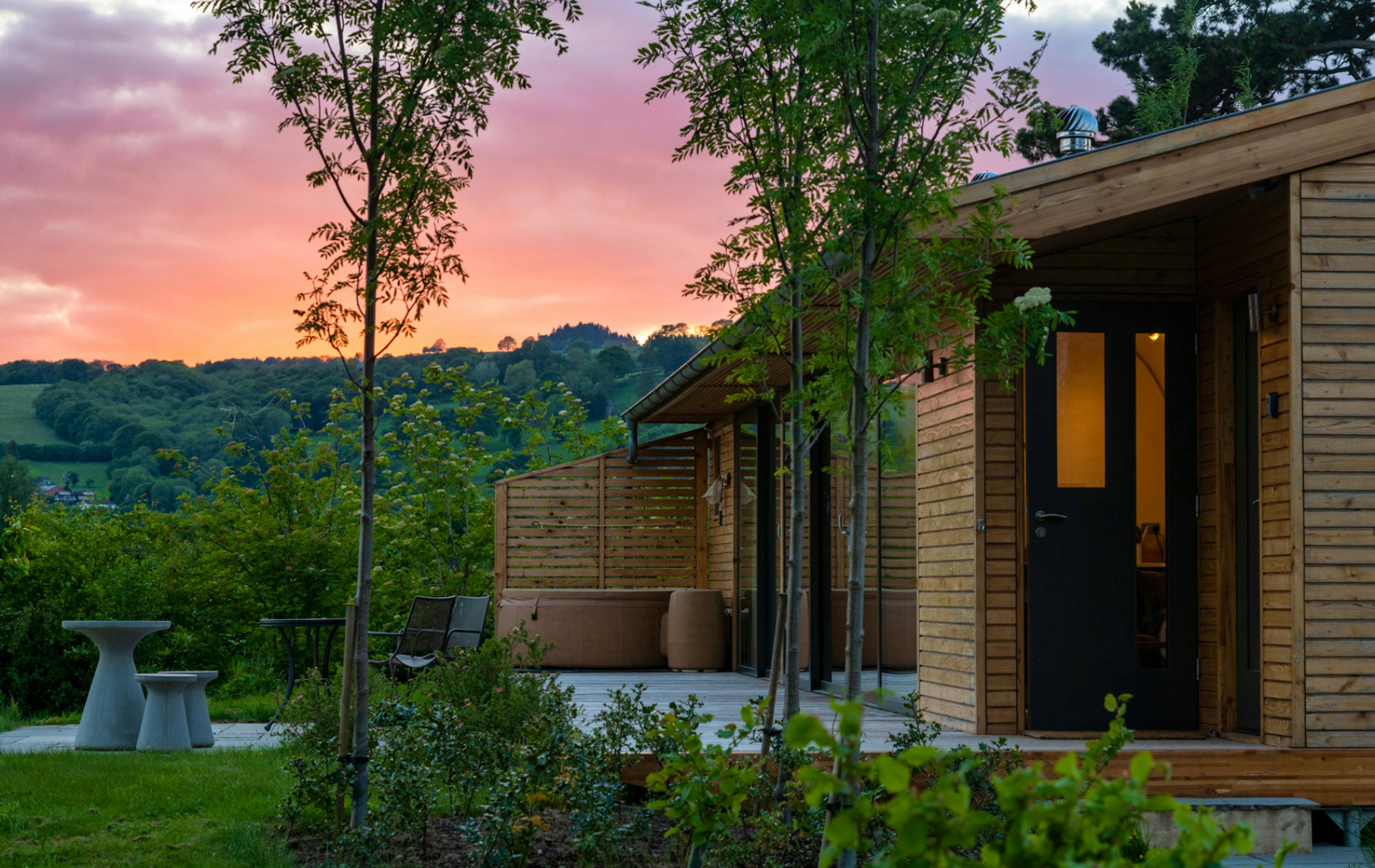 Luxury romantic pods in Herefordshire ideal for couples with sweeping views and private hot right near the England/Wales border.