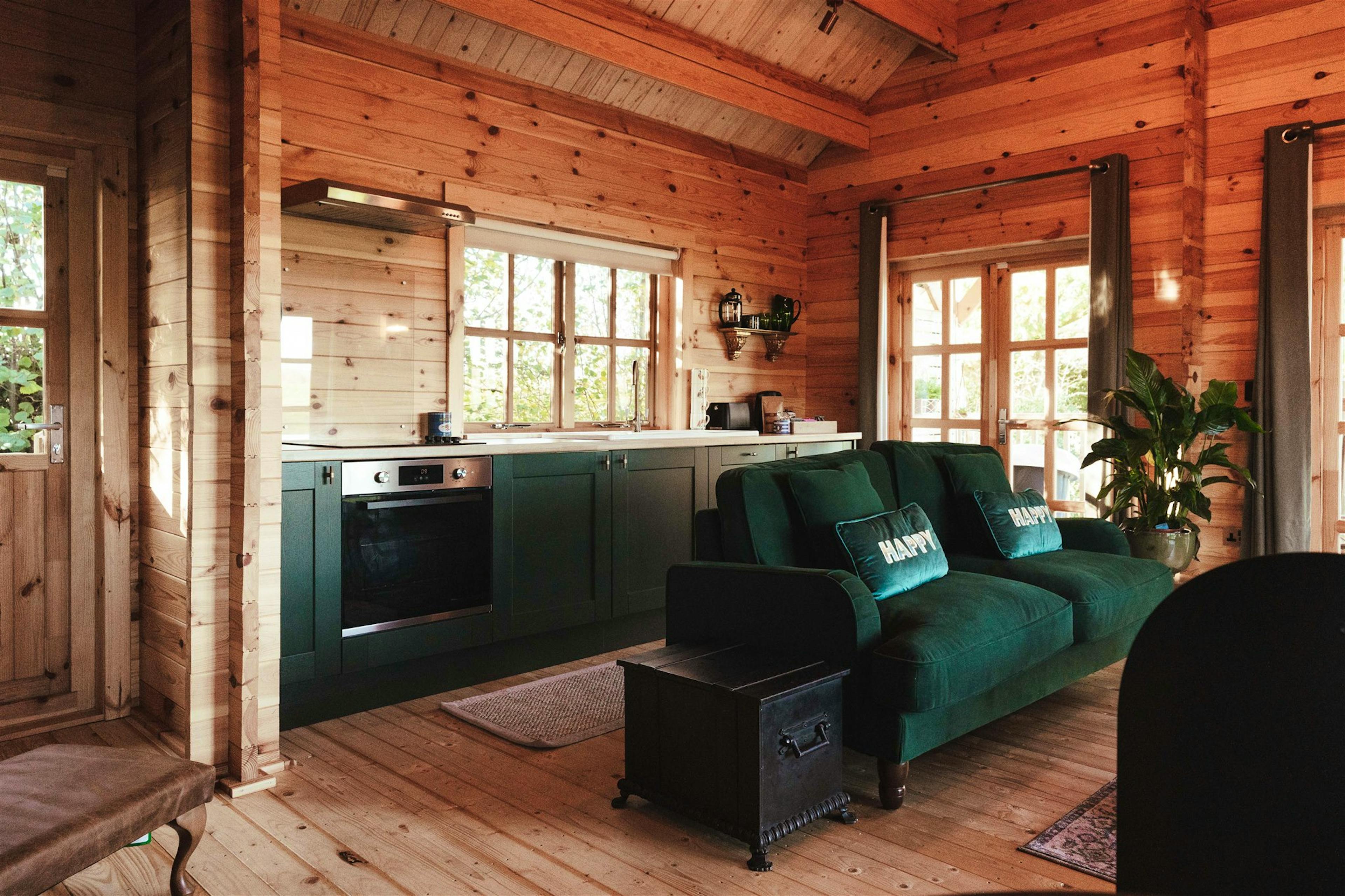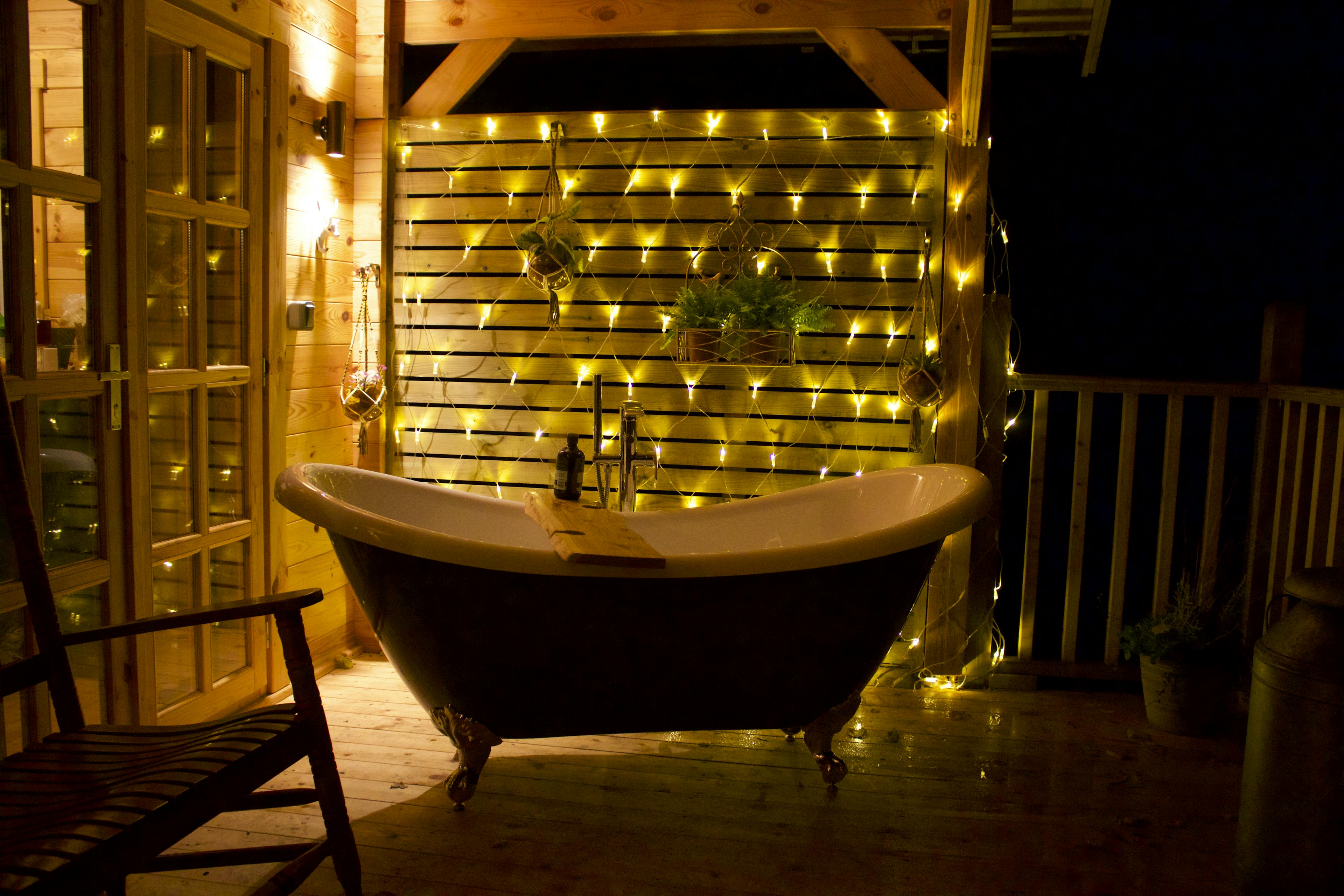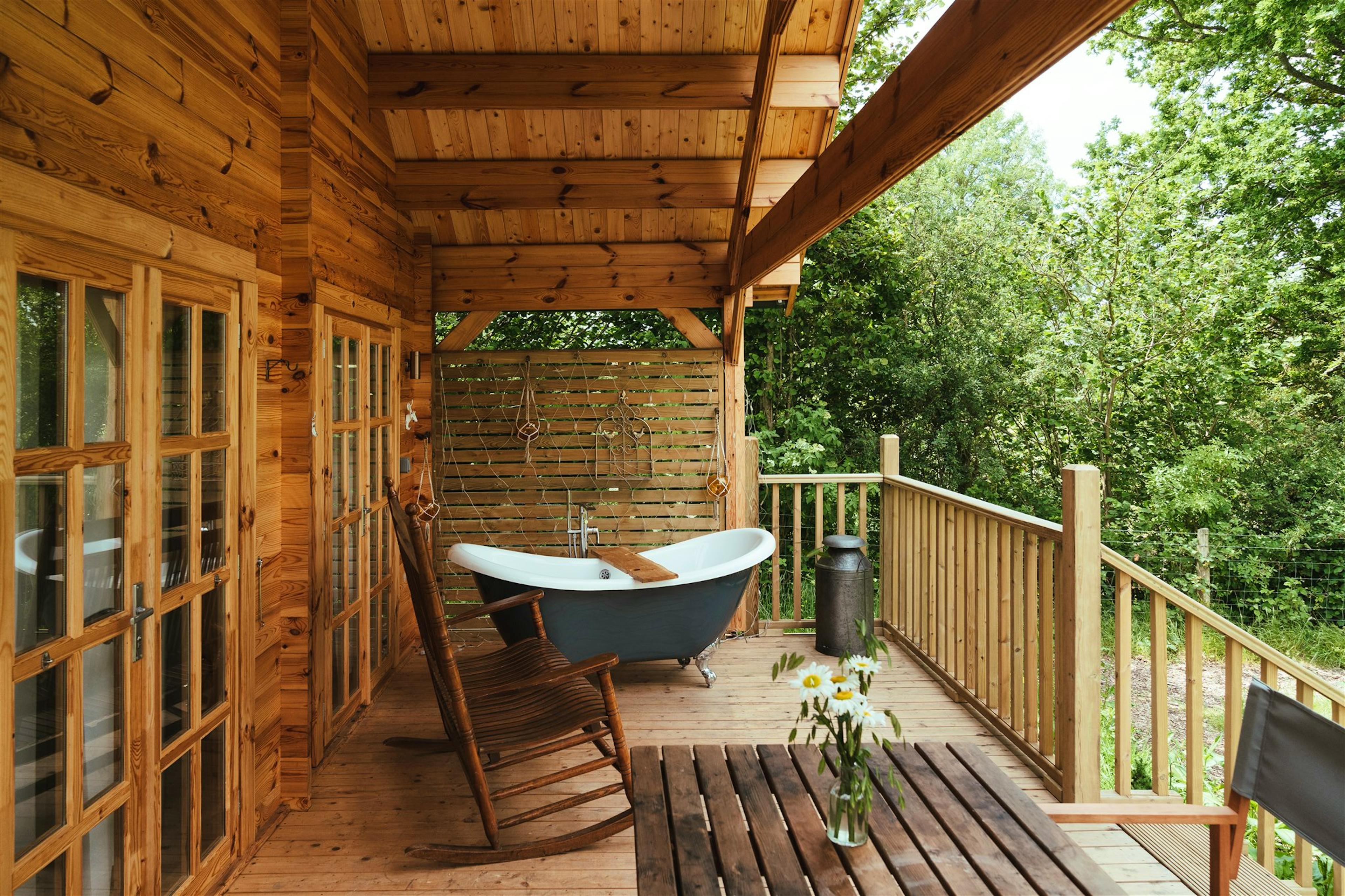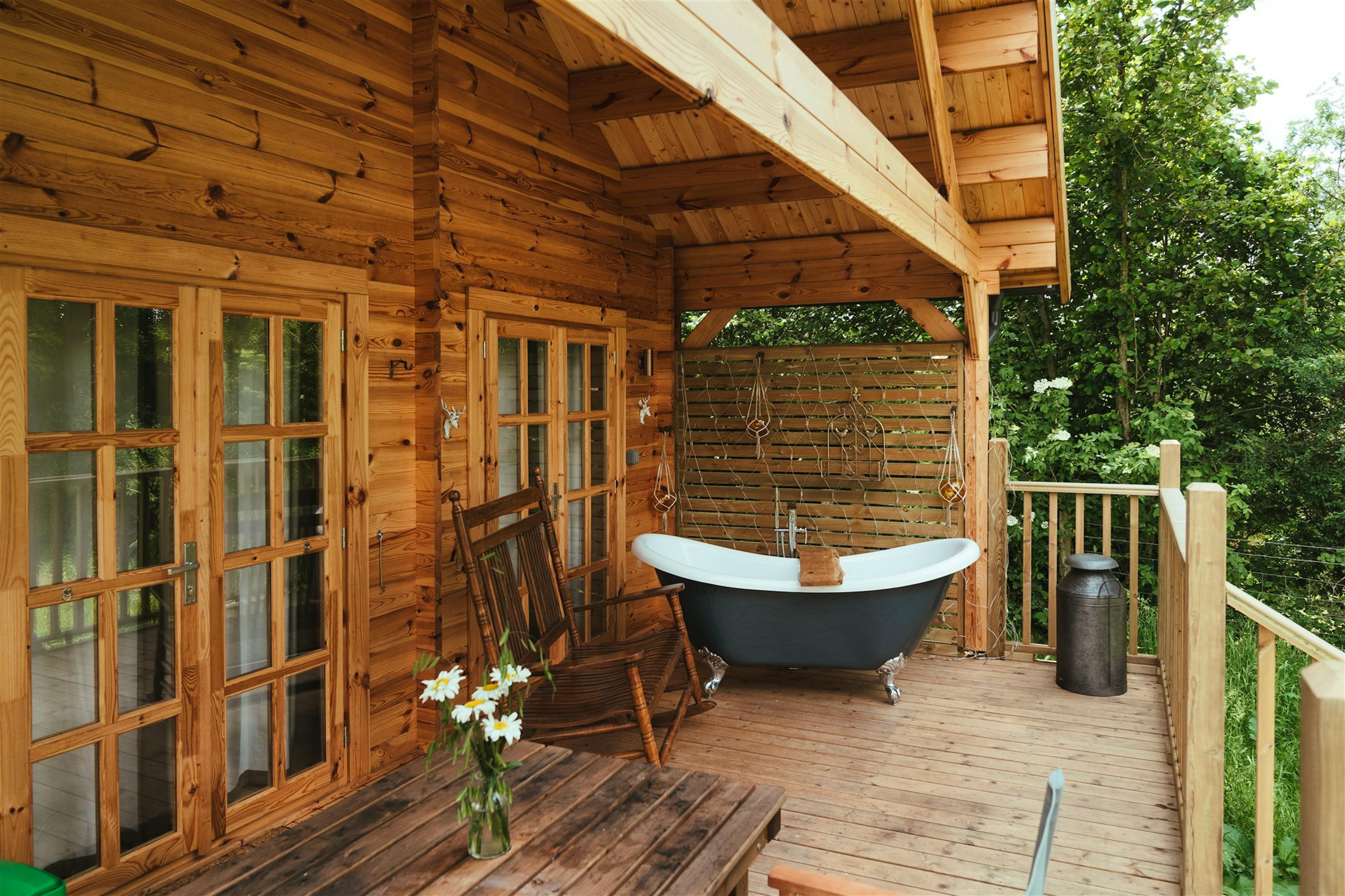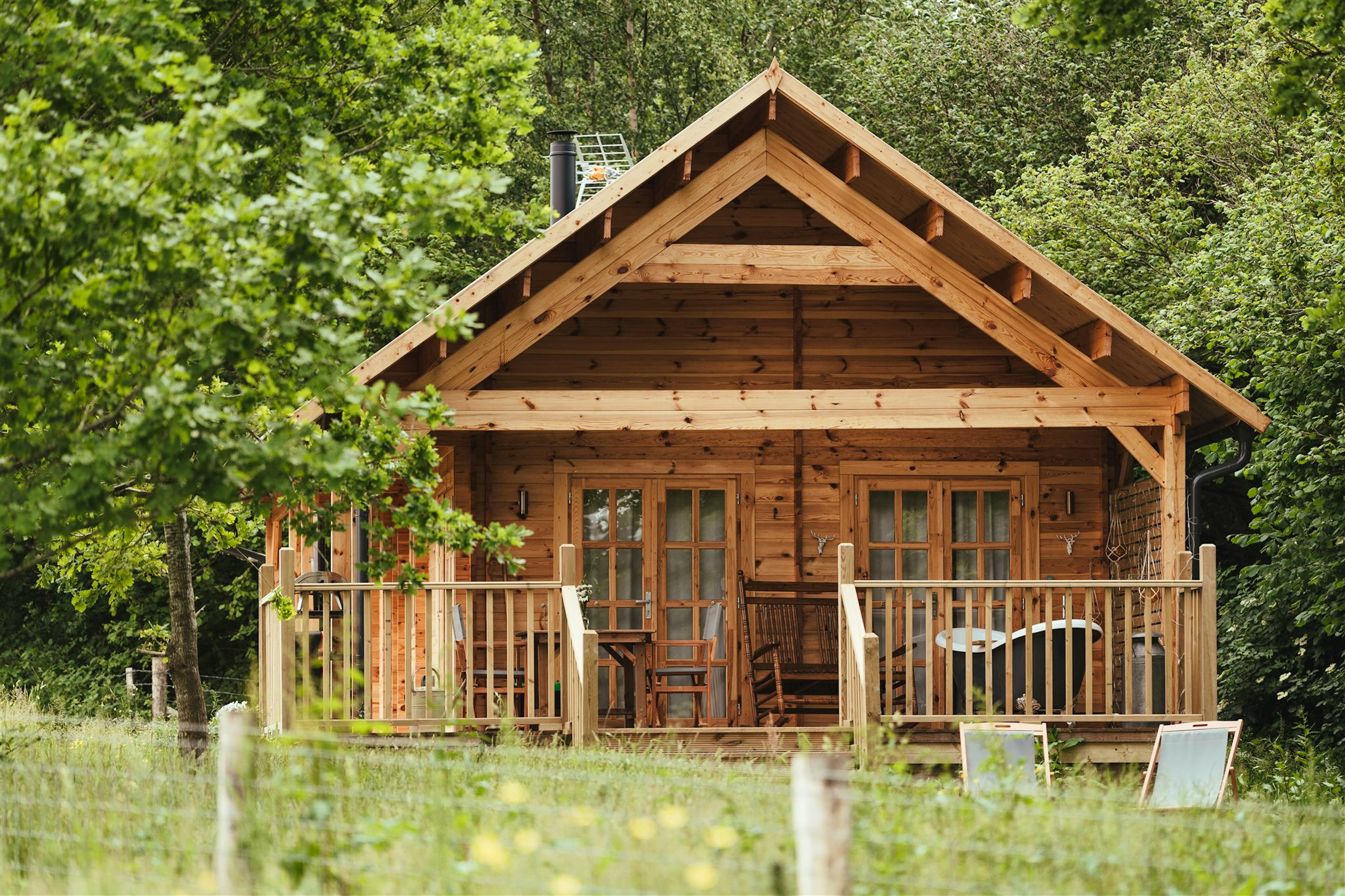Cosy cabin, perfect for couples, tucked away in the countryside of East Sussex with an outdoor bath and open water swimming nearby.