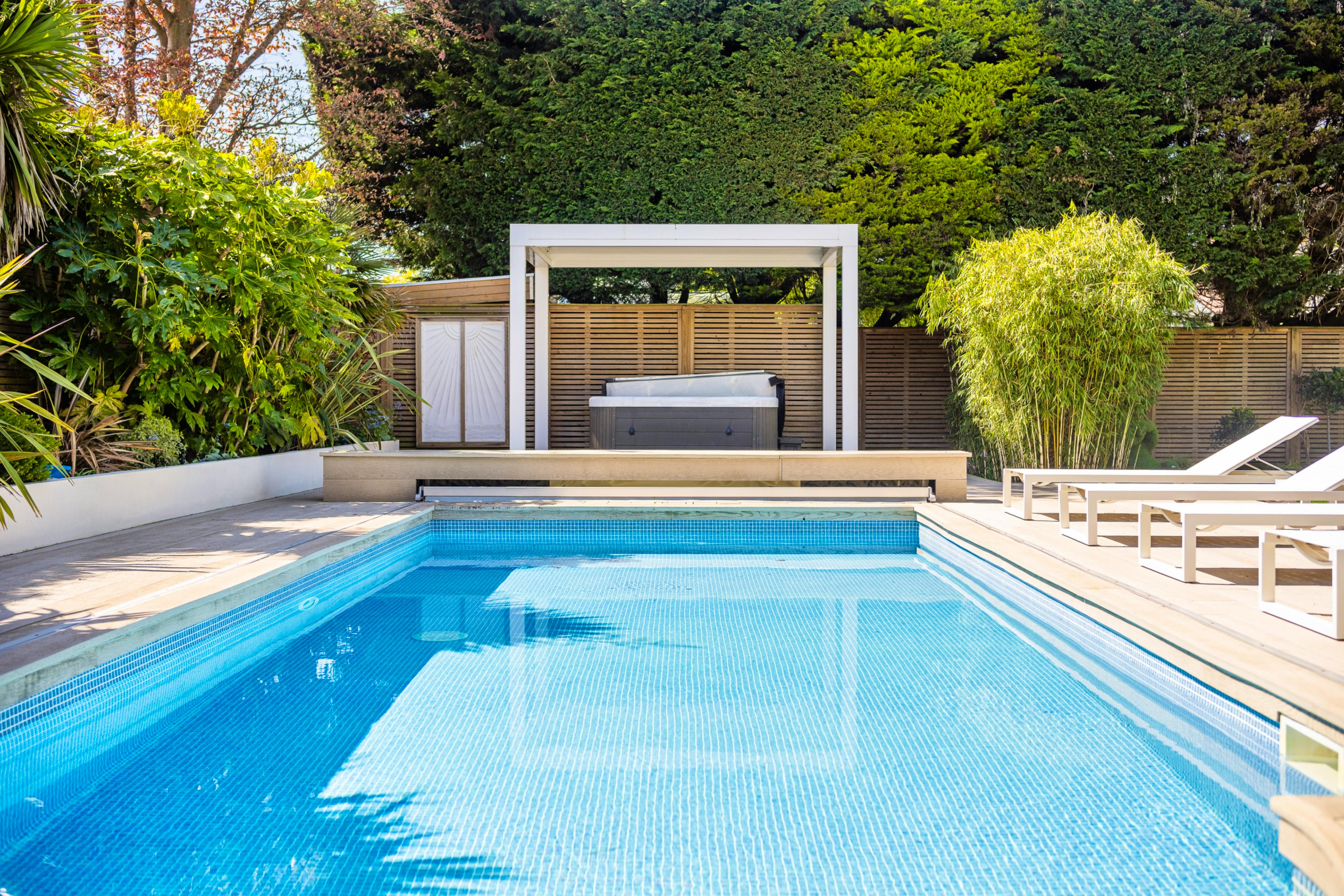 This superb, striking beach house in Dorset offers super-stylish interiors, a stunning outdoor pool and a private hot tub.