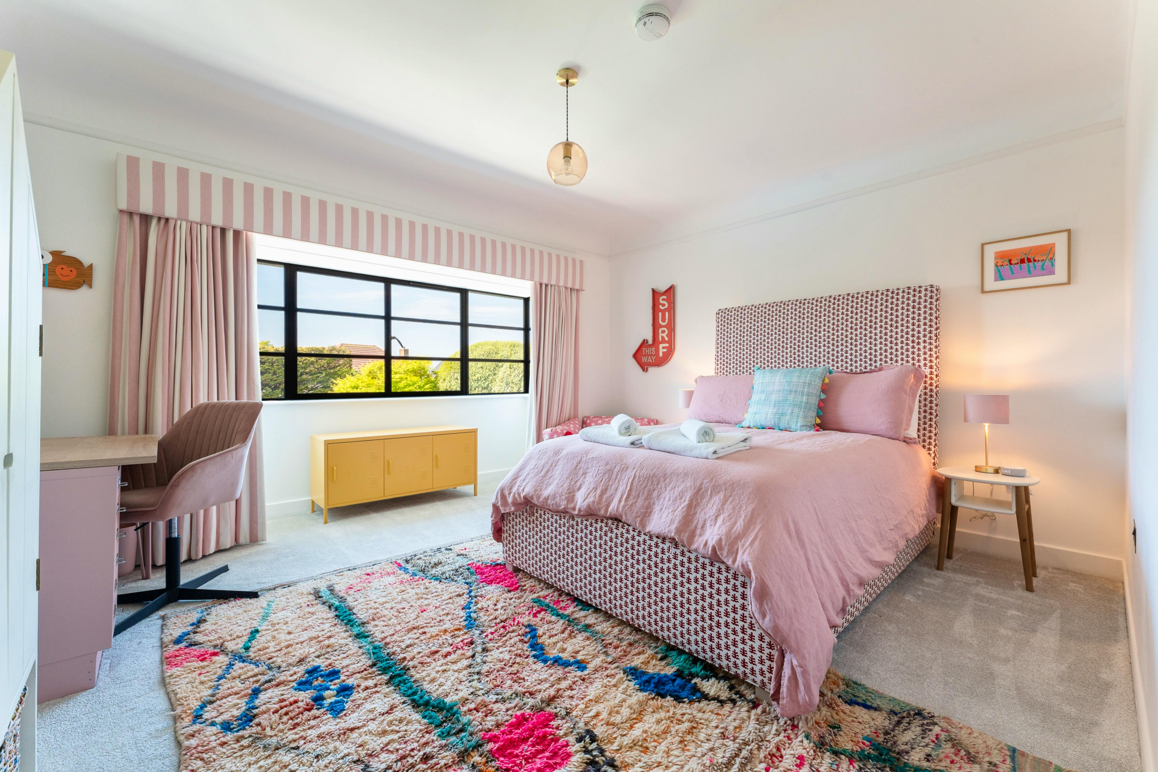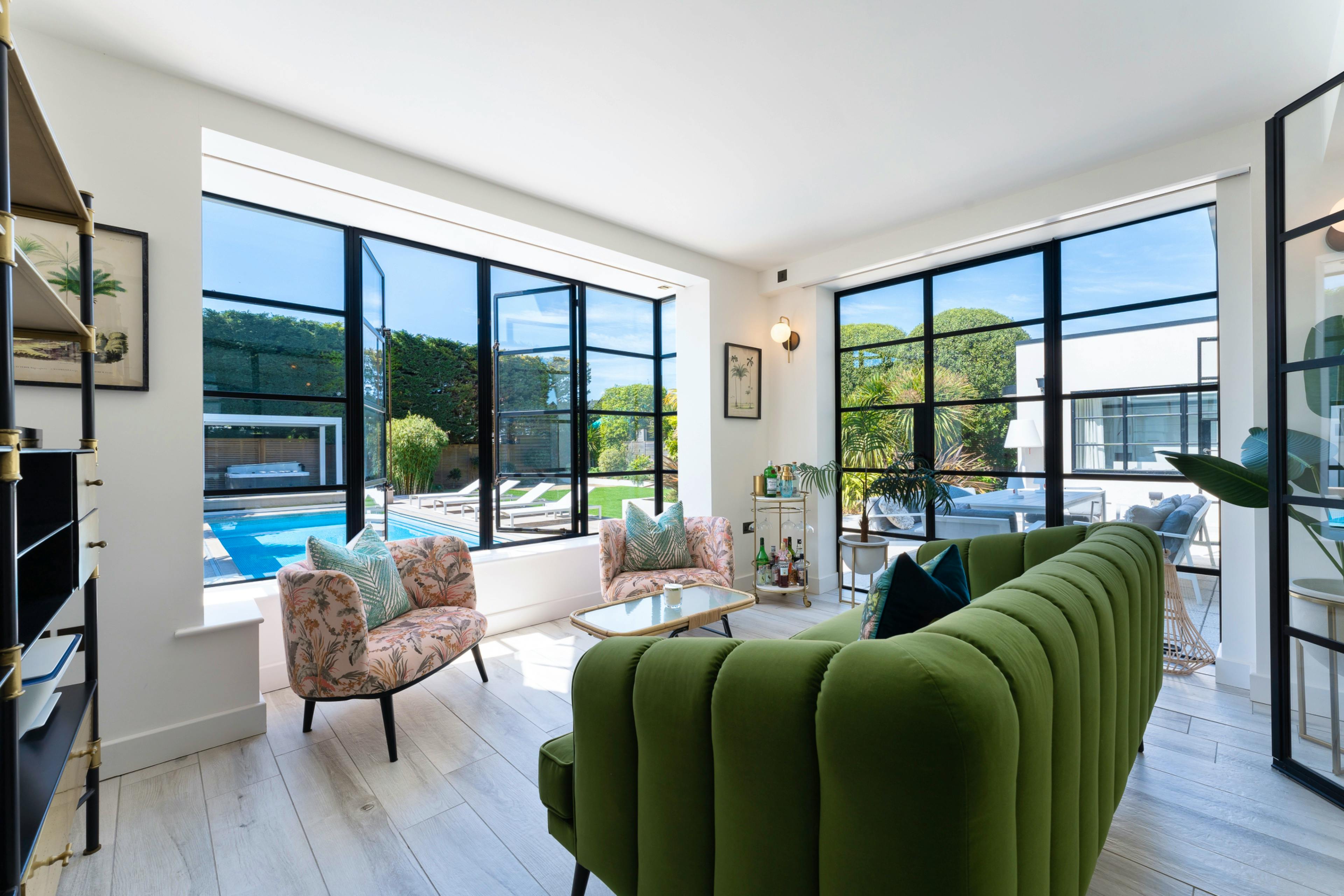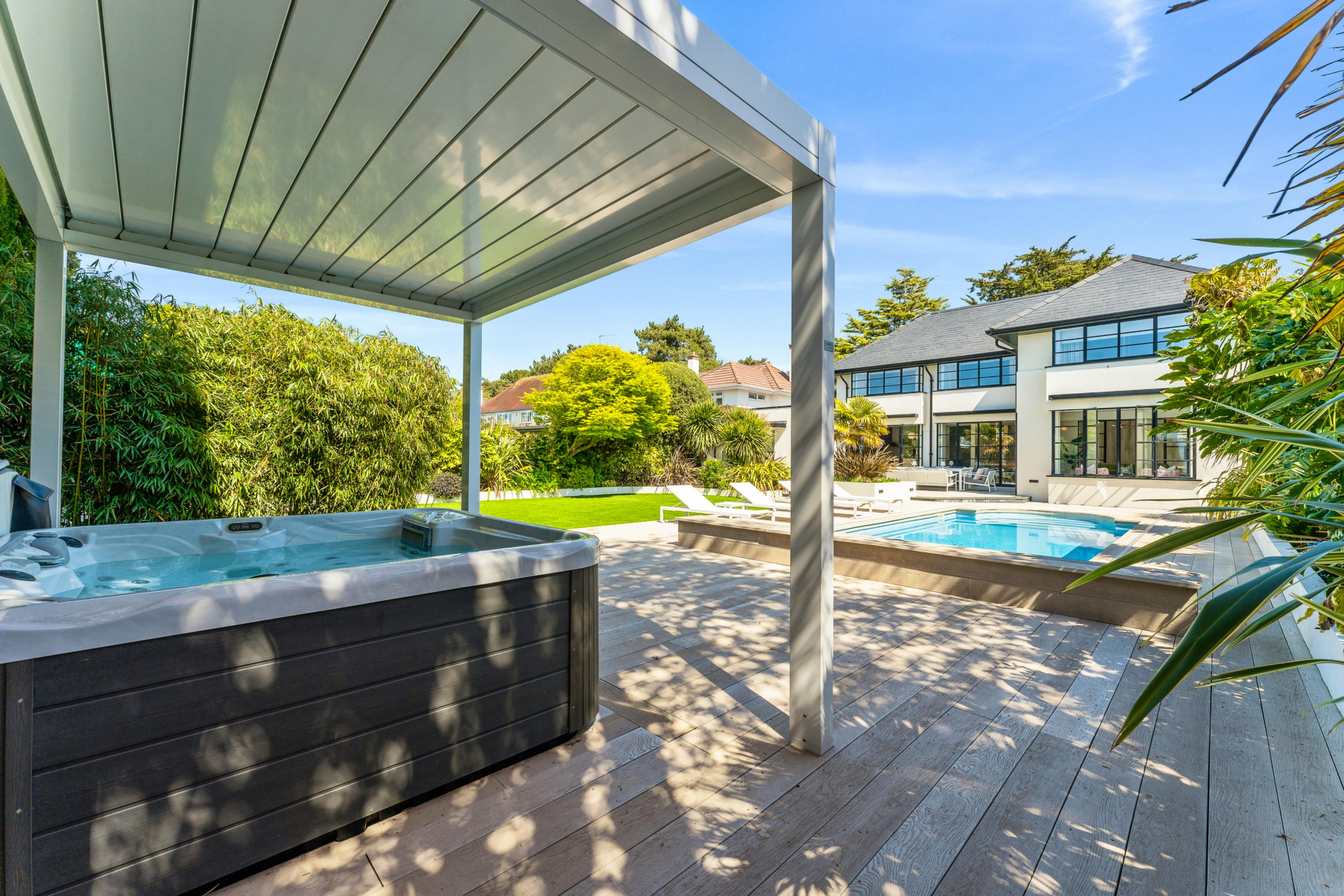 This spectacular beach house offers a deluxe stay just moments from the sandy beaches of Friars Cliff in Christchurch, Dorset. With a marvellous outdoor swimming pool and grand, spacious interiors, this is a superb retreat for groups of up to 10 guests making it perfect for friends and family. Inside, the clean white walls and bold colours combine to create a stylish and unique living space, whilst gold touches add a sprinkle of glam to your stay. The downstairs features an abundance of social spaces, meaning you can spread out and catch up with loved ones in style. There’s a cosy lounge area, with a super-stylish green sofa and giant glass doors that open up onto the swimming pool. Sit here with a drink in hand as your loved ones enjoy a dip in the water. Off this space there’s also a giant open-plan living area, with yet more comfy sofas at one end and a modern kitchen at the other. The kitchen is wonderfully equipped with everything you need for preparing delicious meals for your group. And, there’s also a spacious island where you can get comfy on a barstool and keep your loved one company as they whip up a feast. Then, when dinner’s served dine together on the spacious table that seats your entire group, or take your meals out into the garden and dine on the patio in the fresh sea air. The lawned garden is the true star of the show, with its wonderful swimming pool, where you can enjoy an afternoon swim or spend hours on a sun lounger by the water’s edge catching some rays. There’s also a covered hot tub, where you and your nearest and dearest can enjoy a glass of bubbles as the sun begins to set. Back inside, Deco Beach has five fab bedrooms, all of which have been lovingly designed to offer a peaceful night’s sleep. One of the bedrooms even sits on the ground floor, making it ideal for anyone with mobility issues. Three of the bedrooms also have ensuite bathrooms for added privacy, some of which have deluxe free-standing bathtubs for indulgent bubbly soaks. The house is ideally located between Christchurch and Highcliffe, offering easy access to both the countryside and the coast. Christchurch, a charming market and fishing town on Dorset’s eastern edge, is nestled between the New Forest and the vibrant seaside resort of Bournemouth. With a history dating back to the Domesday Book, it’s a great spot for a family day out, full of historic sites and local character. Just to the east, Highcliffe is a quaint village known for its dramatic shingle beaches, boutique shops and popular cliff-top cafés. It’s also home to Highcliffe Castle - a Grade I listed masterpiece of Romantic and Picturesque architecture. Once the residence of Mr. Selfridge, the castle now serves as a stunning event venue and family-friendly attraction, hosting weddings and seasonal events throughout the year.