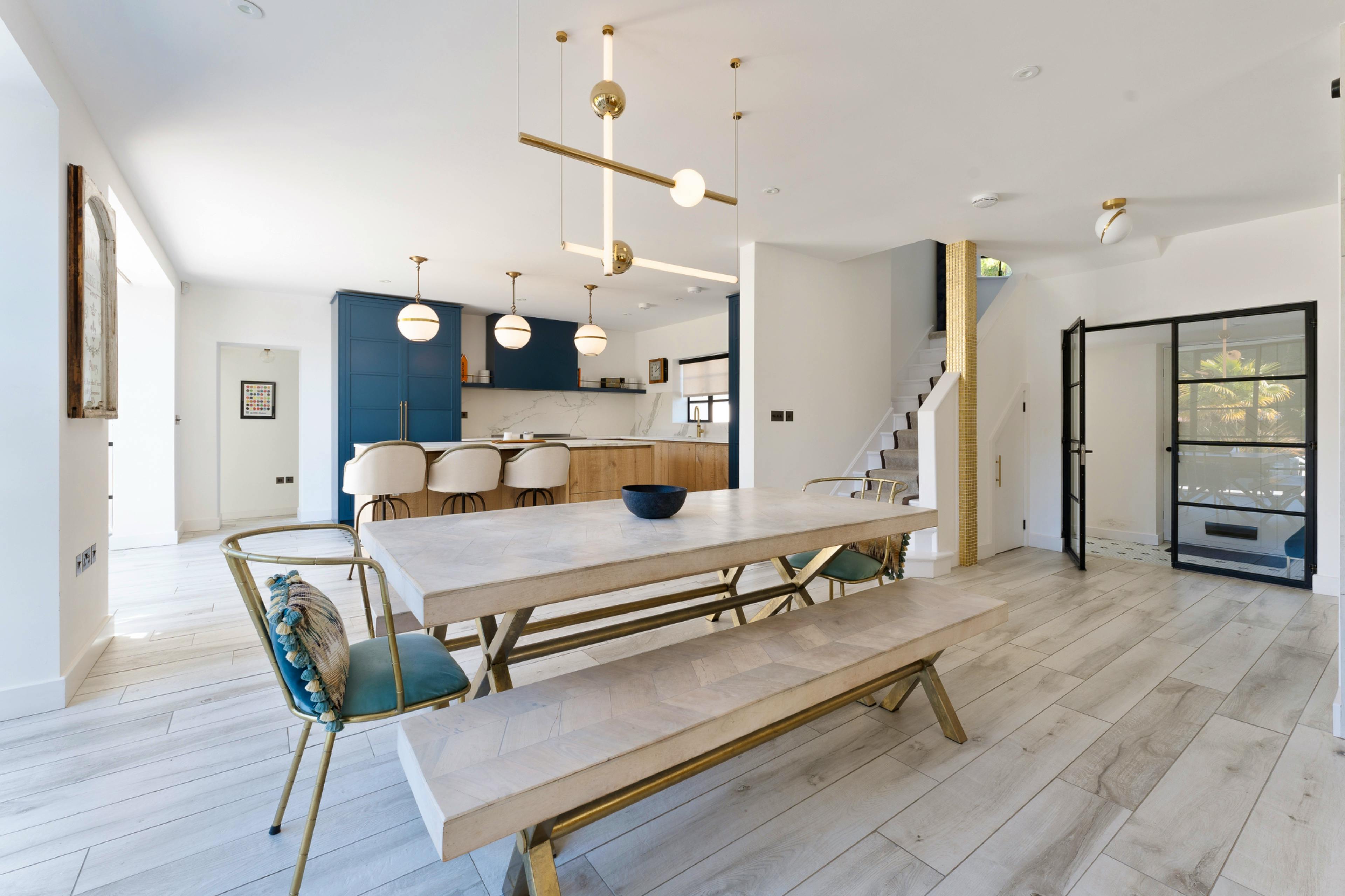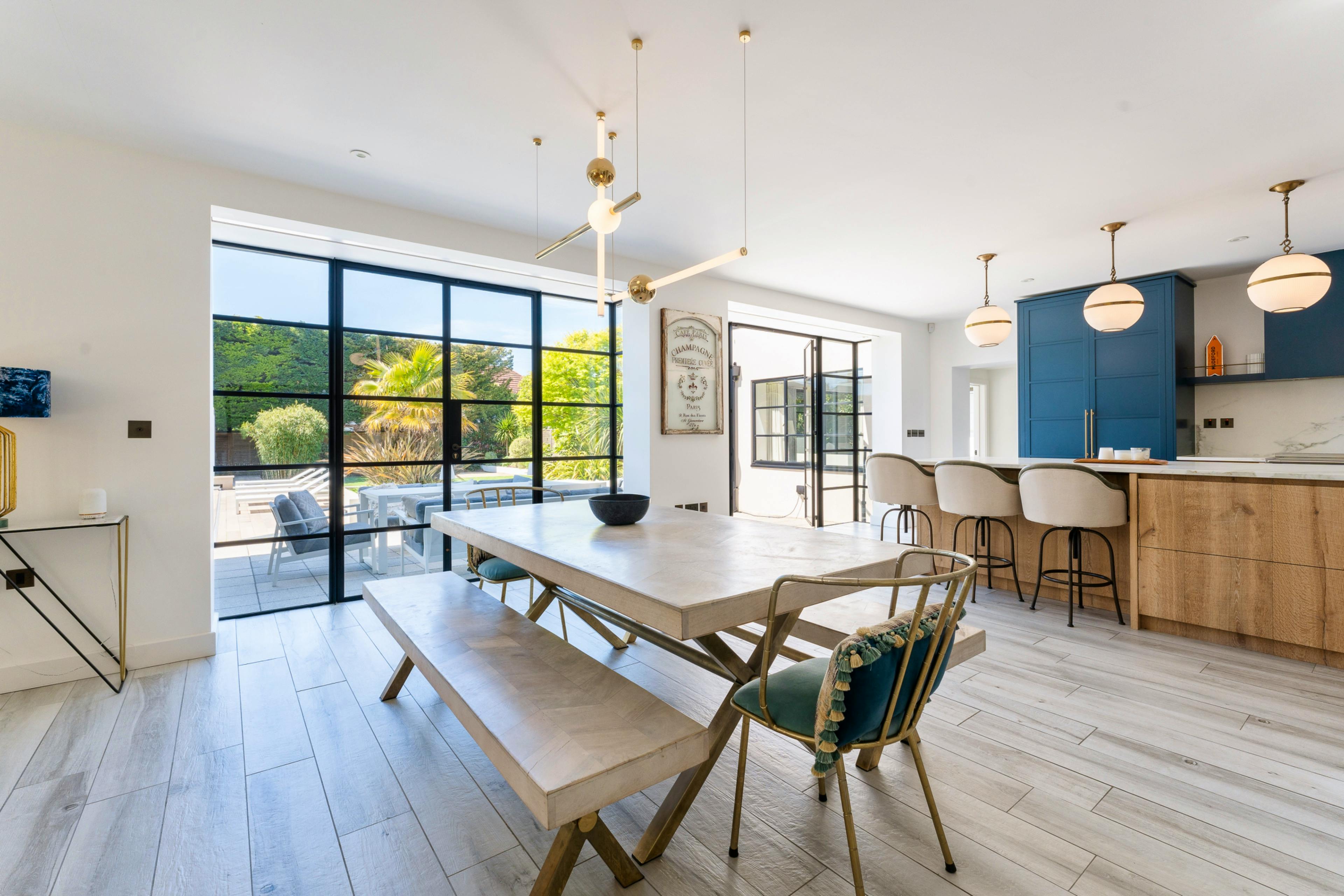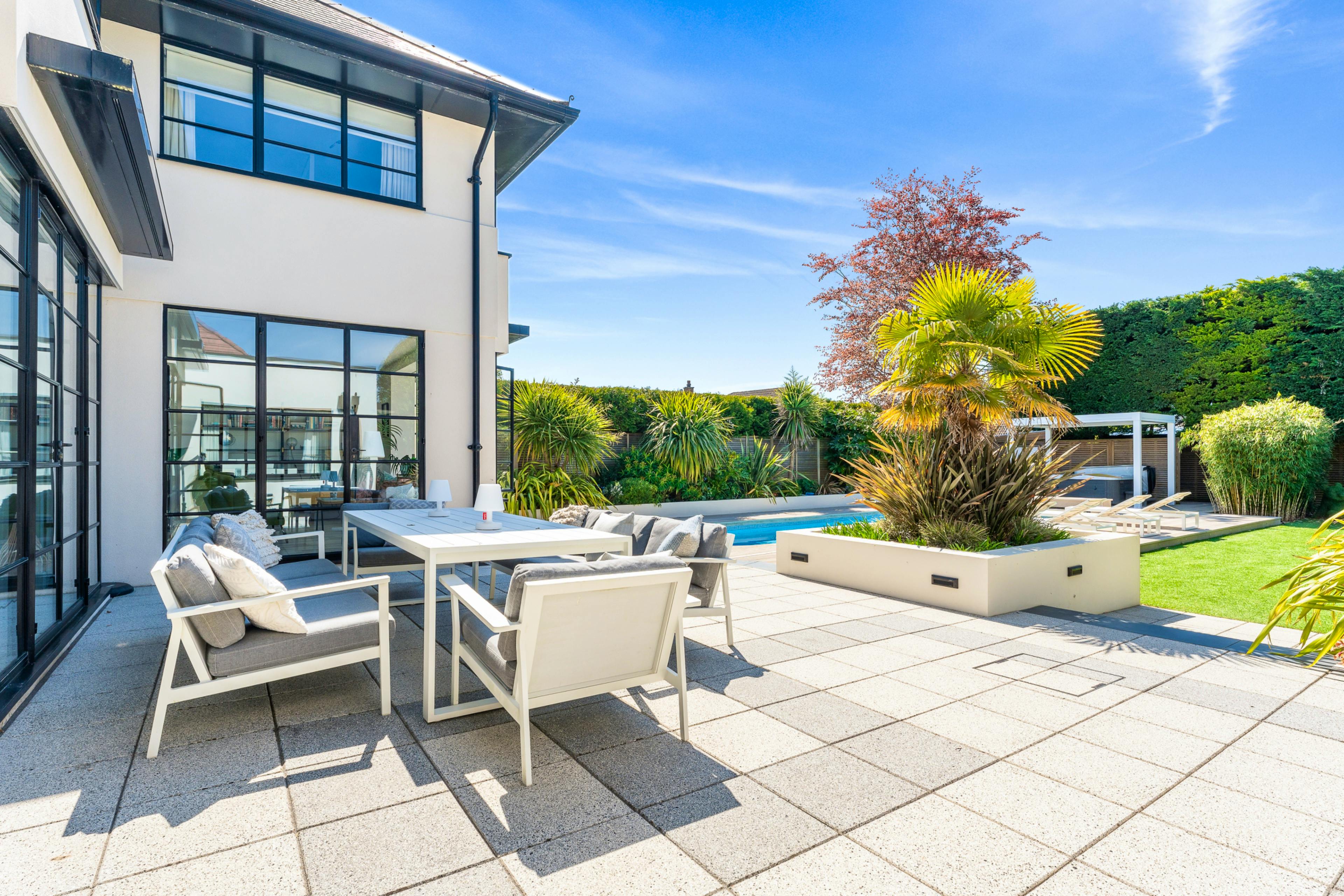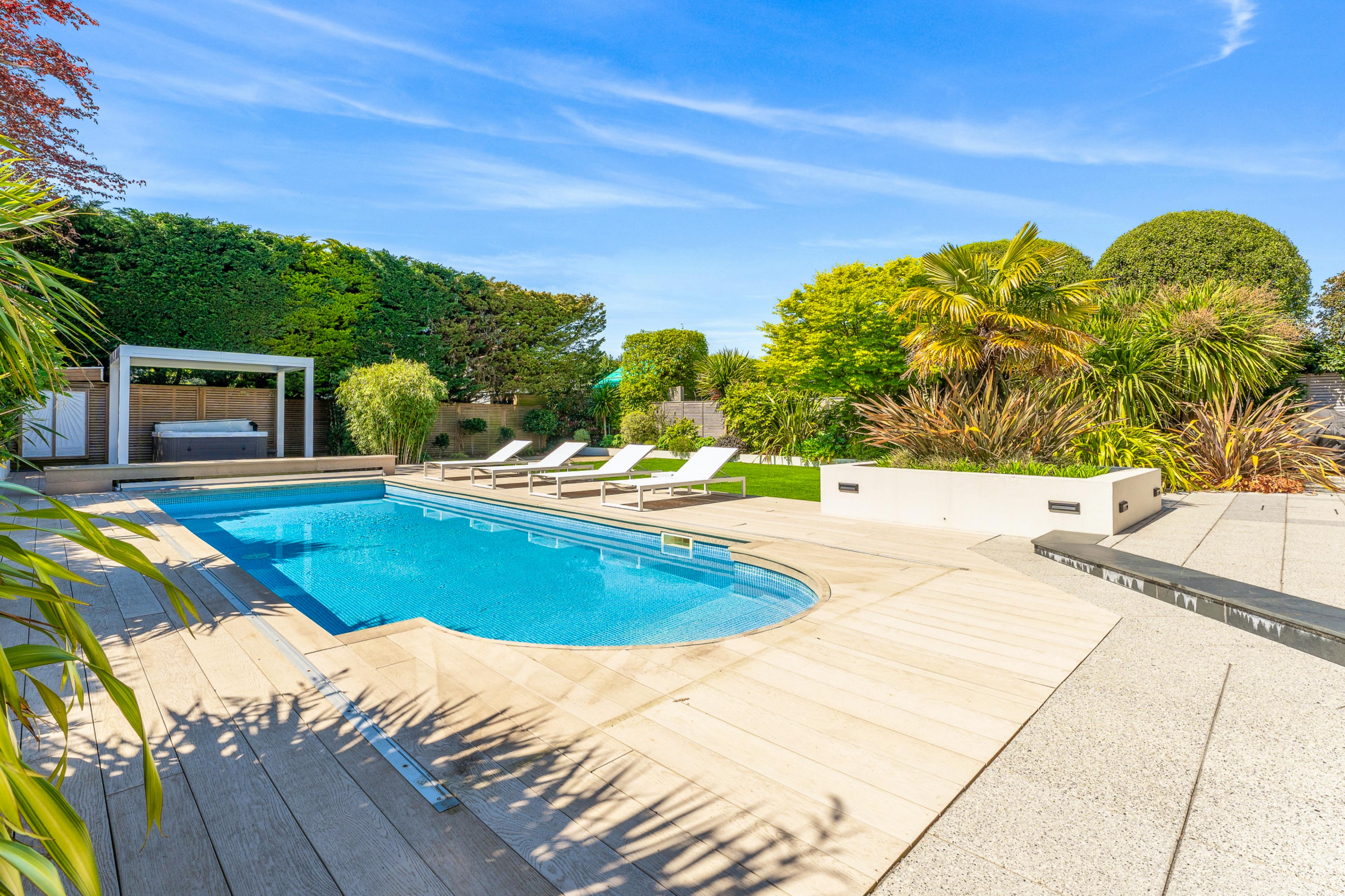 This spectacular beach house offers a deluxe stay just moments from the sandy beaches of Friars Cliff in Christchurch, Dorset. With a marvellous outdoor swimming pool and grand, spacious interiors, this is a superb retreat for groups of up to 10 guests making it perfect for friends and family. Inside, the clean white walls and bold colours combine to create a stylish and unique living space, whilst gold touches add a sprinkle of glam to your stay. The downstairs features an abundance of social spaces, meaning you can spread out and catch up with loved ones in style. There’s a cosy lounge area, with a super-stylish green sofa and giant glass doors that open up onto the swimming pool. Sit here with a drink in hand as your loved ones enjoy a dip in the water. Off this space there’s also a giant open-plan living area, with yet more comfy sofas at one end and a modern kitchen at the other. The kitchen is wonderfully equipped with everything you need for preparing delicious meals for your group. And, there’s also a spacious island where you can get comfy on a barstool and keep your loved one company as they whip up a feast. Then, when dinner’s served dine together on the spacious table that seats your entire group, or take your meals out into the garden and dine on the patio in the fresh sea air. The lawned garden is the true star of the show, with its wonderful swimming pool, where you can enjoy an afternoon swim or spend hours on a sun lounger by the water’s edge catching some rays. There’s also a covered hot tub, where you and your nearest and dearest can enjoy a glass of bubbles as the sun begins to set. Back inside, Deco Beach has five fab bedrooms, all of which have been lovingly designed to offer a peaceful night’s sleep. One of the bedrooms even sits on the ground floor, making it ideal for anyone with mobility issues. Three of the bedrooms also have ensuite bathrooms for added privacy, some of which have deluxe free-standing bathtubs for indulgent bubbly soaks. The house is ideally located between Christchurch and Highcliffe, offering easy access to both the countryside and the coast. Christchurch, a charming market and fishing town on Dorset’s eastern edge, is nestled between the New Forest and the vibrant seaside resort of Bournemouth. With a history dating back to the Domesday Book, it’s a great spot for a family day out, full of historic sites and local character. Just to the east, Highcliffe is a quaint village known for its dramatic shingle beaches, boutique shops and popular cliff-top cafés. It’s also home to Highcliffe Castle - a Grade I listed masterpiece of Romantic and Picturesque architecture. Once the residence of Mr. Selfridge, the castle now serves as a stunning event venue and family-friendly attraction, hosting weddings and seasonal events throughout the year.