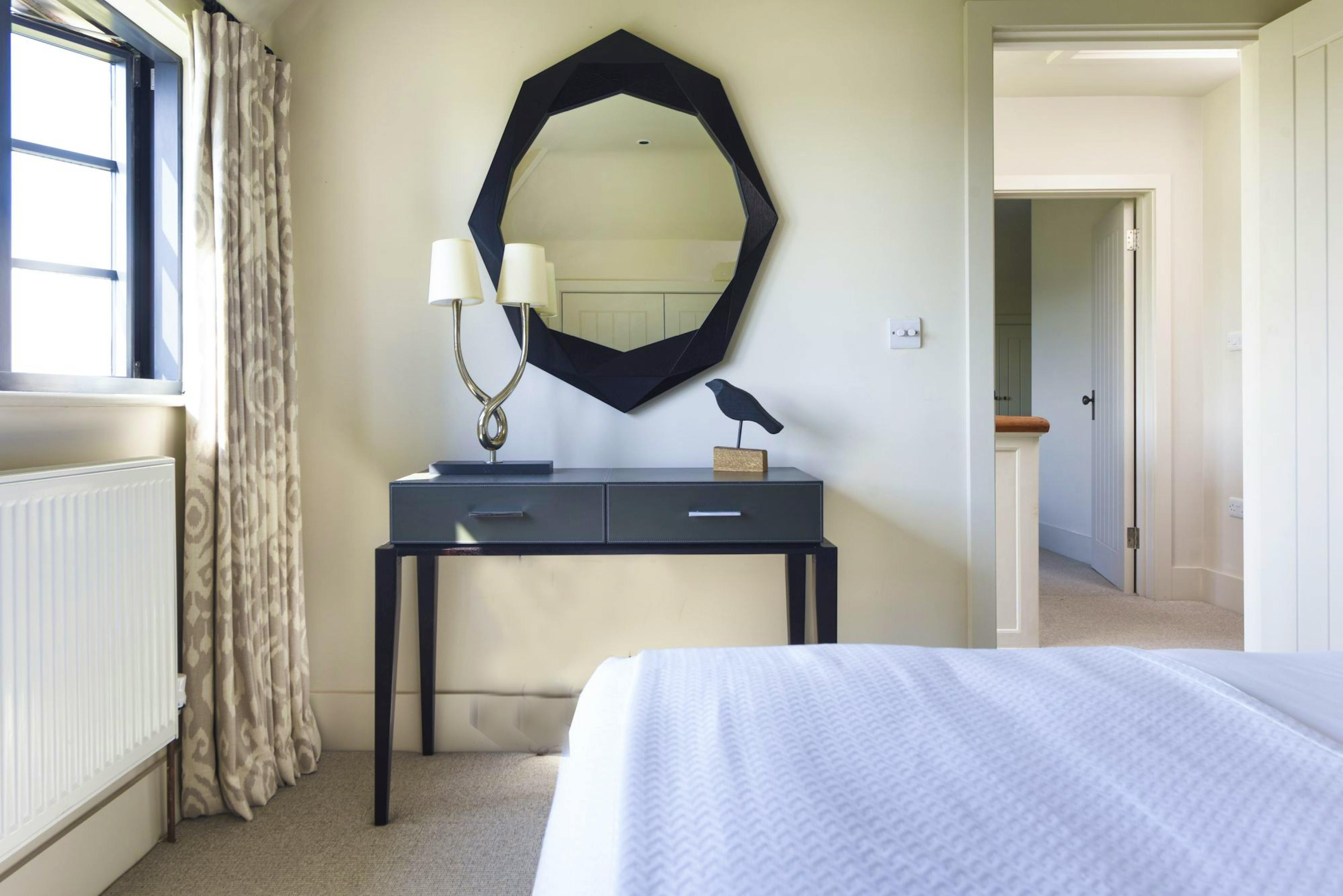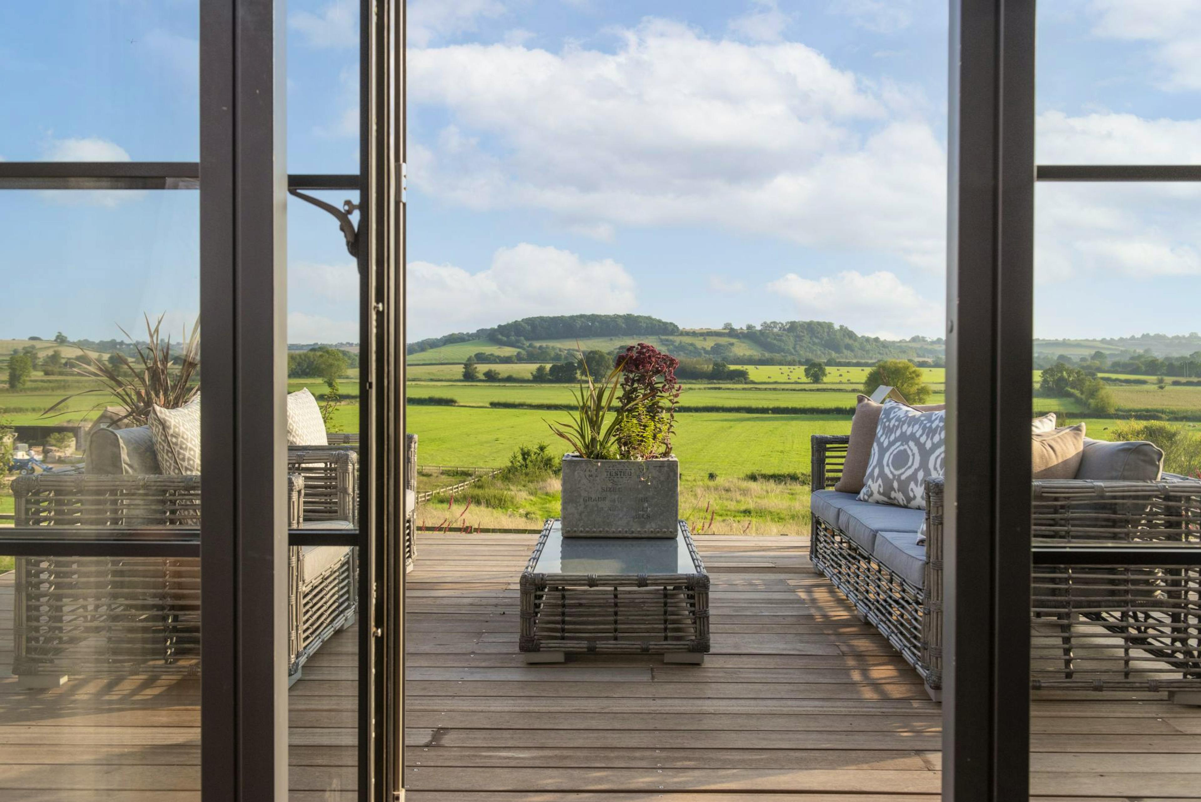 Offering a blissful blend of away-from-it-all escapism and luxury boutique lifestyle, an extraordinarily gorgeous interior awaits guests, where stunning furnishings and artistic flair are outdone only by the incredible views that impose on nearly every room in the house. With space to be together and room to be apart, there are cosy picture-windowed corners to steal away to, and lavish living spaces for lounging in, including a sumptuous sitting room with its ornate fireplace that adds not only a hint of opulence but also warmth and ambience during the colder months. A fabulous fully equipped kitchen with breakfast bar and seating cuts a contemporary figure of design simplicity where morning coffees are savoured and home cooking is more ‘sociable soiree’ than mundane chore. Dining is a relaxed affair with guests gathering around the farmhouse table in the kitchen to share meals and conversation while large glass doors extend the entertainment area from the inside out. Spanning the length of the house, the furnished sandstone patio offers an uninterrupted perspective of the seemingly infinite rural landscape beyond and an elevated deck with bubbling hot tub at the far end tempts long delicious soaks at any time of the day or night. With relaxation being at the forefront of the home’s design repertoire, guests can wander down to the unspoiled grass paddock with its shepherd hut at the far end of the garden to enjoy a G&T in the sunshine, and for rainy afternoons there’s a cinema snug complete with sink-in seating, a flatscreen tv and more of those exceptional countryside views. Upstairs, three contemporary bedrooms offer beautifully styled light-filled spaces to retreat to for a late morning read or post-lunch nap, and when the sun sets and curtains are drawn, they become the cosiest of sanctuaries for a deeply refreshing night’s sleep. Home to an attractive market square, Somerton’s pretty stone houses and independently owned shops and restaurants reside on wide, tree-lined streets weaving the old and new together in fabulous fashion. Within a short distance from the house, the town offers guests a selection of eating-out options as well as ample opportunity for filling travel bags with one-off items to take home. Slightly further afield but easily accessible, the 300 year old Newt estate in Somerset is, by its own admission ‘a place of wonderment’; with its exquisite acreage, on-site restaurant and beautiful limestone buildings making it an absolute must-visit destination while visiting the area.