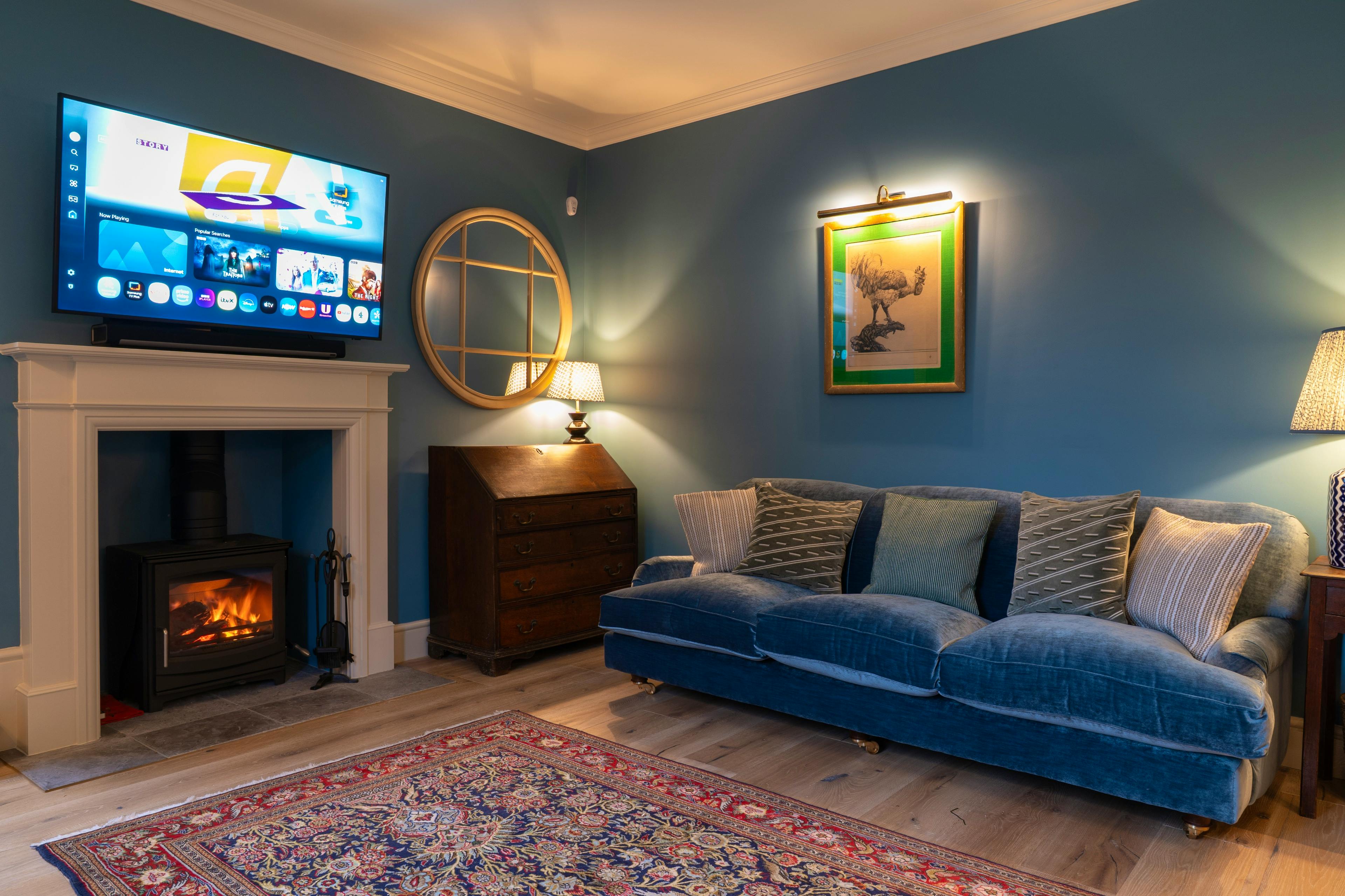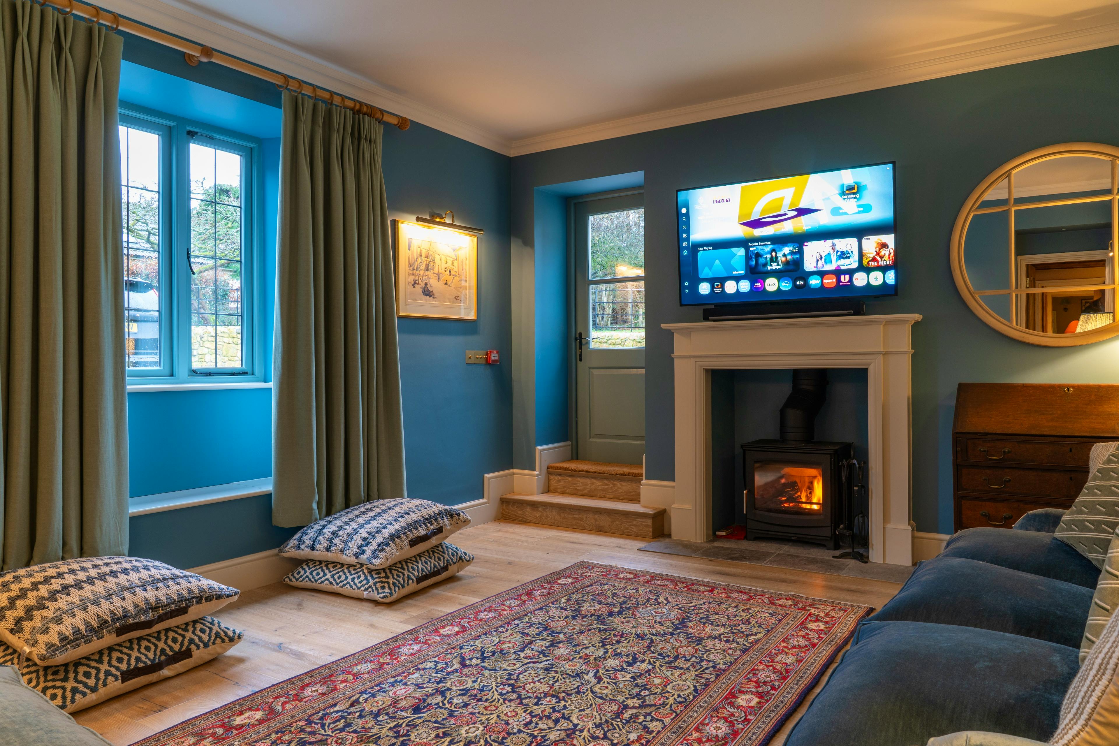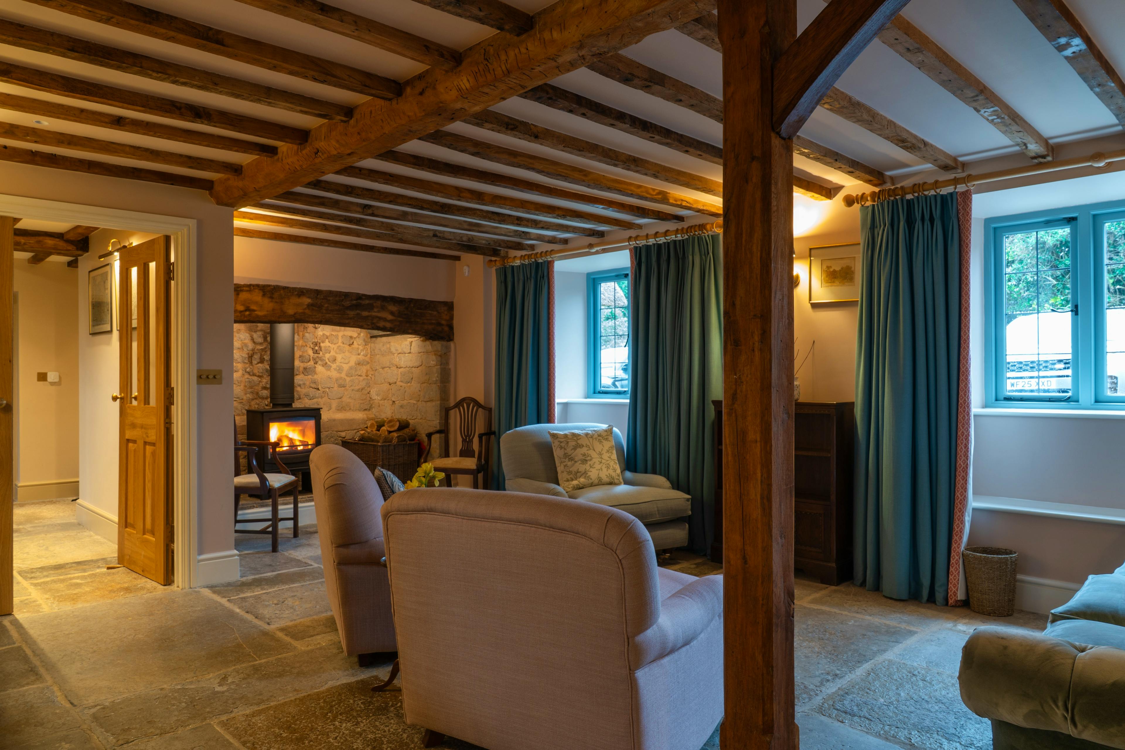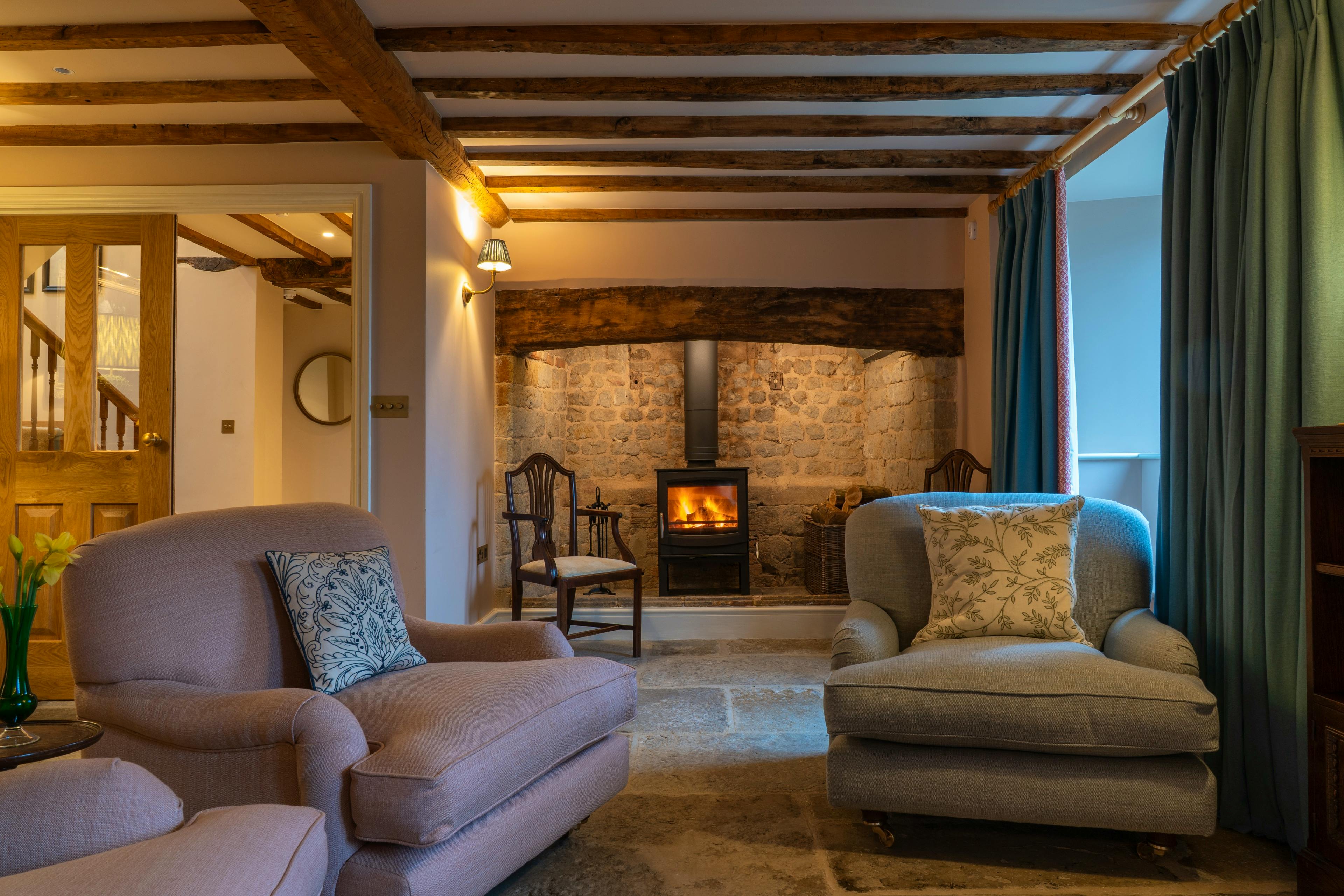 Cosy living spaces with log burners and underfloor heating, ideal for unwinding after countryside walks in any season.