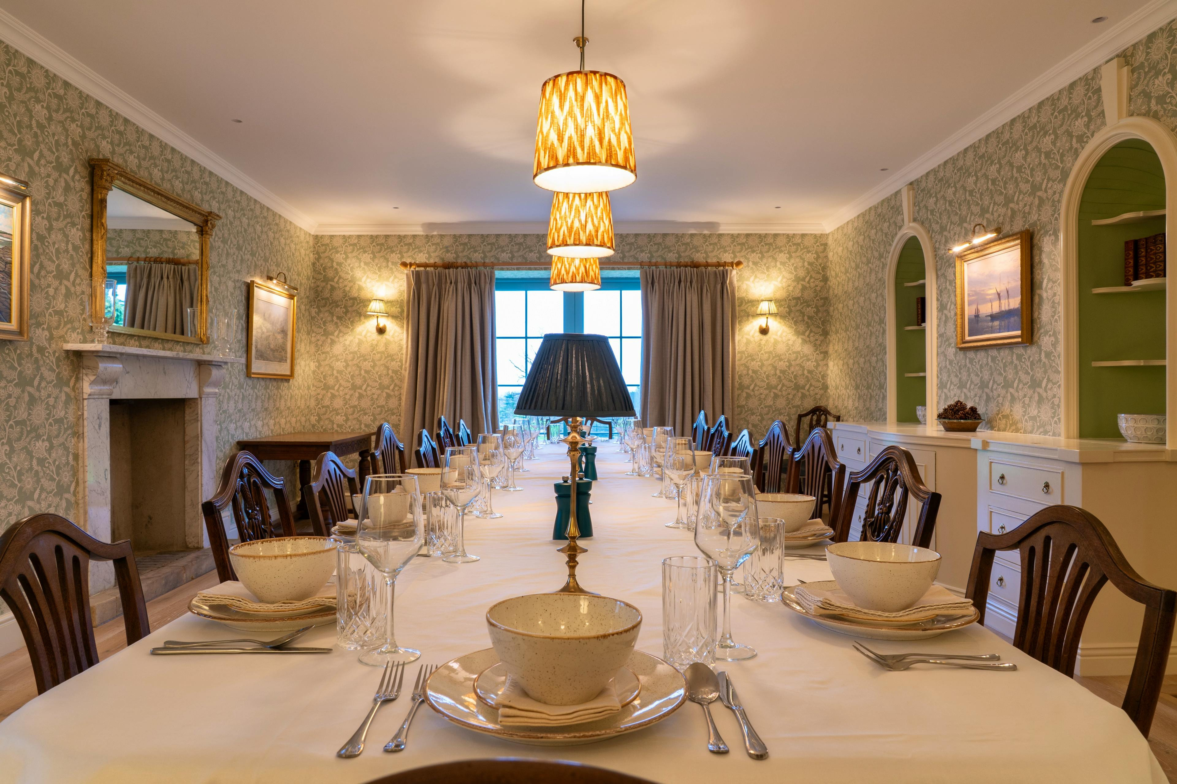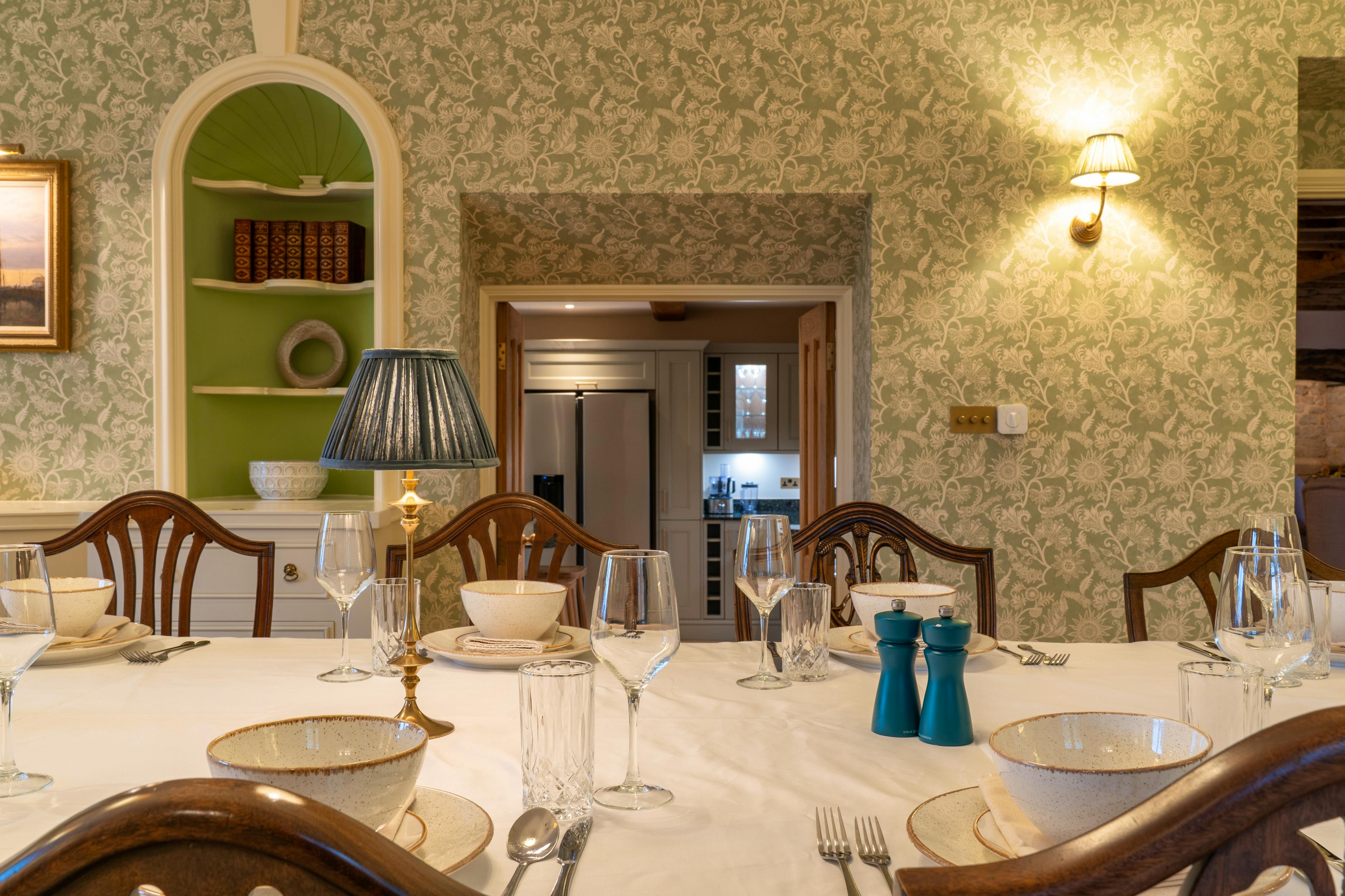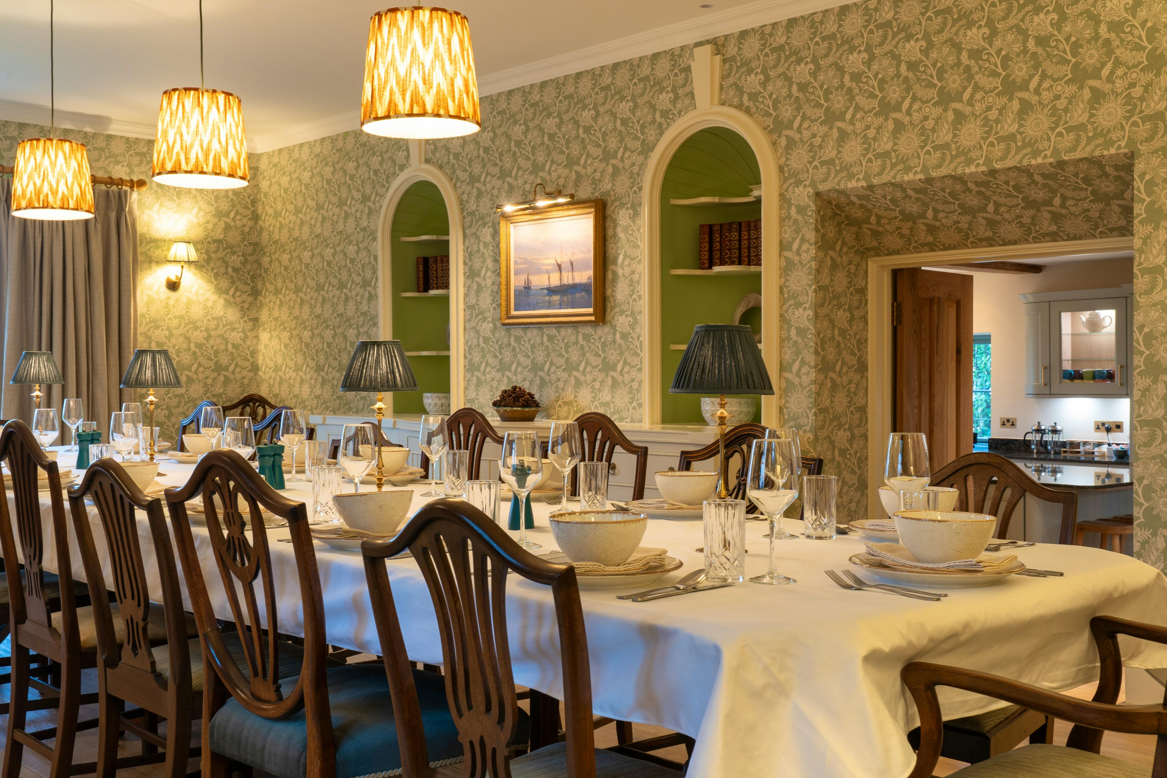 A generous, well-equipped kitchen and striking dining room designed for shared meals, celebrations and long evenings together.