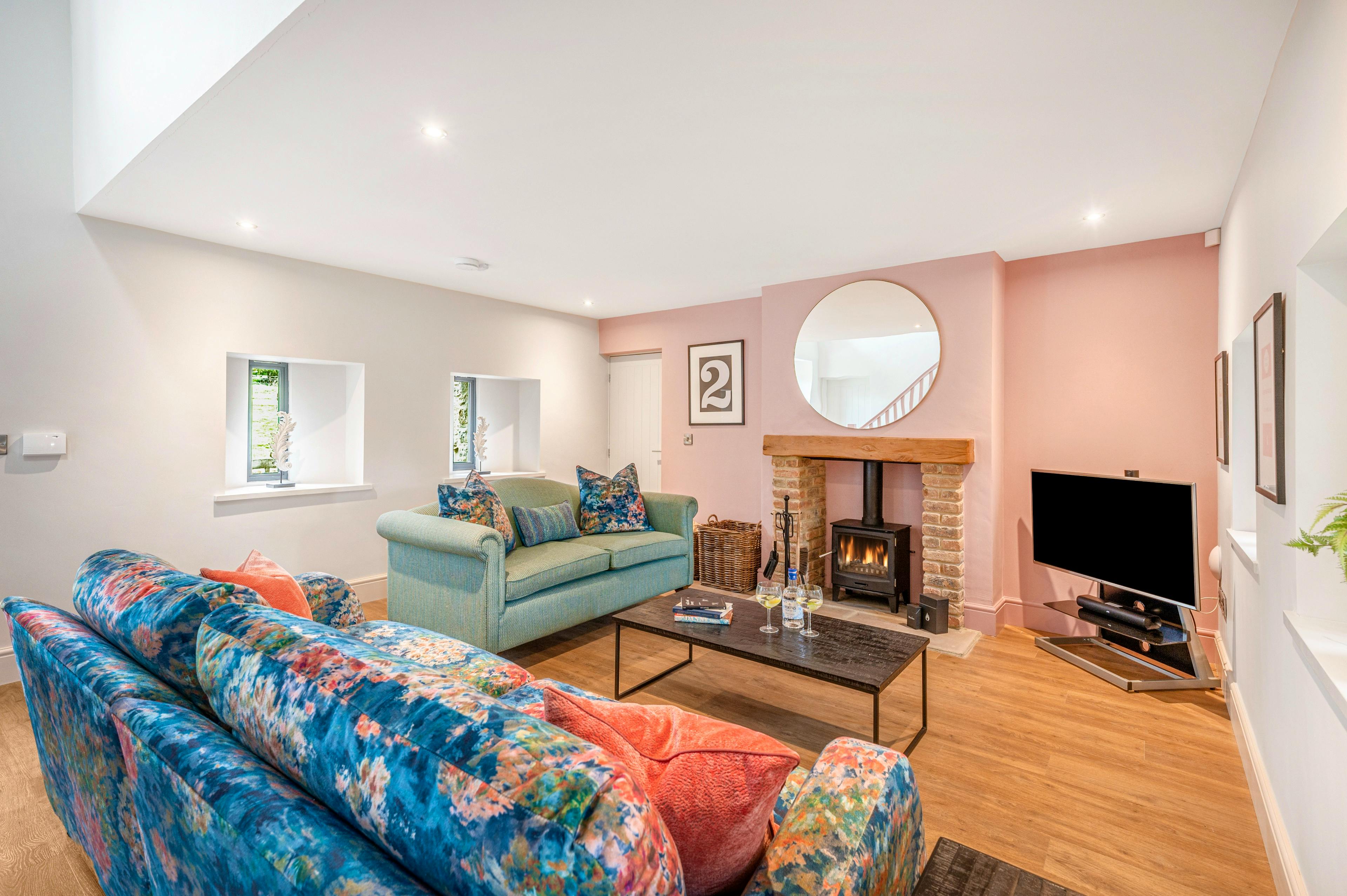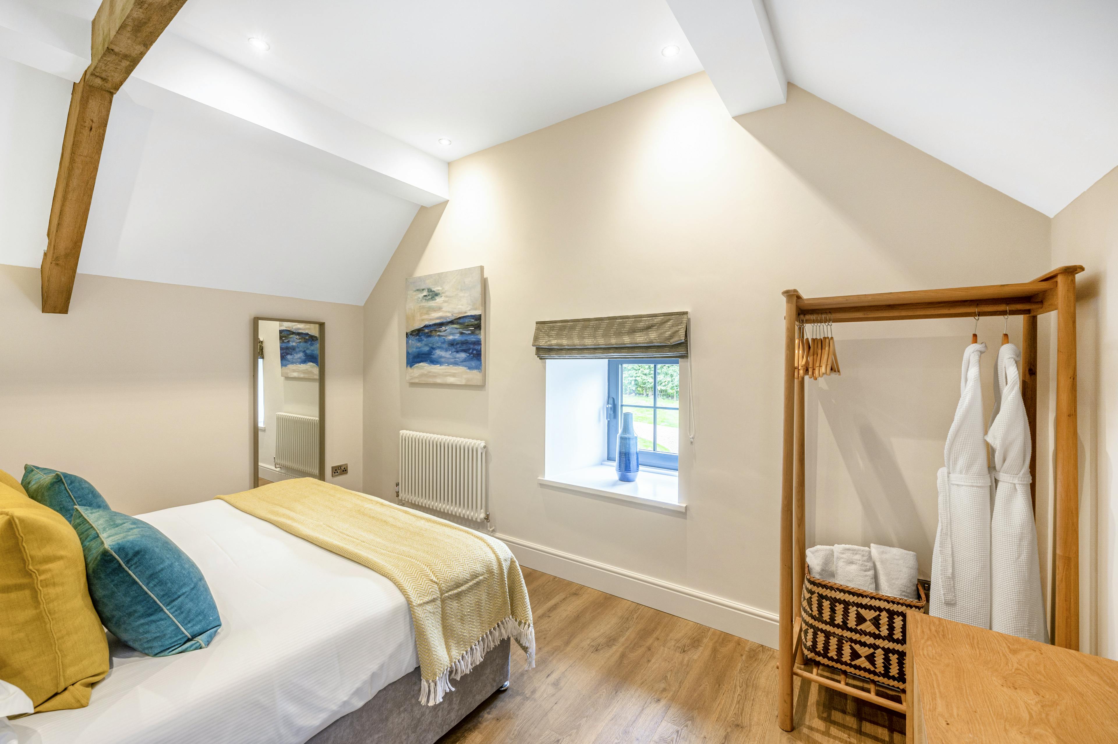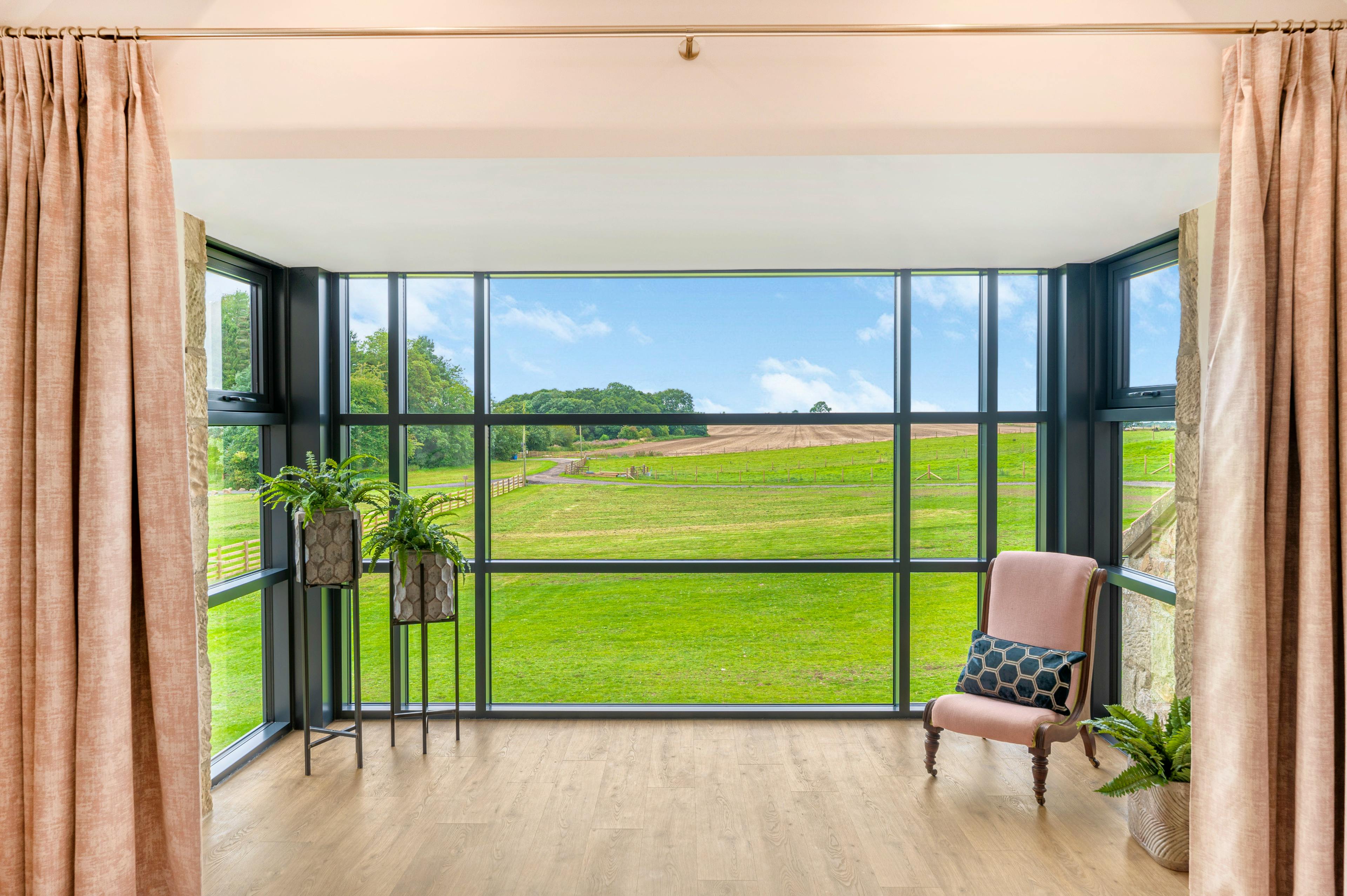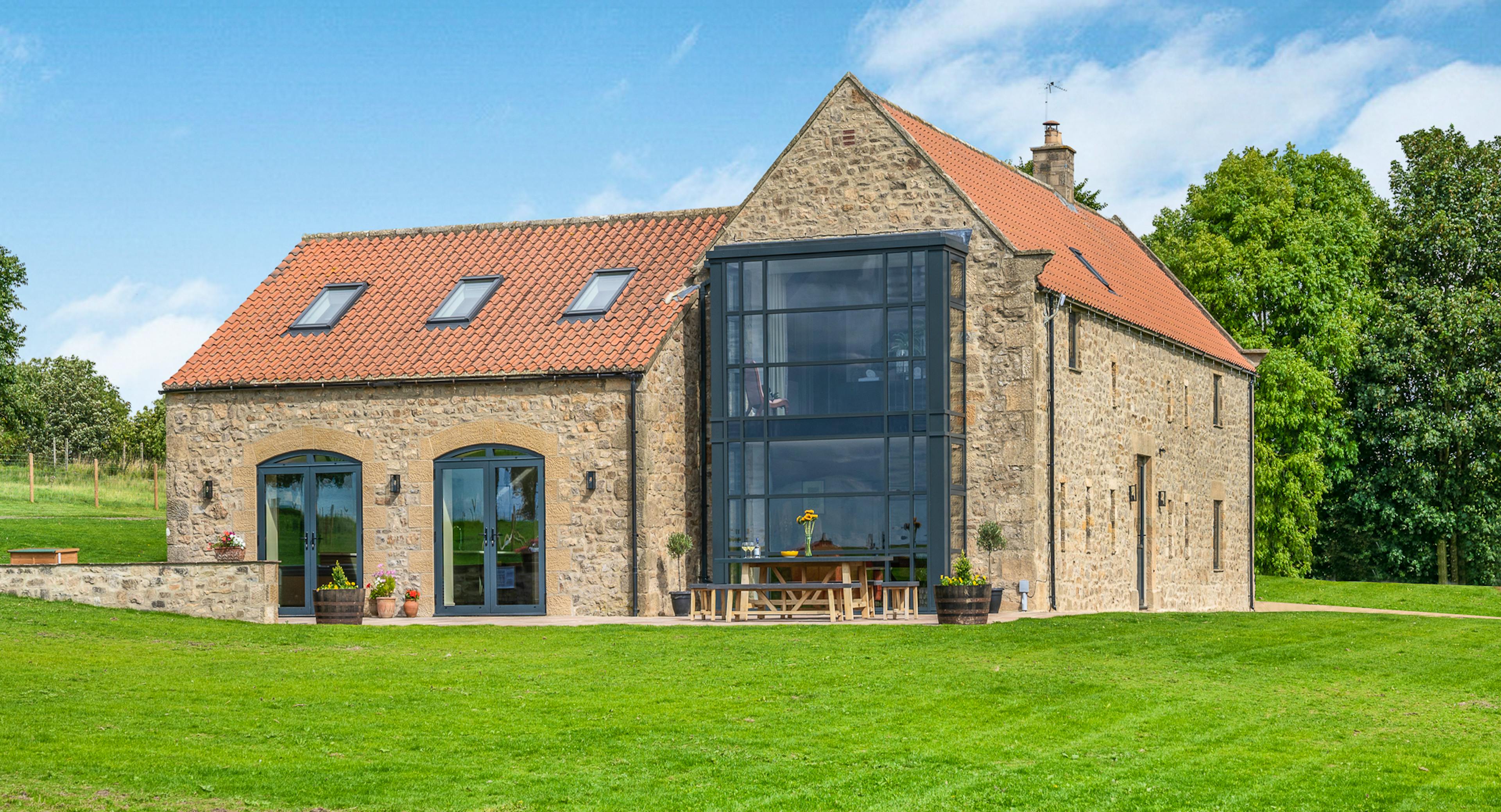 Contemporary farmhouse with views of North Yorkshire’s countryside from the hot tub, perfect for groups of friends or family holidays.