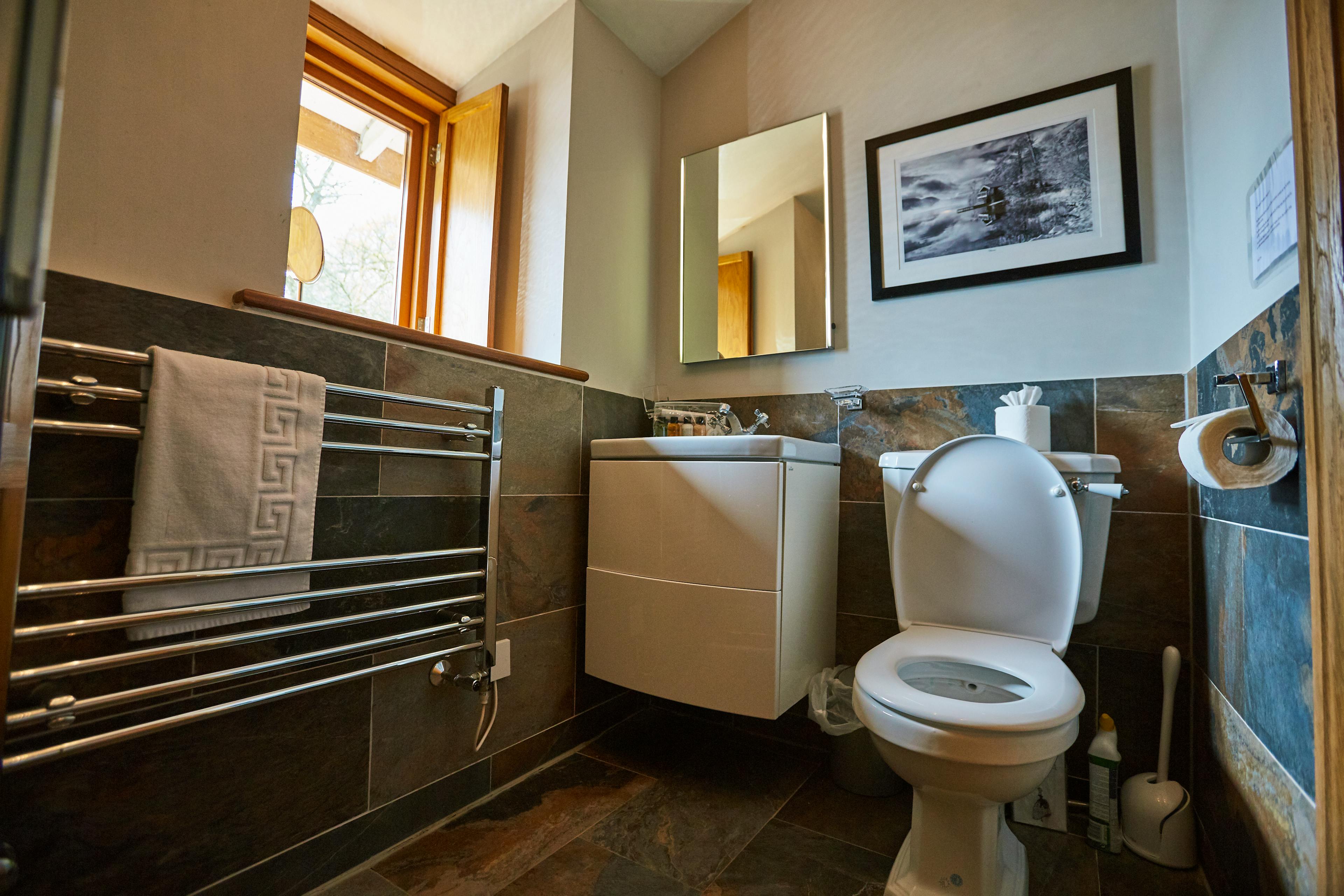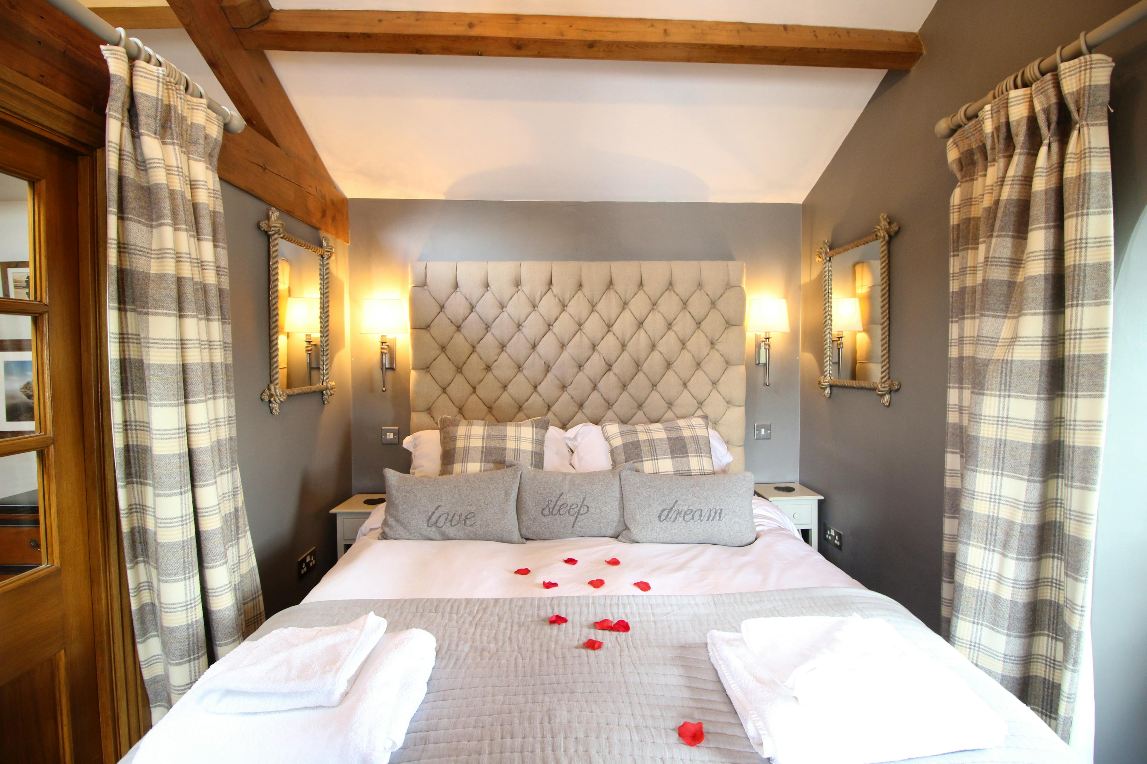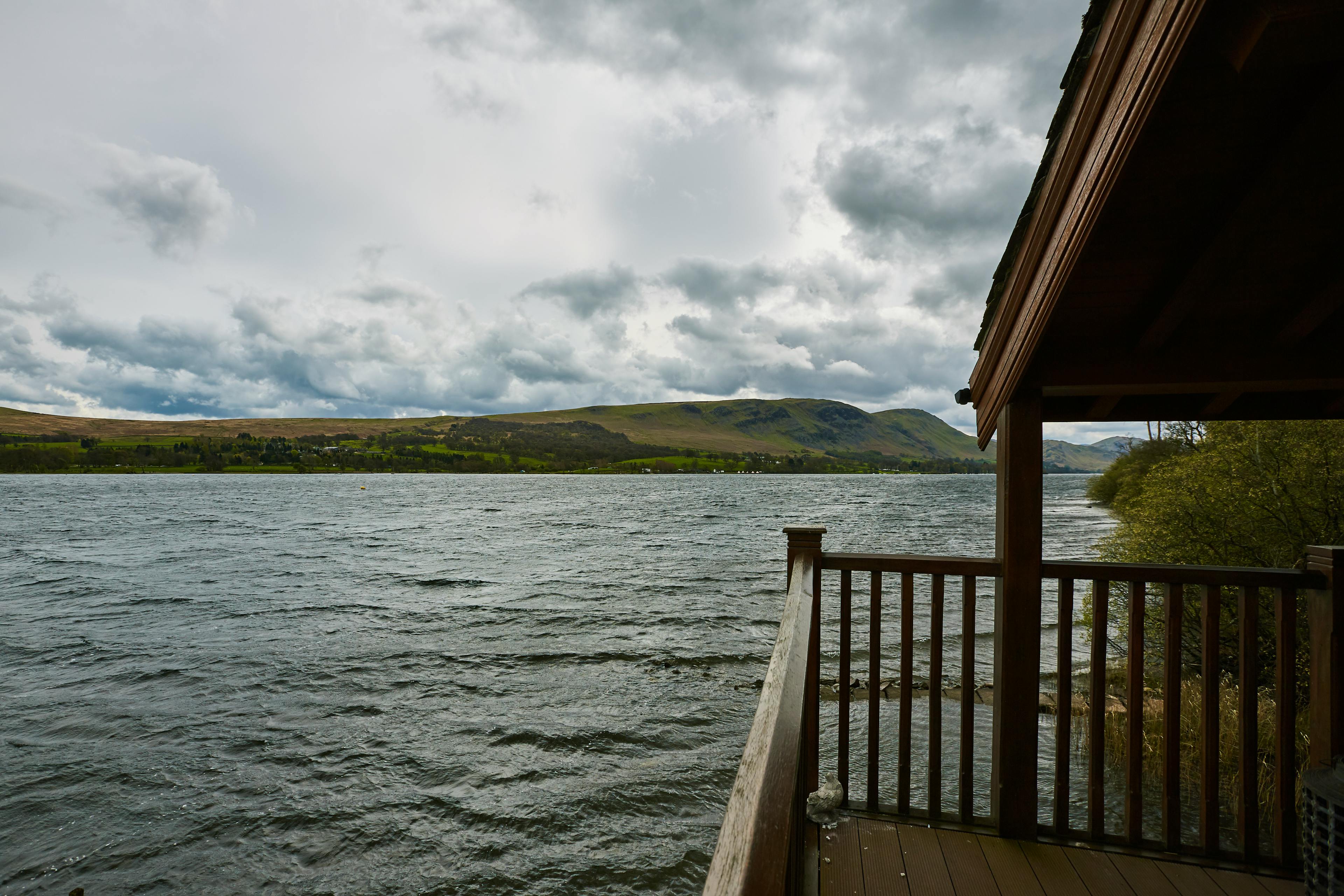 The bedroom features a roll top bathtub and double doors leading out to the balcony which protrudes over the lake, offering spectacular and unique views of Ullswater with mountains to the south and rolling hills to the north.