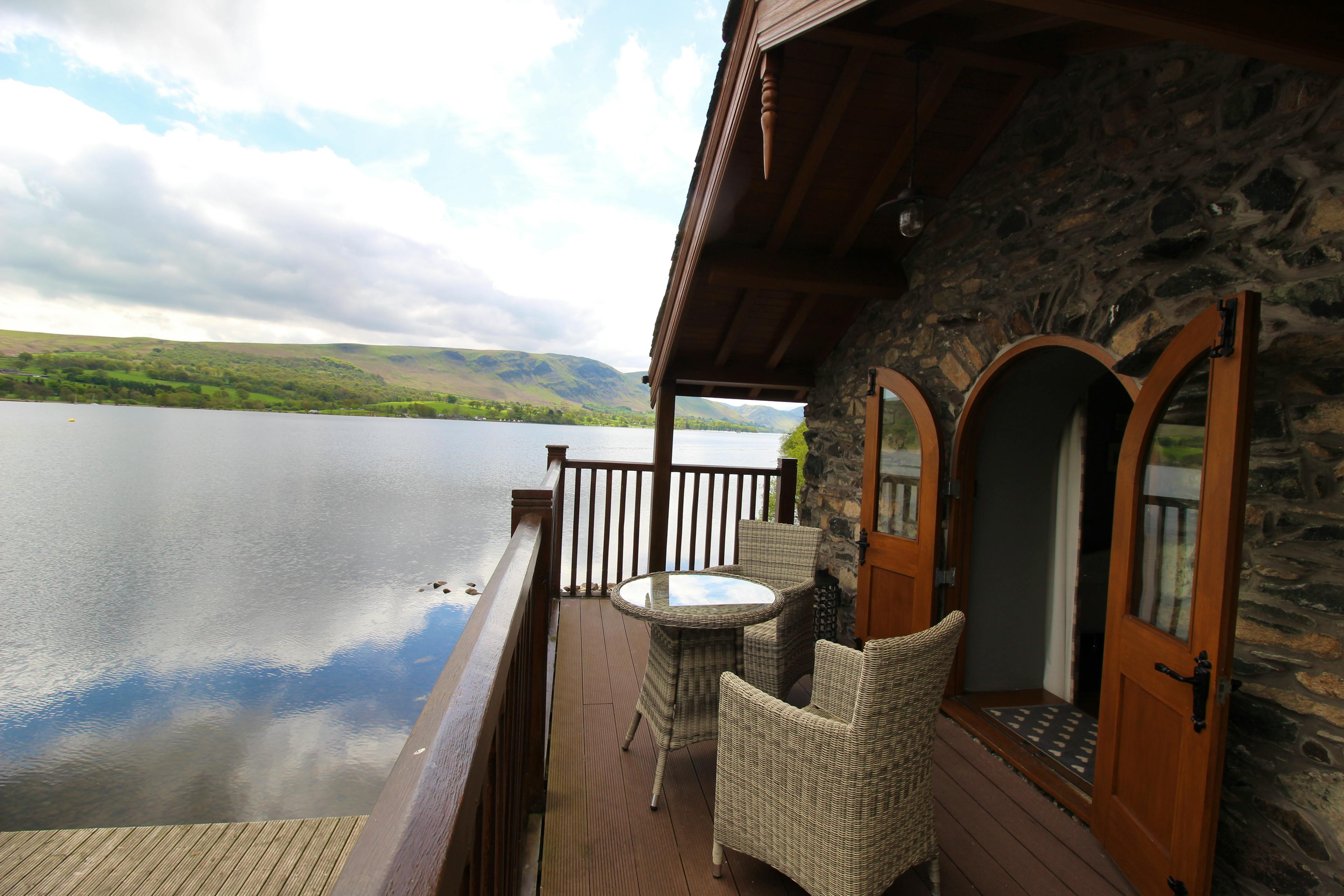 Beautiful 18th century boathouse with a balcony overlooking Ullswater in the Lake District, a romantic lakeside retreat.