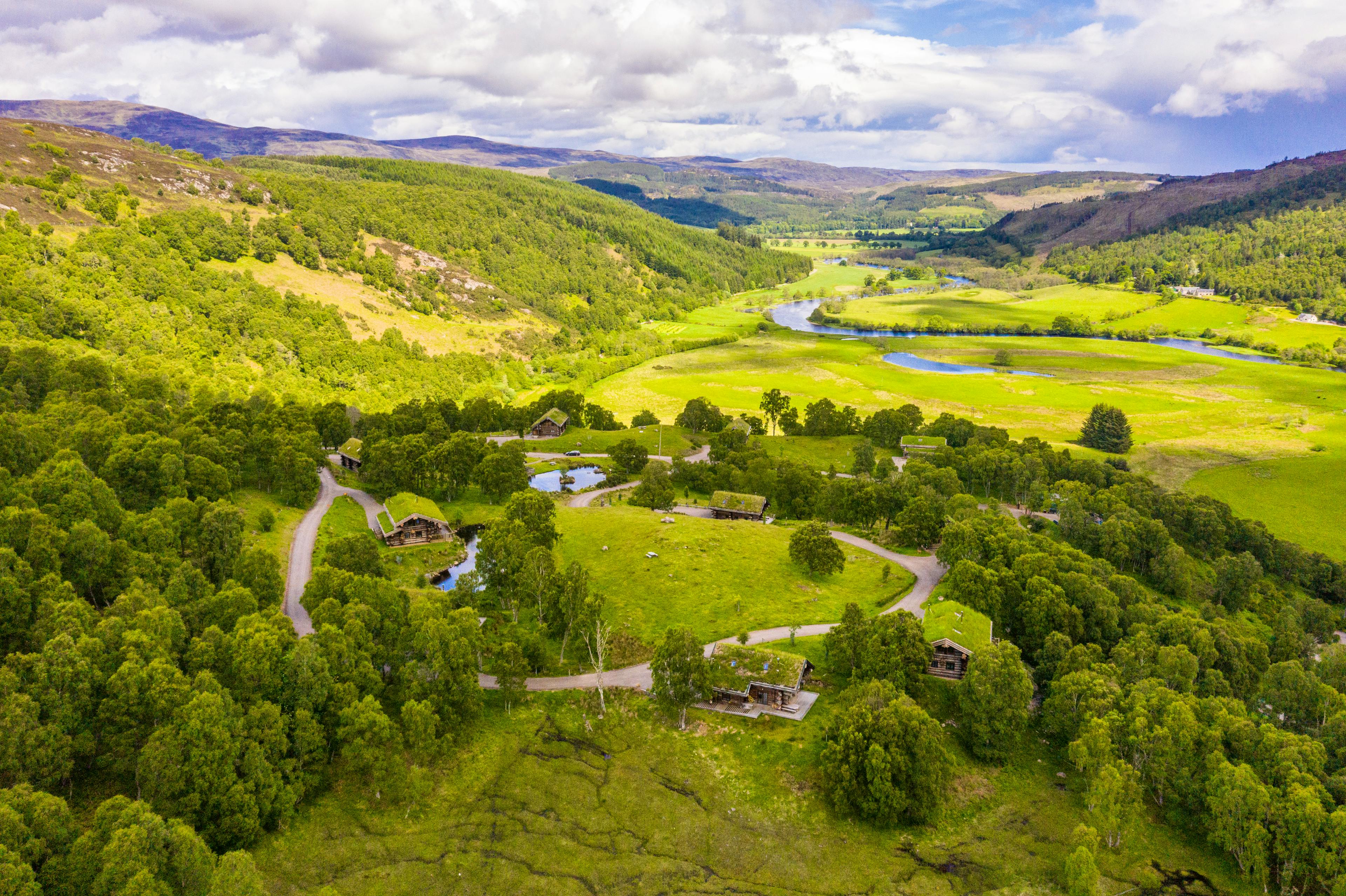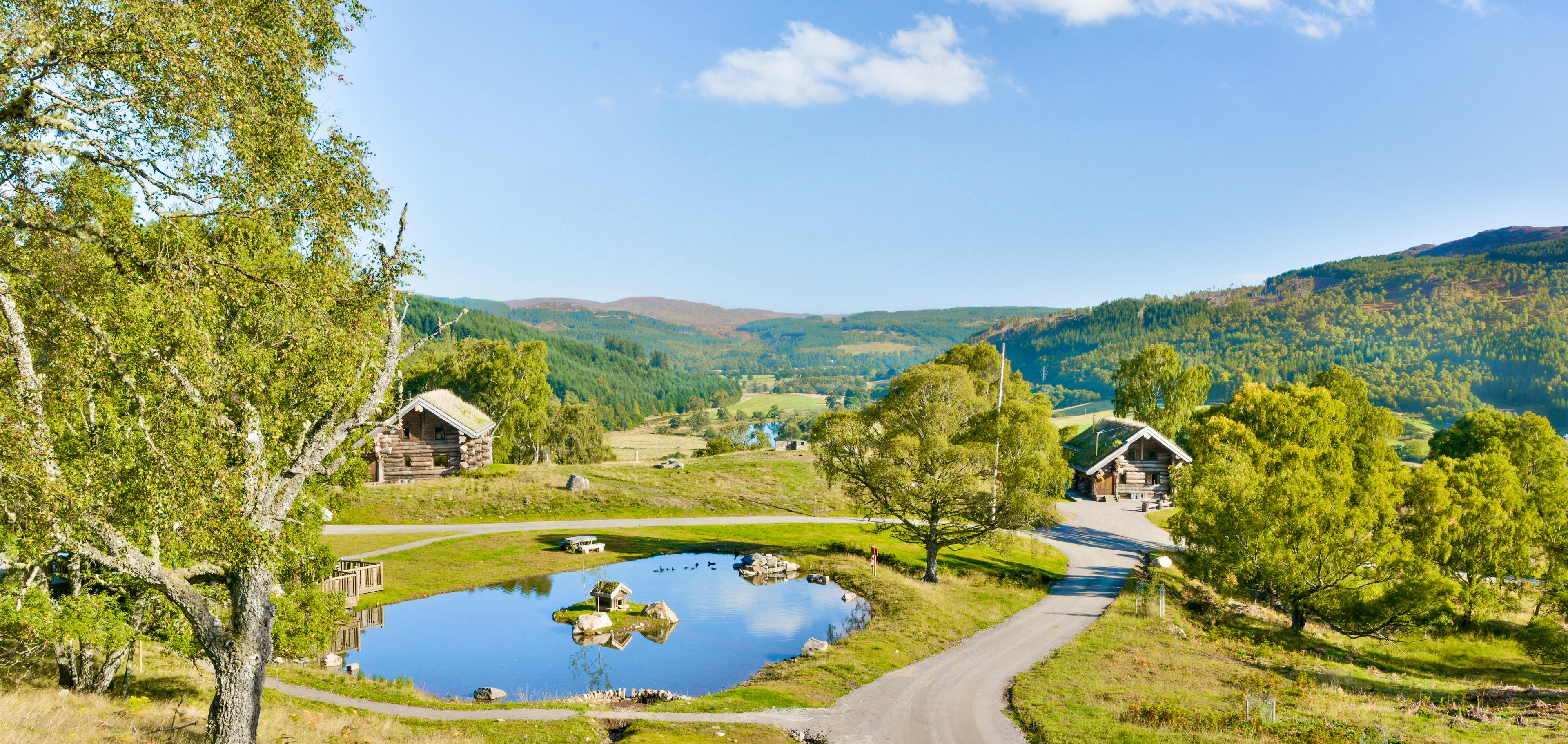 Luxurious, hand-crafted log cabins nestled in the spectacular scenery of the Scottish Highlands for an eco-friendly escape.