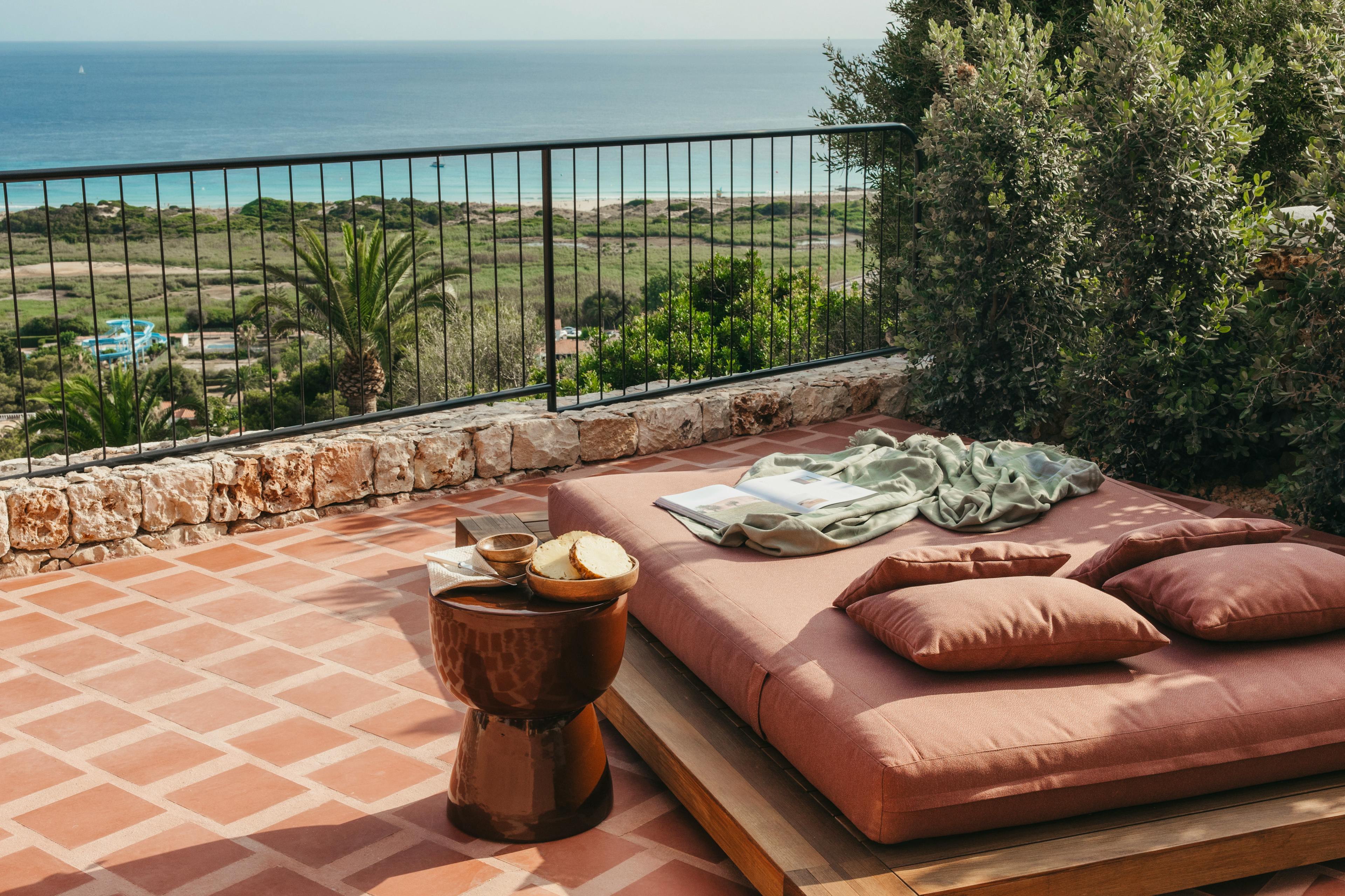 Tranquil sea-view villa in Menorca with soulful design, wellness spaces and a private salt water pool.