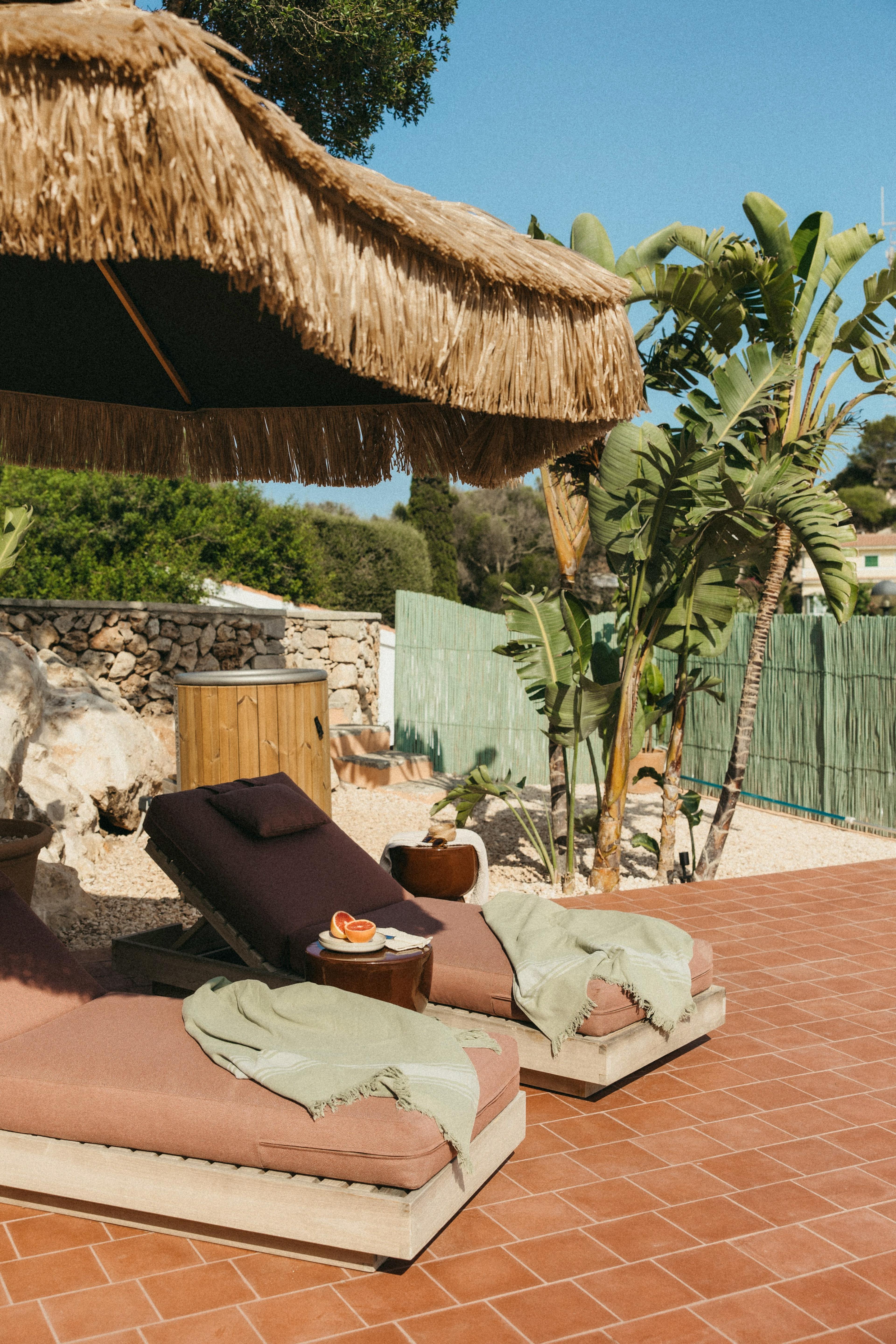 El Puente Al Amor greets you with a sense of quiet luxury the moment you arrive, a soulful sanctuary tucked into the sun-washed hills of San Jaime where island tones, sea breezes and wide-open views set the mood for total restoration. This sustainable villa feels beautifully in tune with Menorca’s slower rhythm, offering 180º sea views from every living and dining space so you can watch the light shift from sunrise to the glowing colours of dusk. It’s an effortlessly serene escape, designed as a private retreat for up to eight guests with an attention to detail that makes every moment feel deeply considered. The interiors are calm, curated and quietly indulgent. Two master suites and two king suites offer Tencel lyocell bedding, memory pillows, air-conditioning, rain showers and a stone bathtub, creating bedroom sanctuaries that feel like boutique hotel rooms. Each space is designed for comfort but also connection, with hot-desks, built-in wardrobes and thoughtful lighting that complements the natural surroundings. There’s a gentle flow between rooms, allowing you to unwind in your own corner of the villa or come together in the spacious, light-filled living areas. The open-plan kitchen and dining space is equipped for long, leisurely gatherings. Cook on the range induction hob, prepare fresh island produce with the juicer and filtered water tap, store local wines, or fire up the Asado BBQ for a sunset feast. The table seats up to 10 so entertaining feels effortless. A Sonos sound system, high-speed WiFi and a generous lounge offer all the comforts of home with the soothing stillness of the Balearics just outside. Step into the gardens and the villa opens up into an expansive world of wellness. Wander between fruit trees and aloe plants, stretch out on yoga decks, or slip into the 11m salt water pool with its roman steps and shallow seating area. The pool bar comes ready with a fridge and freezer for chilled drinks, while the cold and hot barrel plunge (3–38 degrees) bring a therapeutic touch to your mornings. Multiple relaxation zones and a rooftop terrace create endless opportunities to soak up the sun, read in the shade or sip cocktails under the stars. When you’re ready to explore, Menorca reveals itself as one of the Mediterranean’s most captivating islands. Discover UNESCO-protected landscapes, pristine beaches, historic coastal towns and an exceptional culinary scene that celebrates local produce and creativity. From opera houses to craft markets, from secret coves to award-winning restaurants, this is an island designed to be savoured with all the senses.