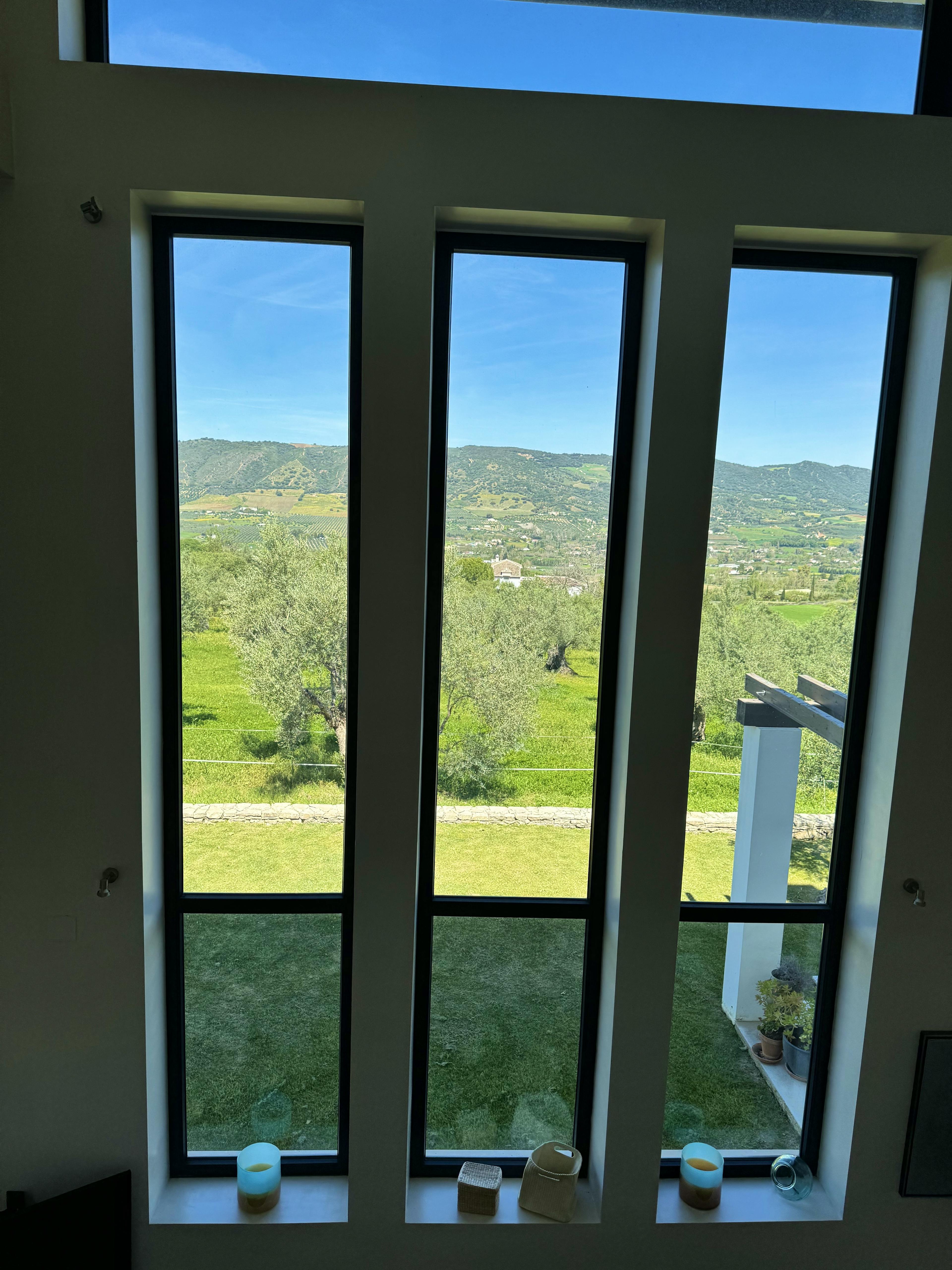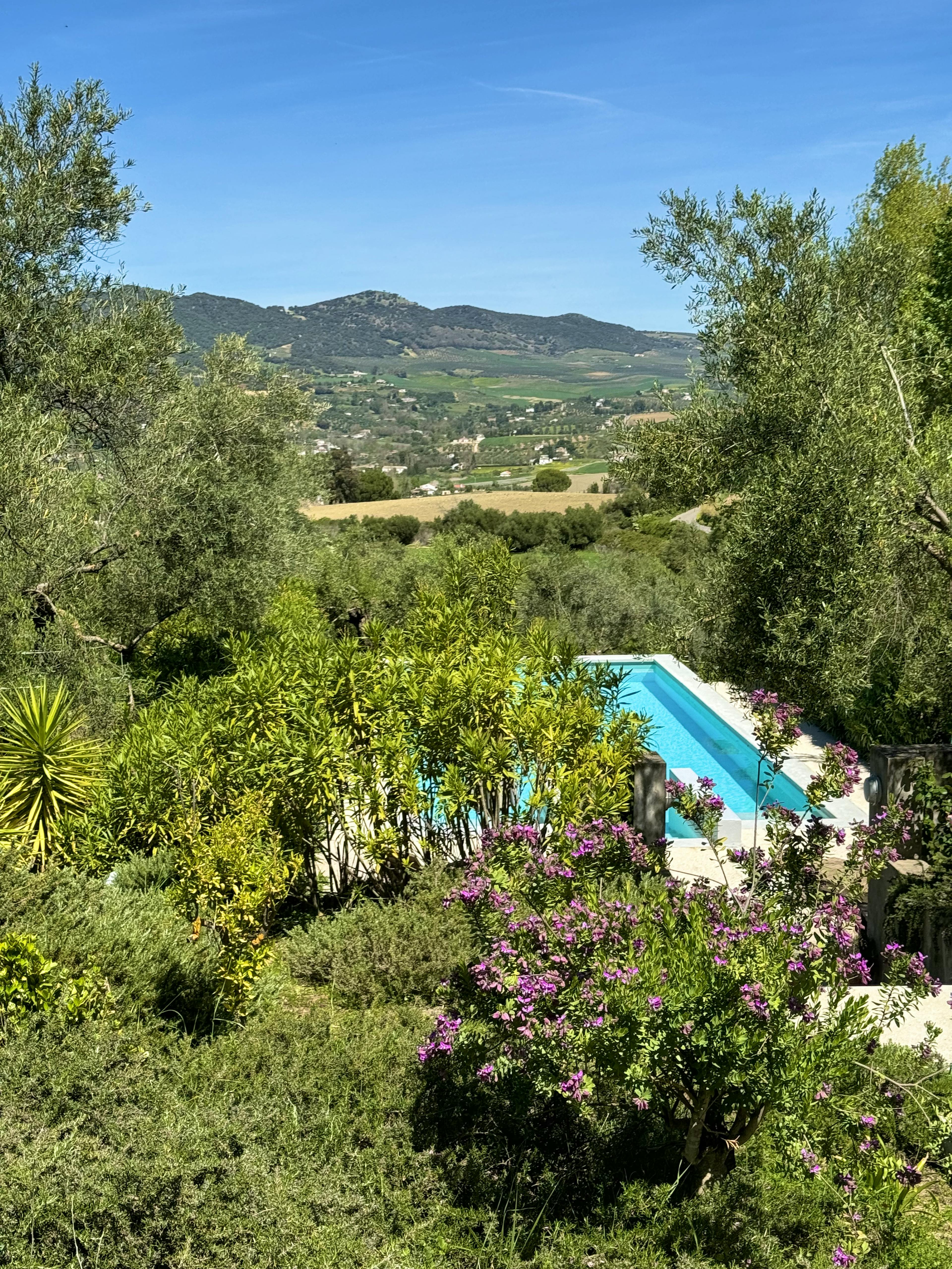 Situated in an old olive grove and overlooking nearby hills, El Toro Blanco is a beautiful spot for a tranquil escape. Take a refreshing dip in the private swimming pool or relax with your favourite tipple on one of the outdoor terraces. Inside, the tall structure and large windows provide ample space and natural light, and a range of amenities are available for your comfort and enjoyment. Featuring four ensuite bathrooms, this luxury villa is ideal for group getaways. The natural beauty of nearby historic Ronda awaits. Are you ready to explore? Verdant plants border the steps leading to the attractive facade of this contemporary villa. Upon entering the property, you will be wowed by the cathedral-like structure and floor-to-roof views. Large windows are dotted throughout the villa and make for a welcoming, bright and airy space. Featuring four stylish bedrooms - two with king size beds and two with split kings, El Toro Blanco is great for groups. What's more, each bedroom has en ensuite bathroom so you can start your day with a rejuvenating rainfall shower and enjoy unwinding with a bathtub soak after a day's adventure. Thanks to the open-plan design, the villa has a roomy feel and is ideal for socialising. Enjoy a spot of cooking? Prepare tasty meals with ease in the fully-equipped kitchen, featuring an impressive wooden dining table for sharing convivial moments with your group. Appetites satisfied, why not head to the comfortable lounge area for a games night? An open fireplace will keep you toasty in cooler months. The outdoor area is equally impressive, with a range of terraces available for your alfresco enjoyment. Indulge in an afternoon apéritif as you catch some rays, or keep cool in the shade. Set amidst lush greenery, a dining area is also at your disposal for leisurely lunches with your loved ones. A stunning private swimming pool will give you that true holiday feeling. Lounge poolside with a book and take a dip in the calming waters as you soak up the incredible natural landscape. You won't want to leave! Additional amenities include three smart TVs with streaming services, air conditioning and underfloor heating. All details have been carefully considered with your comfort and convenience in mind. Discover Ronda - one of the oldest towns in Spain - and its breathtaking gorge, historic sites and delicious gastronomy. Explore national parks with natural bathing pools and bird-watch in the Ronda mountains. Thrill-seekers can delight in activities such as canyoning and buggy tours. This Andalusian gem is just waiting to be explored.