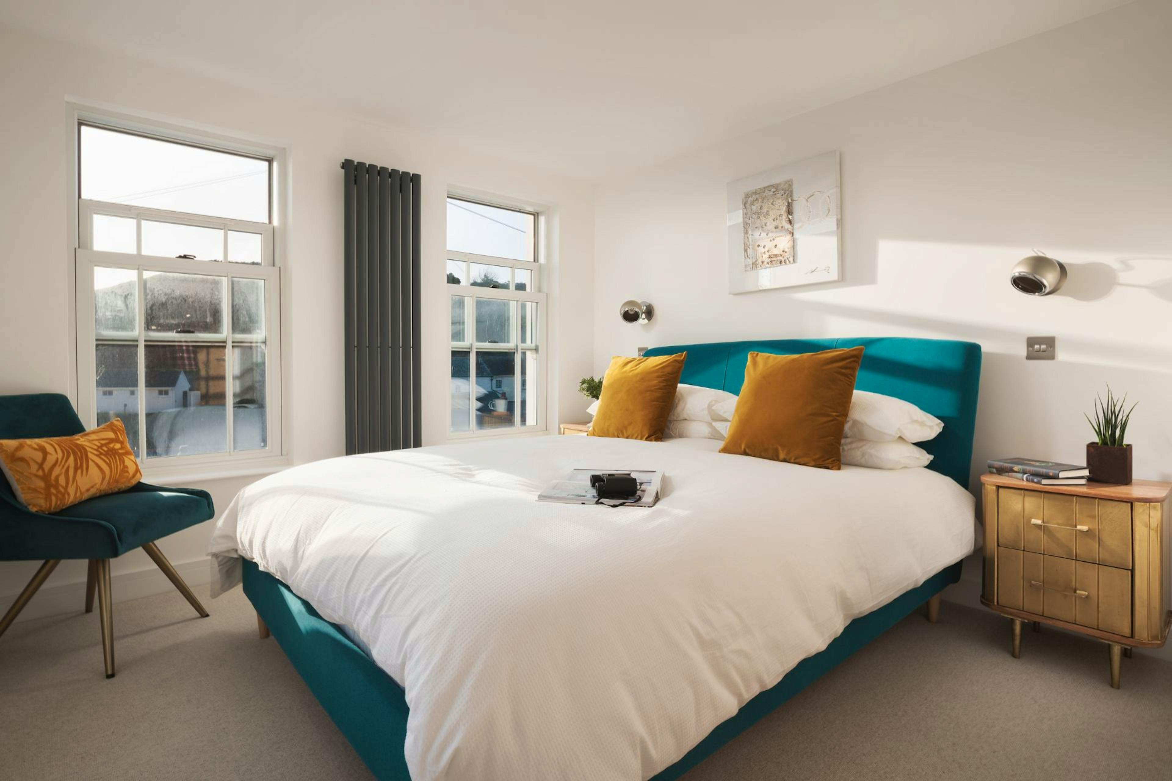Three beautifully designed bedrooms, including a king-size with sea views and a double ensuite.