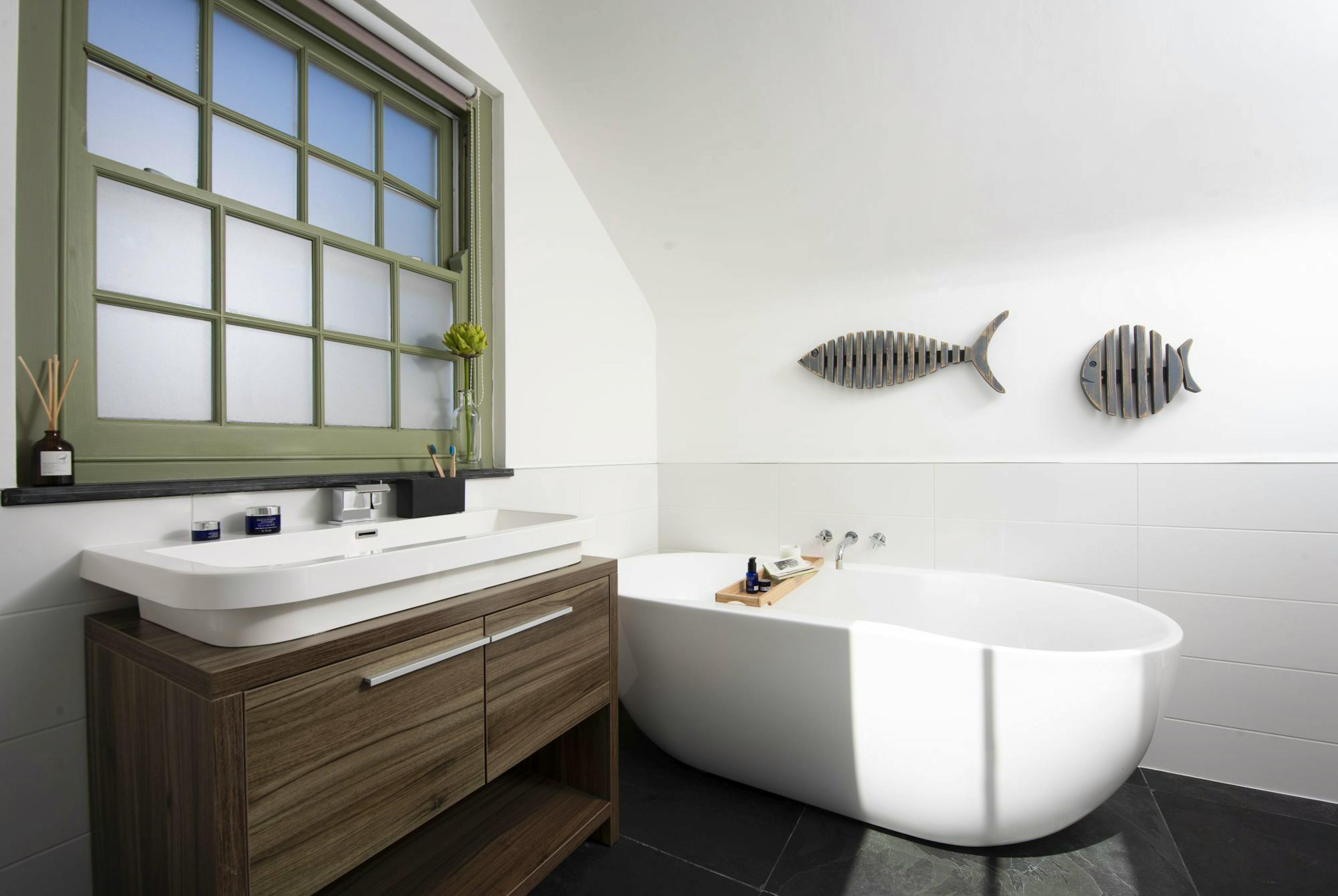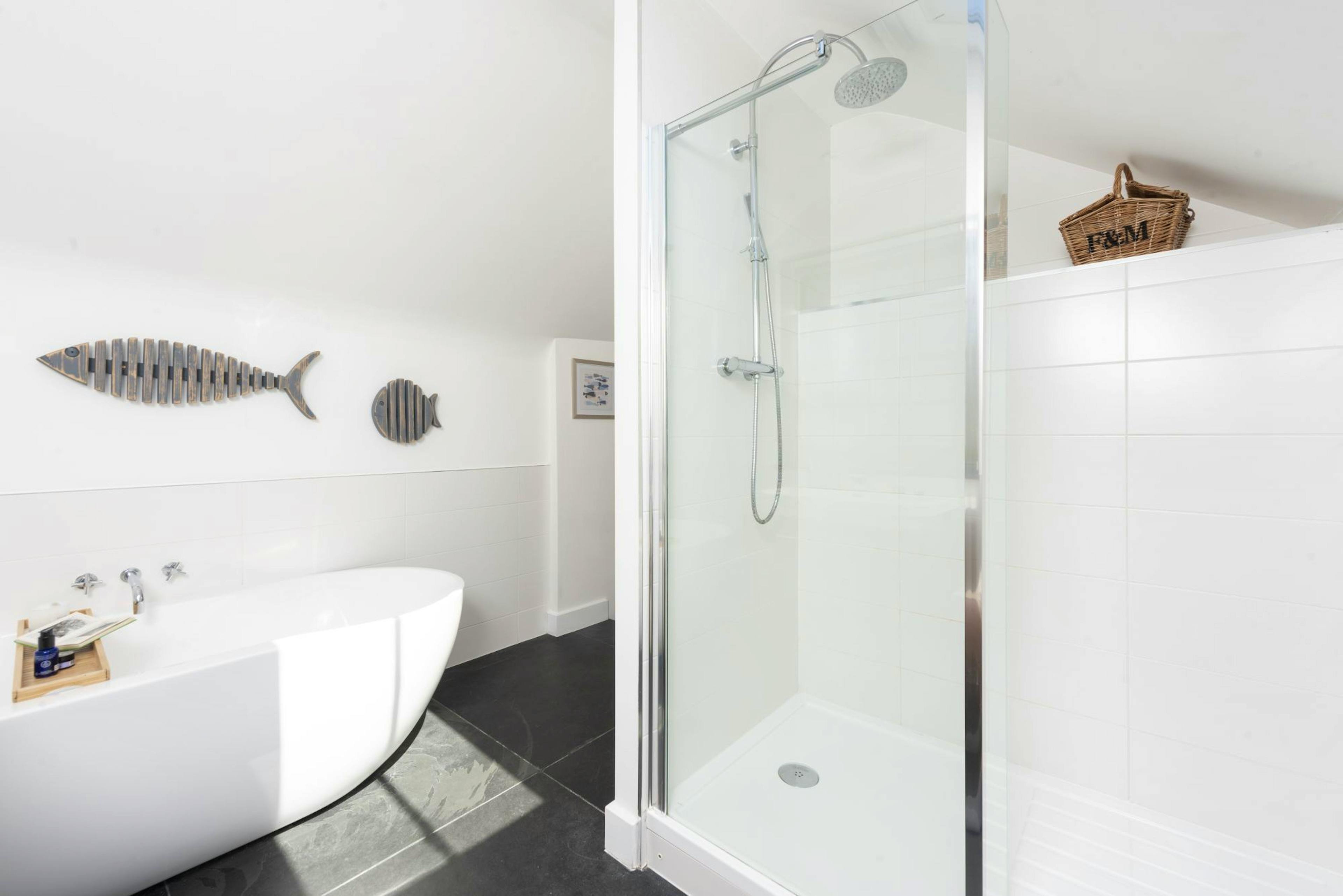 The first floor includes a shower room and a fabulous family bathroom with a free-standing bathtub.