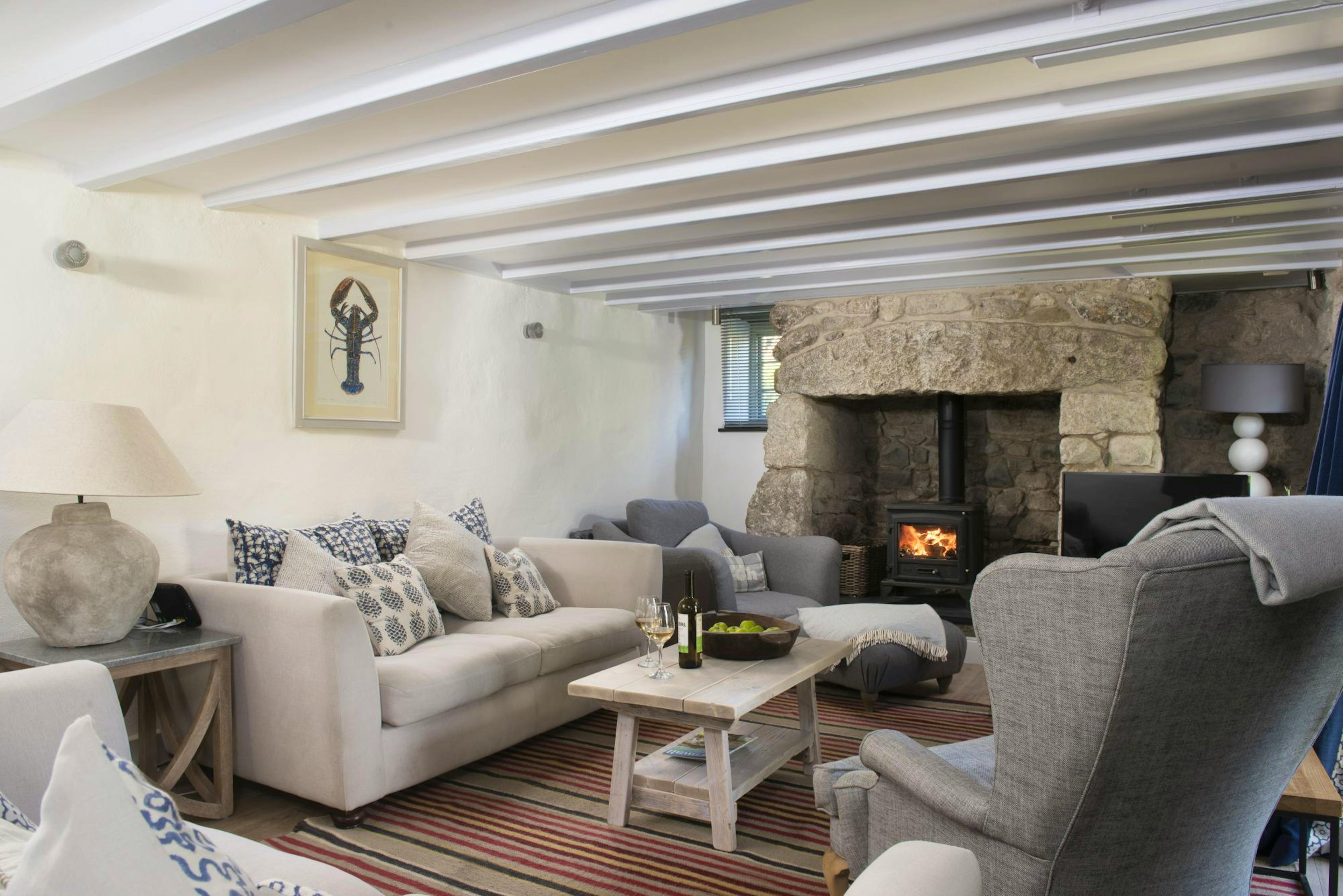Elegant, spacious and beautifully equipped, The Fairings is a refurbished grade II listed cottage that settles in a quiet corner of St Ives just 15 minutes’ walk from the town’s centre. Amongst the home’s many assets are a sumptuous living room with huge granite inglenook fireplace and wood-burner, an open-plan kitchen/diner with slate flagstone flooring and full width bi-fold doors and a large and lush garden with two paved sun terraces - all of which create the perfect place for glamorous gatherings and carefree multi-generational family holidays. Set over two floors, guests can pick from four tastefully appointed bedrooms, all of which are light and airy with comfortable beds and gorgeous furnishings. A lovely twin lies on the first floor along with a shower room, while the remaining bedrooms which include a second twin, a king and the master en-suite can be found on the first floor, together with a fabulous family bathroom and its free-standing bathtub. The sociable open-plan kitchen/diner with its inviting snug has exposed granite walls and garden views so you can cook, eat and unwind in complete comfort and glass doors leading out to the terrace and gardens make it the perfect space for indoor/outdoor entertainment. Ideal for relishing this beautiful slice of the Cornish coastline, holidays at The Fairings centre around the coast. The South West Coast Path is just a 10-minute walk from the property, while Porthmeor Beach, the harbour and town centre are 20-minutes' walk. St Ives bustles with many lovely independent shops and galleries making it perfect for a day of exploring and a fabulous foodie scene with a focus on local produce, means you can enjoy a delicious meal out at places like Source Kitchen and The Balcony Bar & Kitchen. Porthminster Beach is under 10 minutes’ drive (or less than half an hour is you choose to ditch the car during your stay) and the pretty streets of St Ives with its galleries, independent shops, restaurants and harbour are a 15-minute walk. The aquamarine waters and golden sandy beach at Carbis Bay are 10 minutes by car, along with a clutch of fashionable eateries, cocktail lounges and C Spa at the Carbis Bay Hotel.