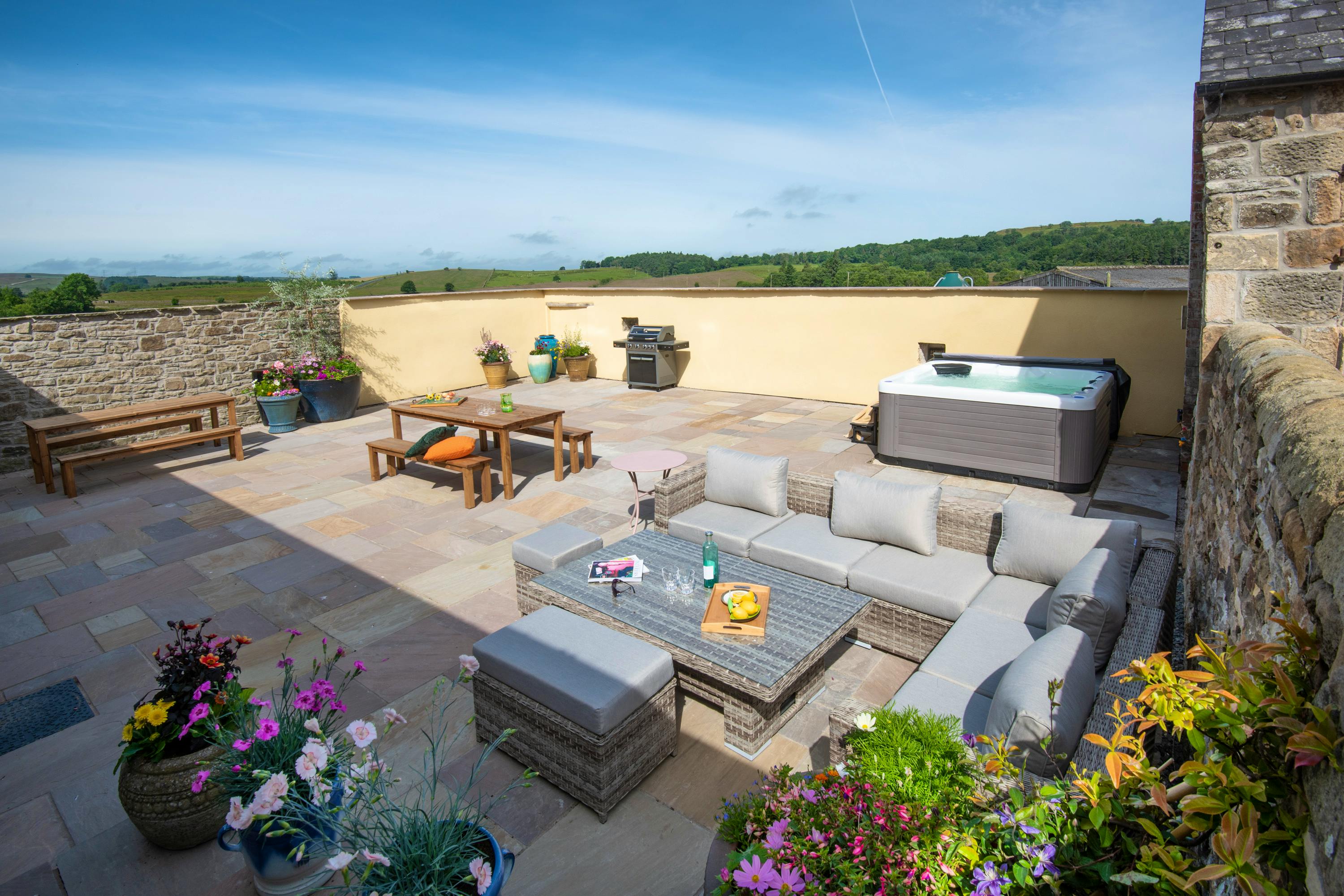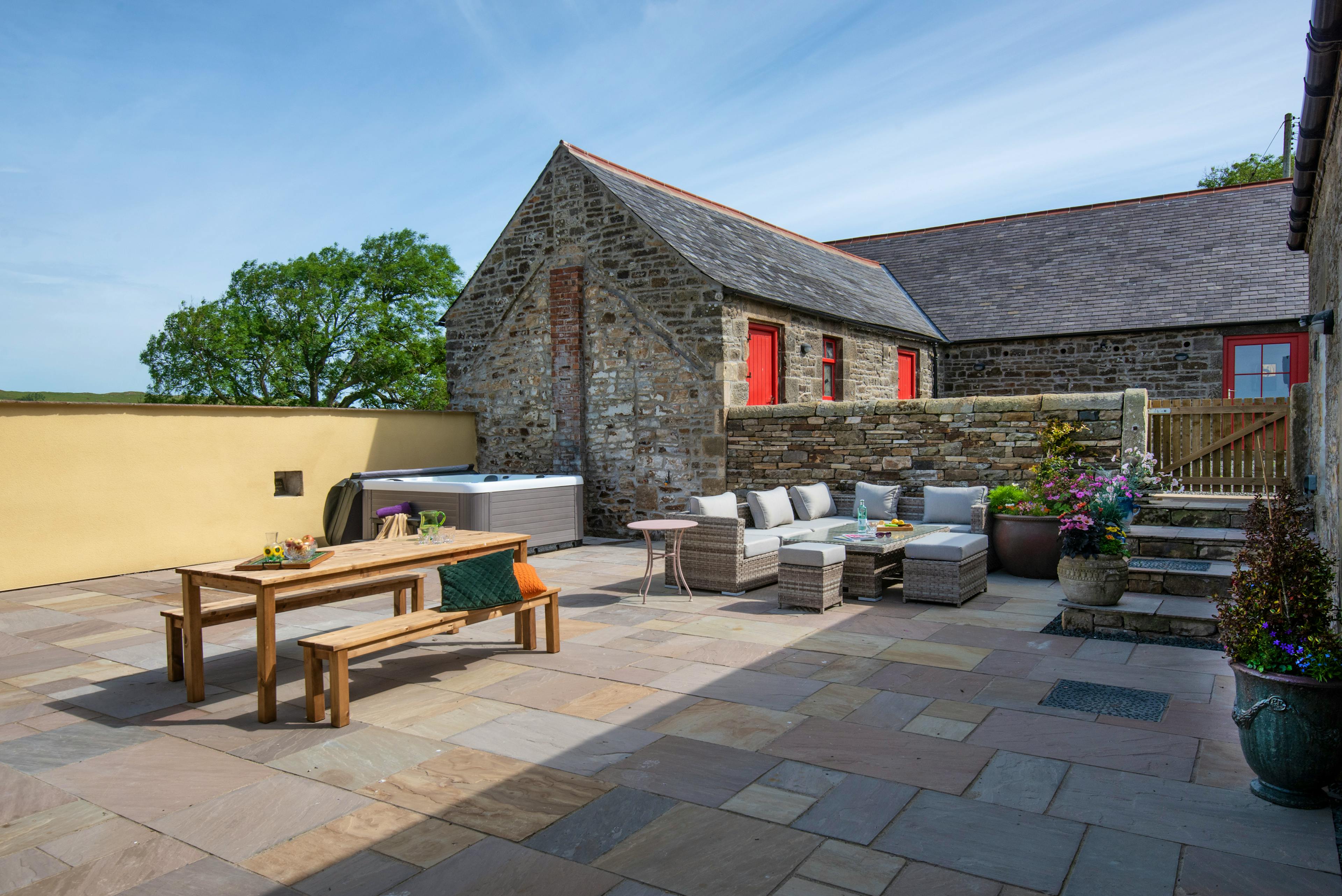 Spacious holiday home with a hot tub and party barn near Hadrian’s Wall in Northumberland.