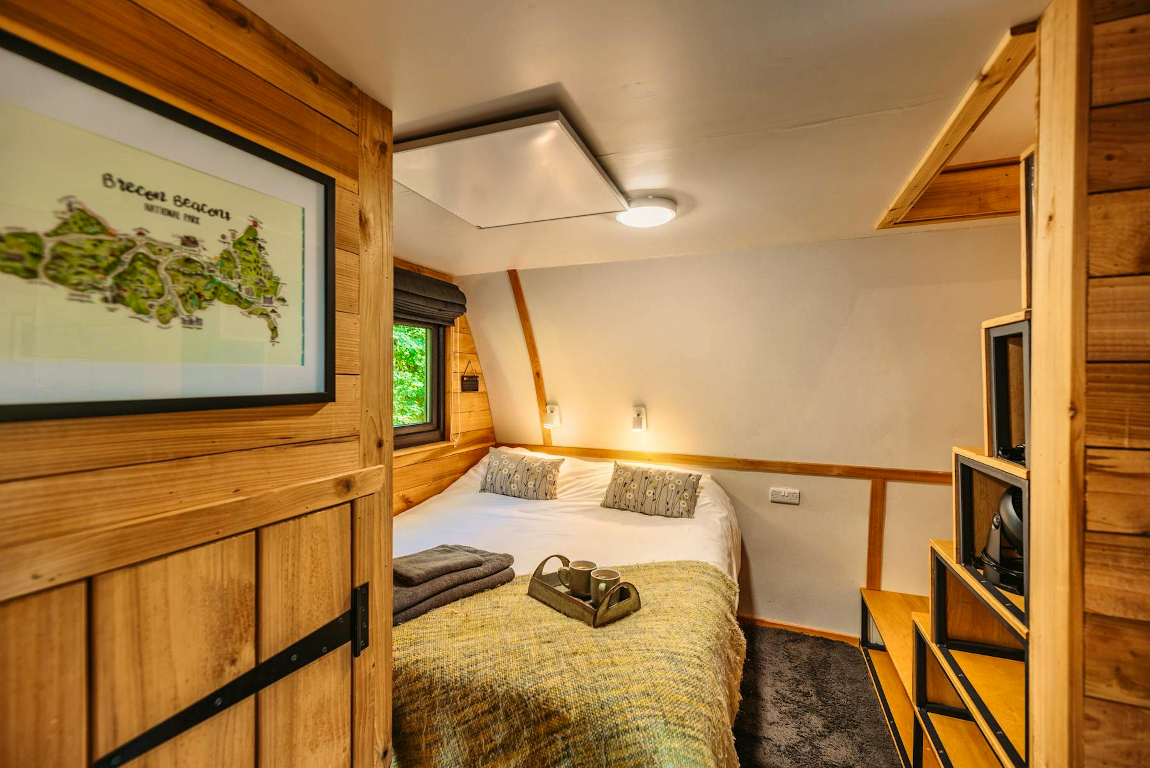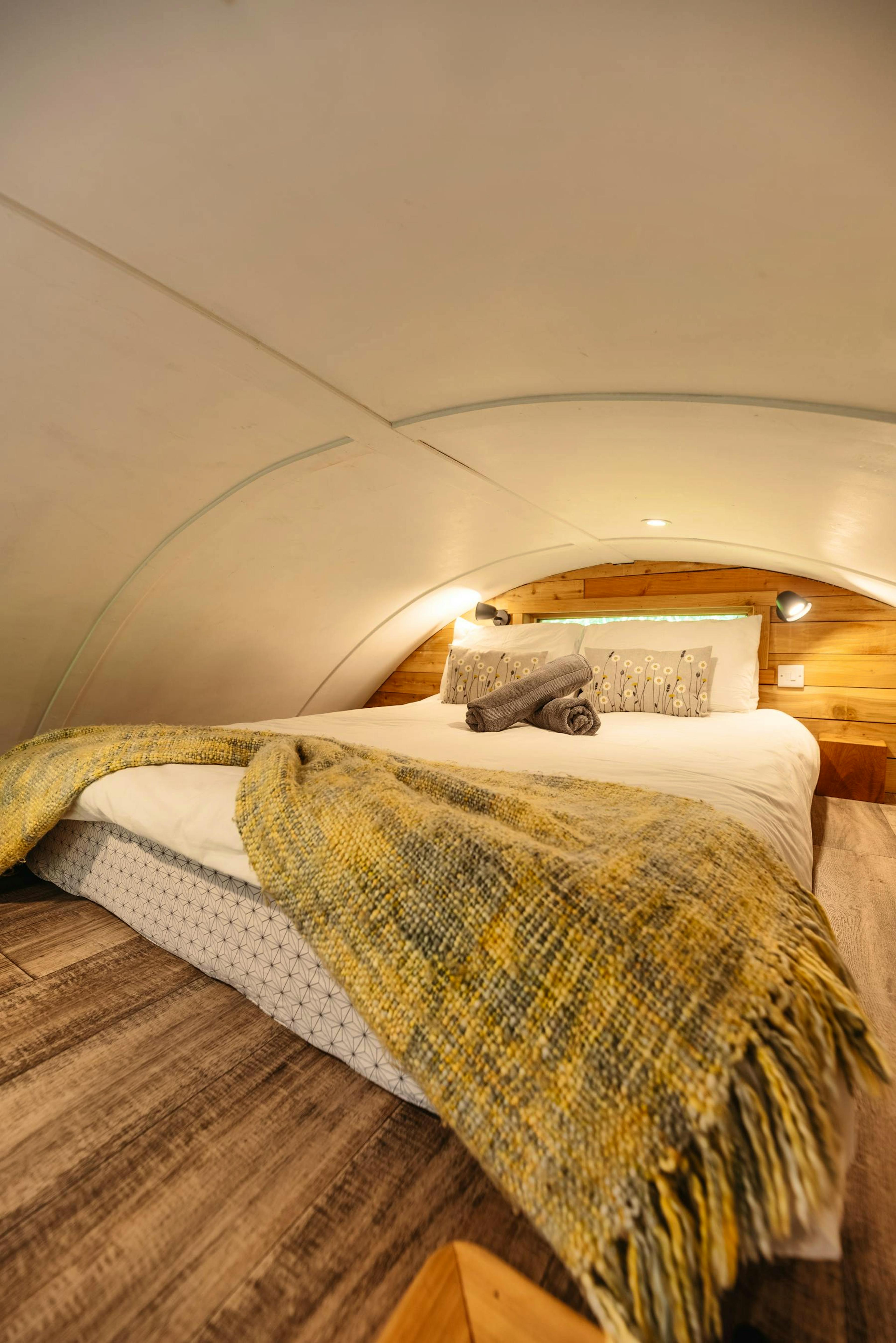 Each cabin sleeps up to four guests, with a plush king size bed on the ground floor and another tucked away in a mezzanine loft.