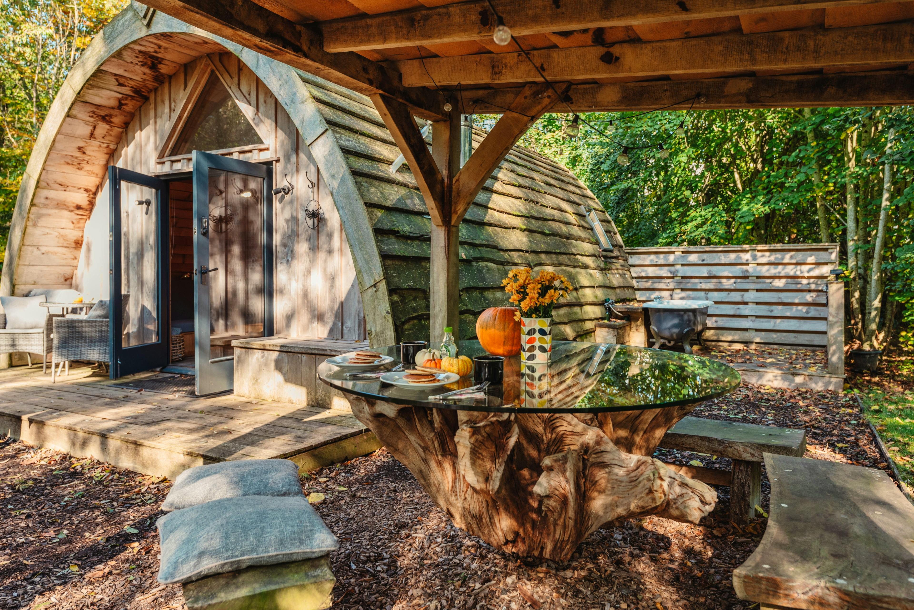 Each cabin has its own alfresco dining area, perfect for sociable summer lunches. Plus, a BBQ is available for those who love to grill up local produce and enjoy a feast in the fresh country air.