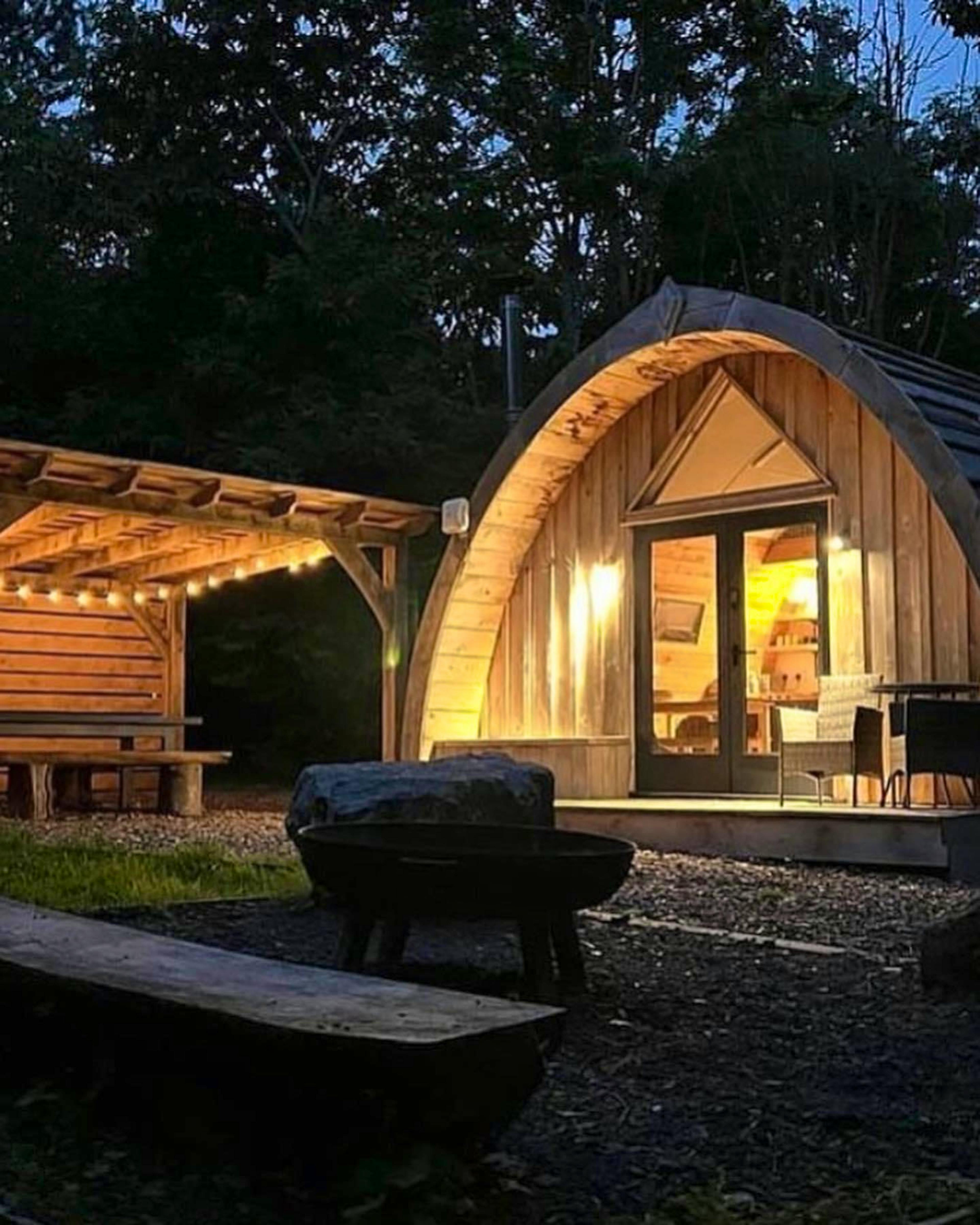 If you’re looking for a fabulous group glamping retreat in the striking Brecon Beacons National Park, then Ffynnonau Woodland Cabins is the place for you. Bring your loved ones along and book these four bespoke and cosy cabins that sit in their own tranquil slice of a woodland estate. If you book the whole site it will sleep a total of 16 guests, making it perfect for your next family get-together or friends reunion. After dropping your bags off in your cabin, while away the day together lounging in the sunshine or warming toes in front of the firepit - each cabin has its own firepit for staying cosy and warm. Outside, each cabin has its own hammock for afternoon snoozes, and alfresco dining areas for social lunches in the summer sunshine. And, to top it off, each lodge also has an outdoor bathtub for indulgent soaks. As you enter each cabin, you’ll find a bespoke living space that features a sofa at one end sitting next to huge glass doors with a Smart TV connected to Netflix. The glass doors perfectly frame the woodland views, and on hot days you can swing them open letting the outside in. At the other end of the cabin sits a kitchen area, offering all the amenities you’ll need to prepare delicious feasts for your group. You also have the opportunity to make use of a BBQ grill on your firepit during your stay, should you wish to grill up some delicious local produce. Each of the four cabins sleeps up to four guests with a super-comfy king size bed on the ground floor, and a second king size mattress tucked away up some steps in the mezzanine. At Ffynnonau Woodland Cabins, adventure and relaxation go hand in hand. Spend your evenings gathered around the fire pit, toasting marshmallows under a blanket of stars with your entire group. By day, lose yourself in the wild beauty of the Brecon Beacons - discover hidden waterfalls, roam rolling hills or take on the challenge of a mountain hike. For those who prefer a gentler pace, scenic horse rides and tranquil woodland walks await. Families will love exploring nearby Brecon, home to the ever-popular Cantref Adventure Farm and the awe-inspiring National Showcaves Centre for Wales - perfect for little explorers. And if a round of golf is more your style, you’re just five minutes from the pristine fairways of Cradoc and Brecon Golf Clubs. Whether you're here for adventure or a peaceful escape, this enchanting woodland retreat has it all.