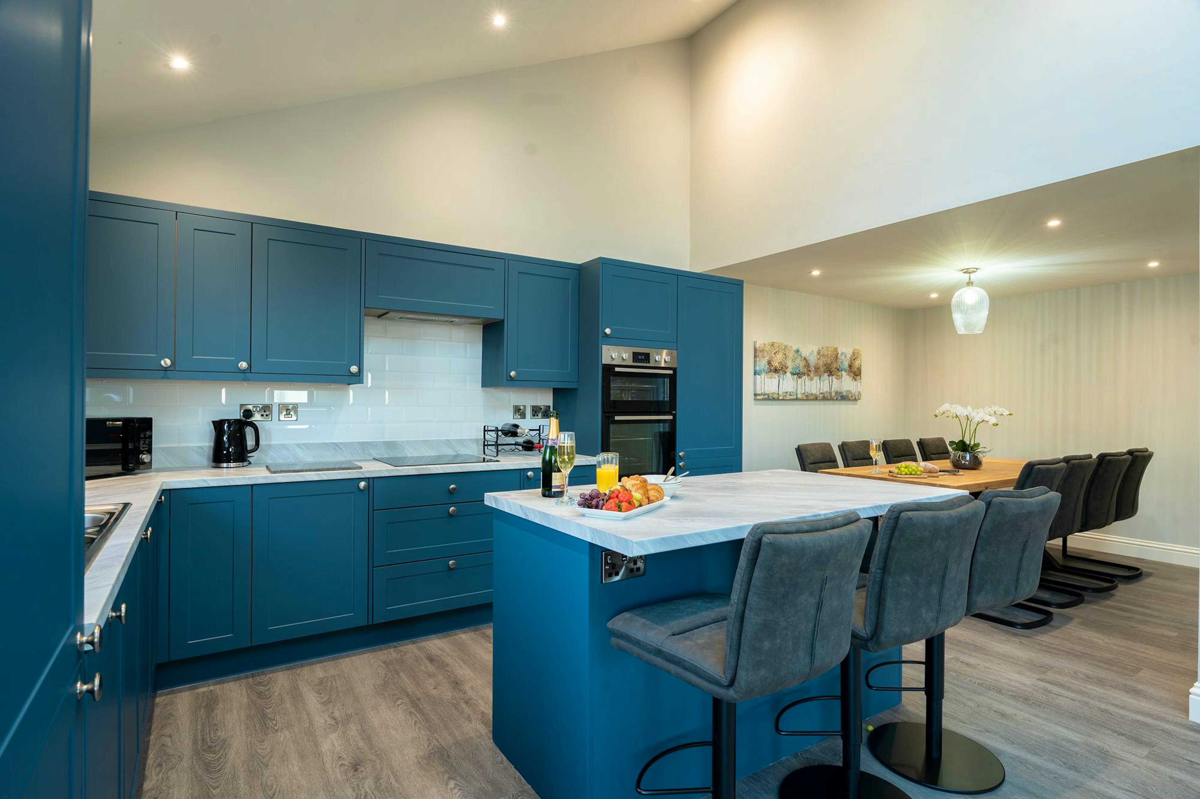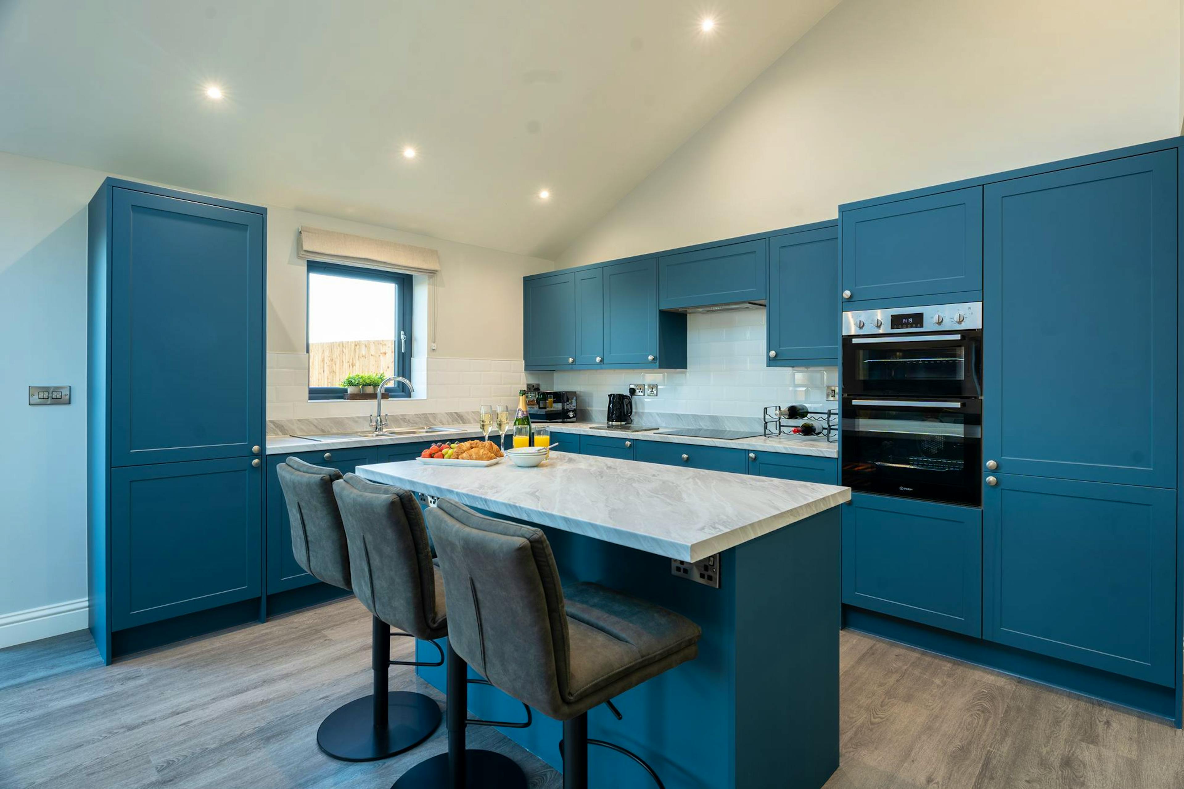 Newly developed for 2026, Field Cottage is a warm and beautifully designed countryside escape where relaxed luxury meets easy-going group living. Sleeping up to eight guests and welcoming dogs, this contemporary barn conversion is all about bringing people together, whether that’s soaking in the private jacuzzi-style hot tub, challenging each other in the games room or gathering around the dining table after a day exploring Yorkshire. Step inside and you’re welcomed by a light-filled open-plan living, kitchen and dining space designed for sociable stays. Expansive windows and a skylight flood the room with natural light by day, while evenings are spent curled up on deep sofas in front of the Smart TV or chatting long into the night. The well-equipped kitchen has everything you need for unhurried group meals, including a large fridge freezer, separate drinks fridge, dishwasher and a generous breakfast bar, with patio doors opening straight out to the garden and hot tub area. Tucked away from the main living space is a dedicated games room, complete with table football, a darts board, comfy seating and another Smart TV, making it a brilliant hideaway for kids and grown-ups alike. There’s also a handy utility room with washer, dryer and WC just off the entrance. Field Cottage offers four generous bedrooms designed with comfort firmly in mind. Upstairs you’ll find three beautifully styled rooms with countryside views, two with super-king beds that can be arranged as twins, one of which has an ensuite shower room, plus a king size bedroom and a main family bathroom. On the ground floor, a spacious super-king bedroom with ensuite shower room provides easy access and is well suited to guests with reduced mobility. Outside, a fully enclosed garden sits between the cottage and the driveway, offering far-reaching views over open fields. The private hot tub is tucked discreetly to the side of the house, creating a peaceful spot to unwind, while an alfresco dining table, chairs and charcoal BBQ set the scene for relaxed outdoor meals. New landscaping and outdoor seating will complete the space for the 2026 season. Beyond the cottage, the surrounding area is perfect for easy days out. The historic city of Ripon is just six miles away, with its magnificent cathedral, markets and independent shops. Masham, home to the famous Black Sheep Brewery, is ideal for tastings and laid-back lunches, while Thirsk offers charming streets, cafés and rail links. For larger gatherings, Field Cottage can also be booked alongside its neighbour Wheatsheaf Barn, together forming The Big Green Barn and sleeping up to 16 guests.