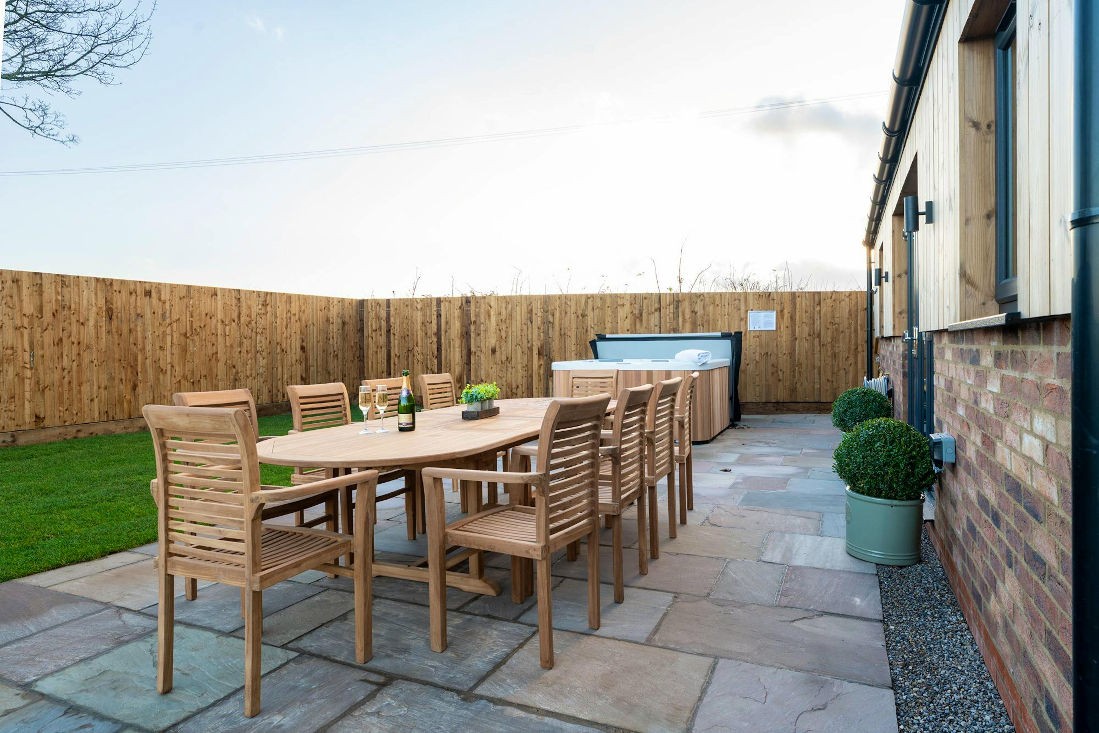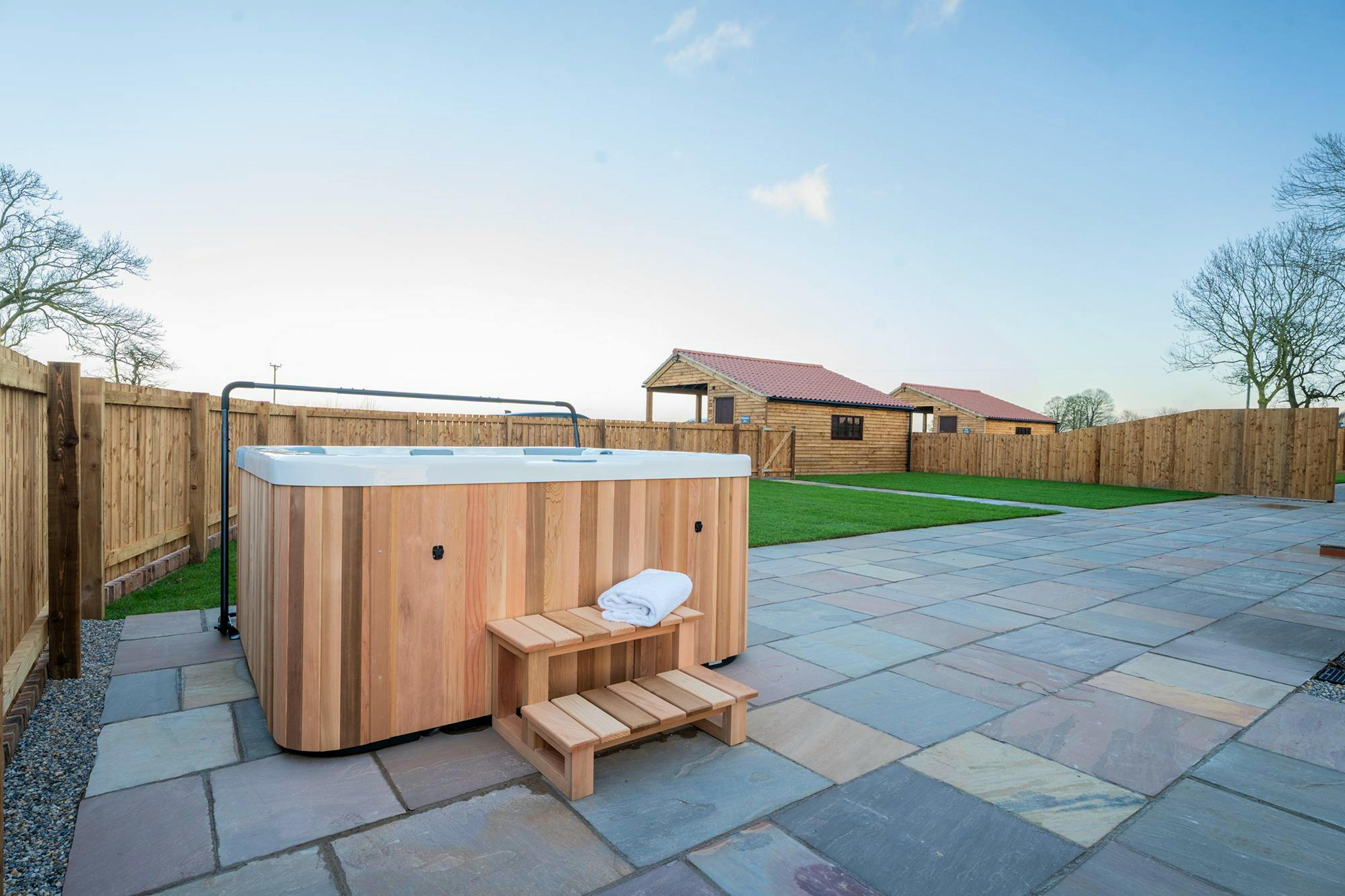 The garden is fully enclosed and the hot tub towels and robes are provided.