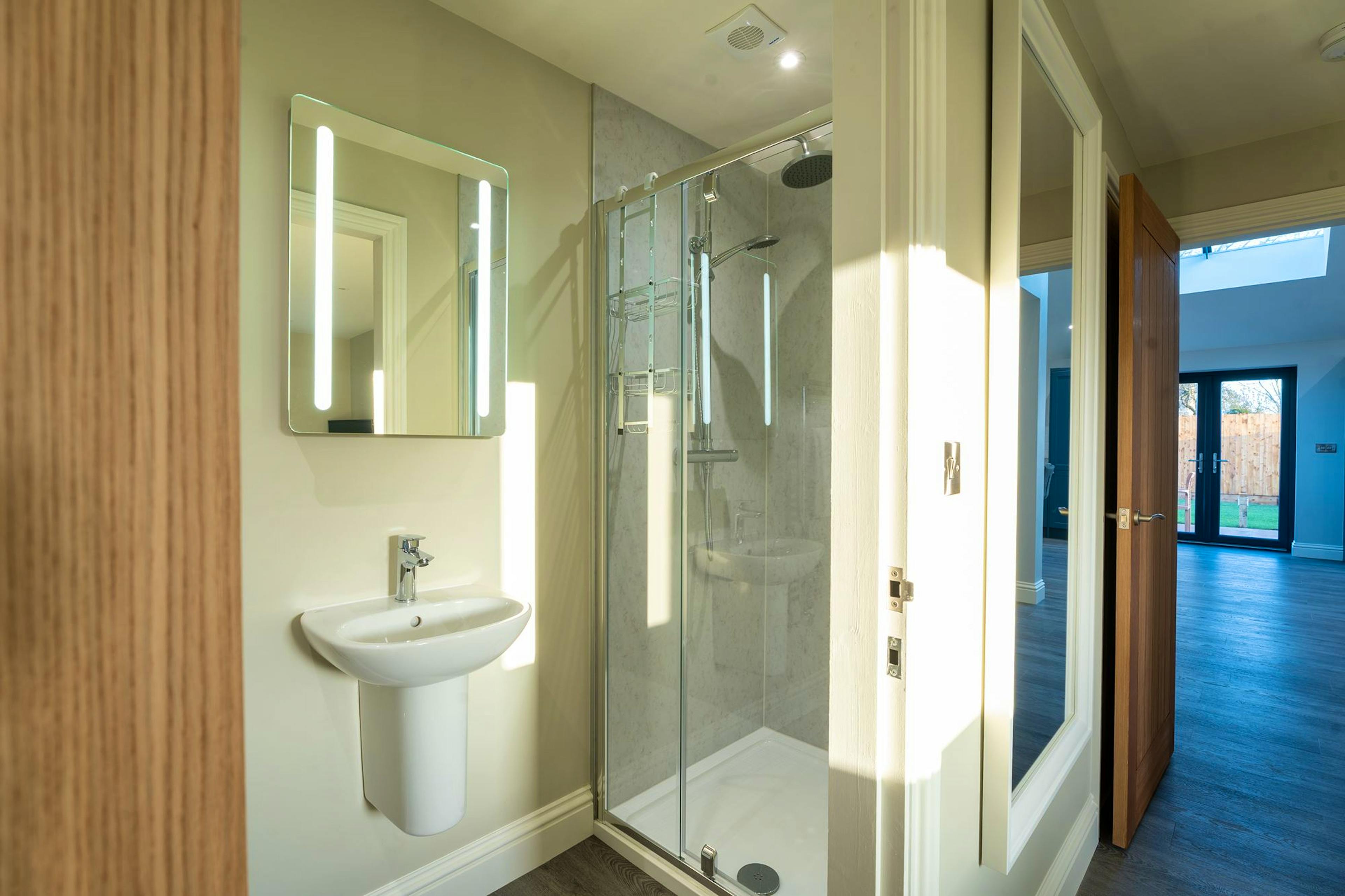Four spacious bedrooms including a ground-floor super-king room with ensuite shower for easy access.