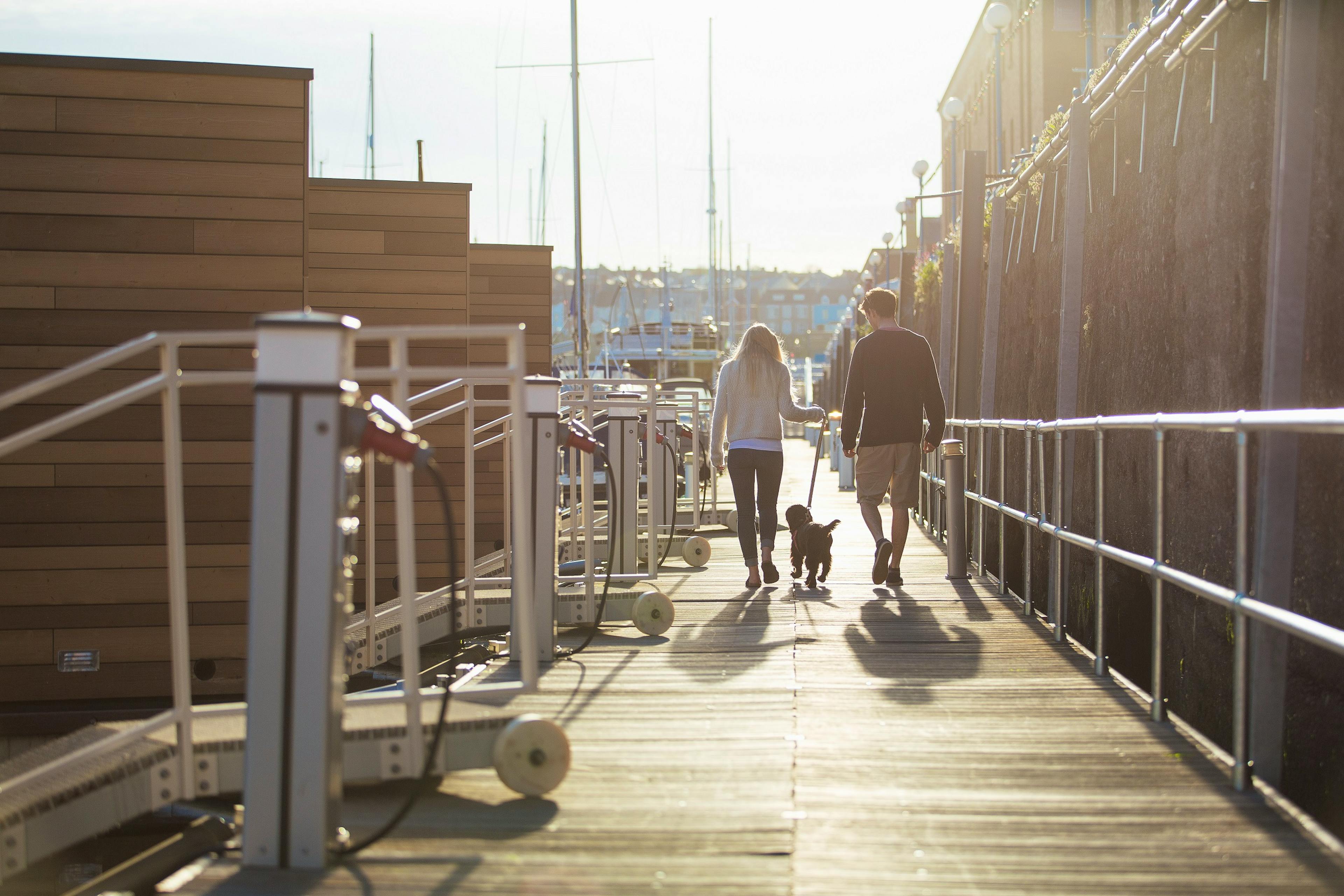 Unique and romantic floating cabins in Milford Marina, with stunning aquatic views and high-end furnishings.
