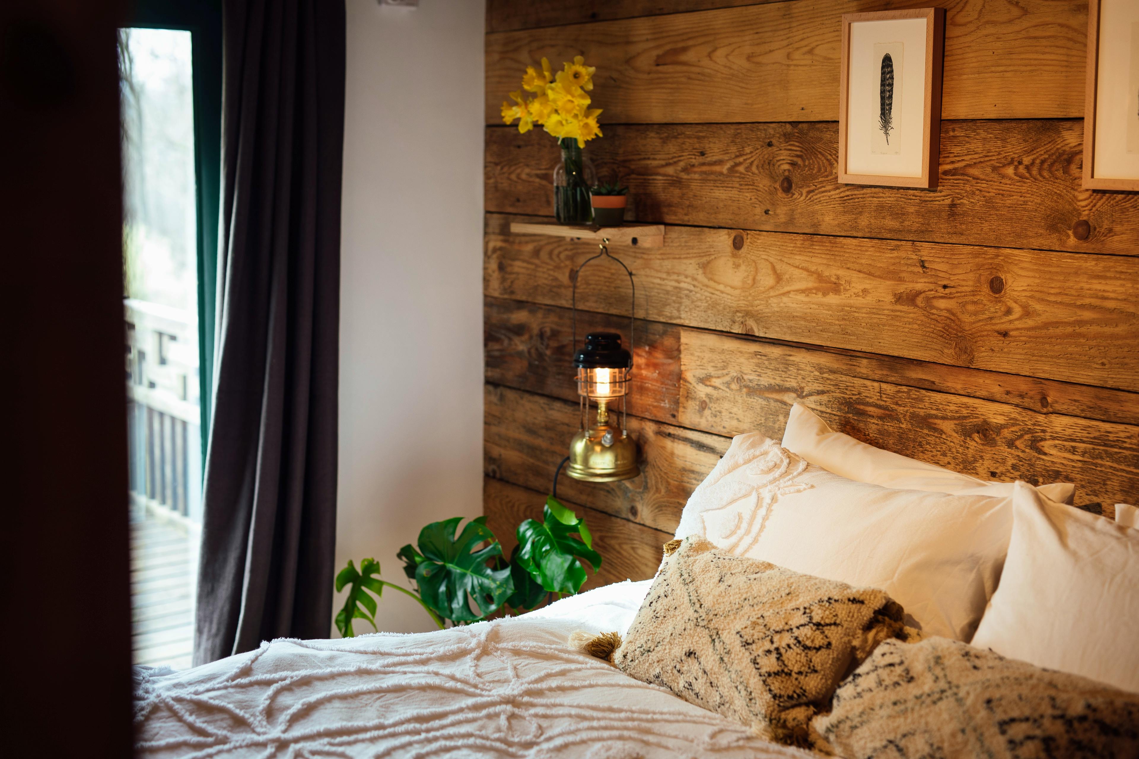 Beautiful interiors with reclaimed materials, a wood-burning stove and a super king size bed.