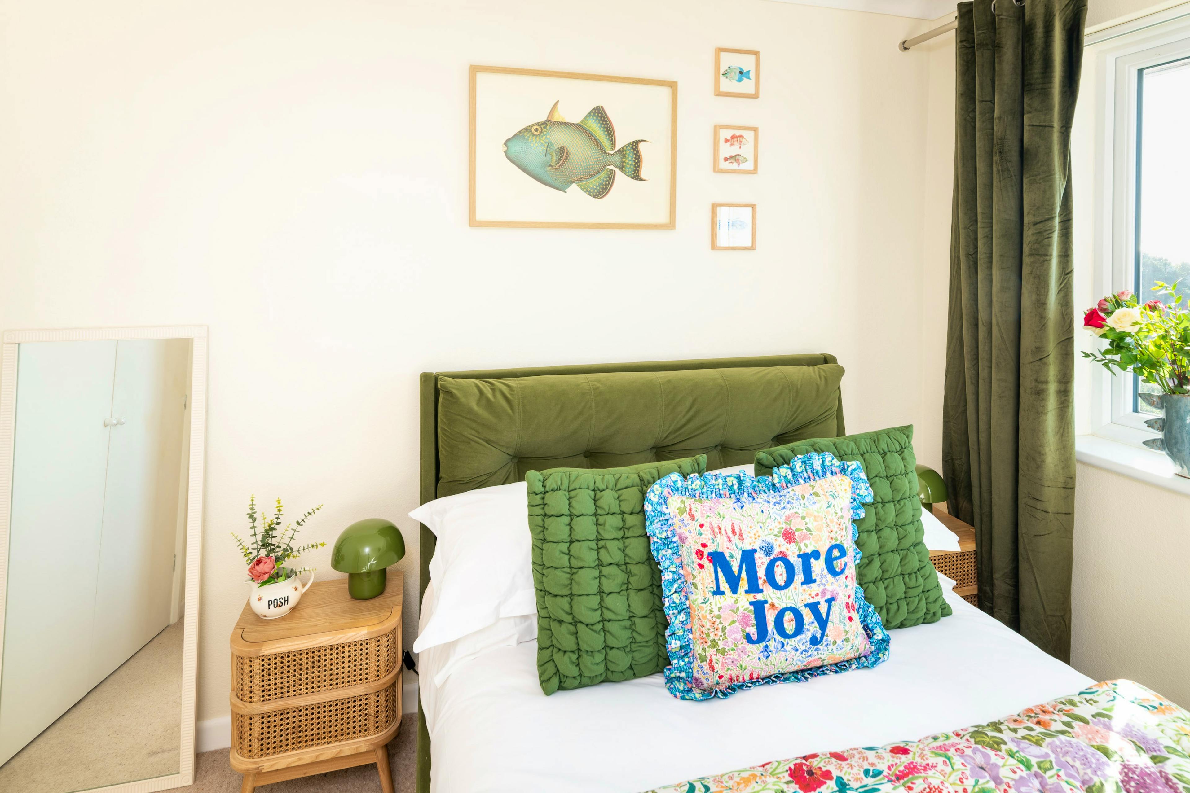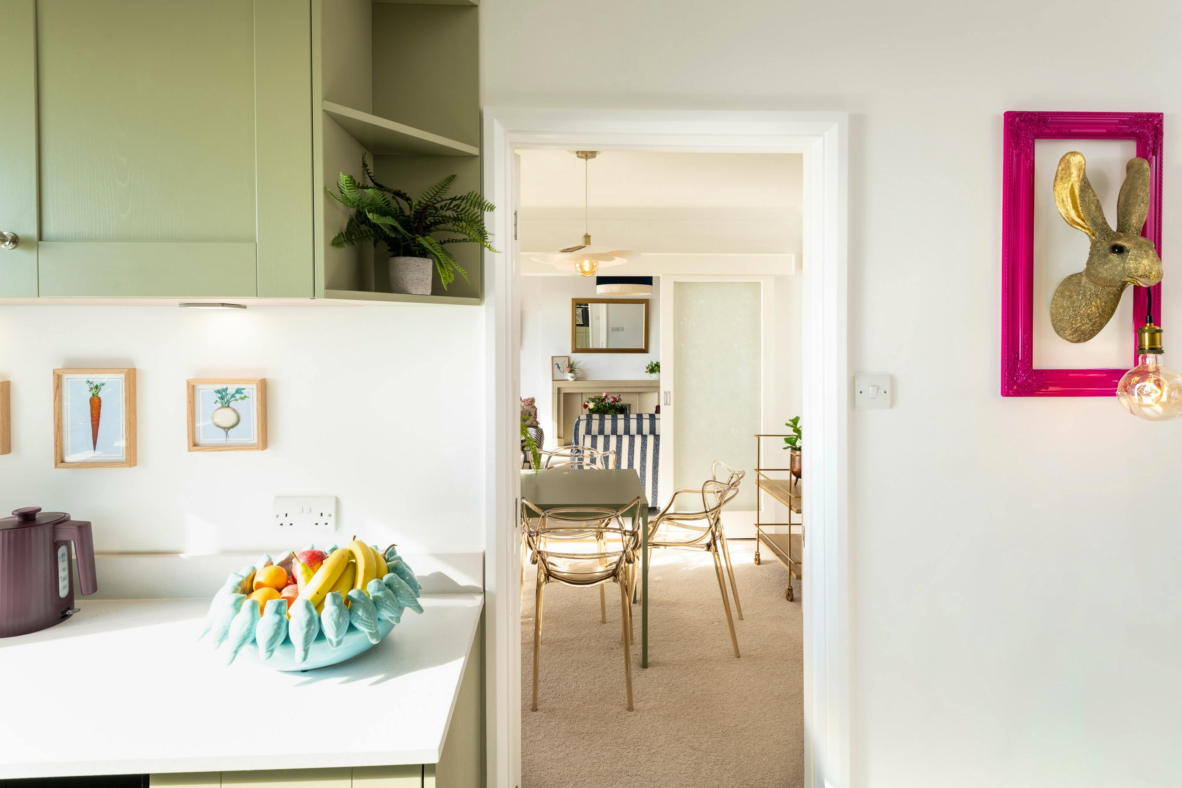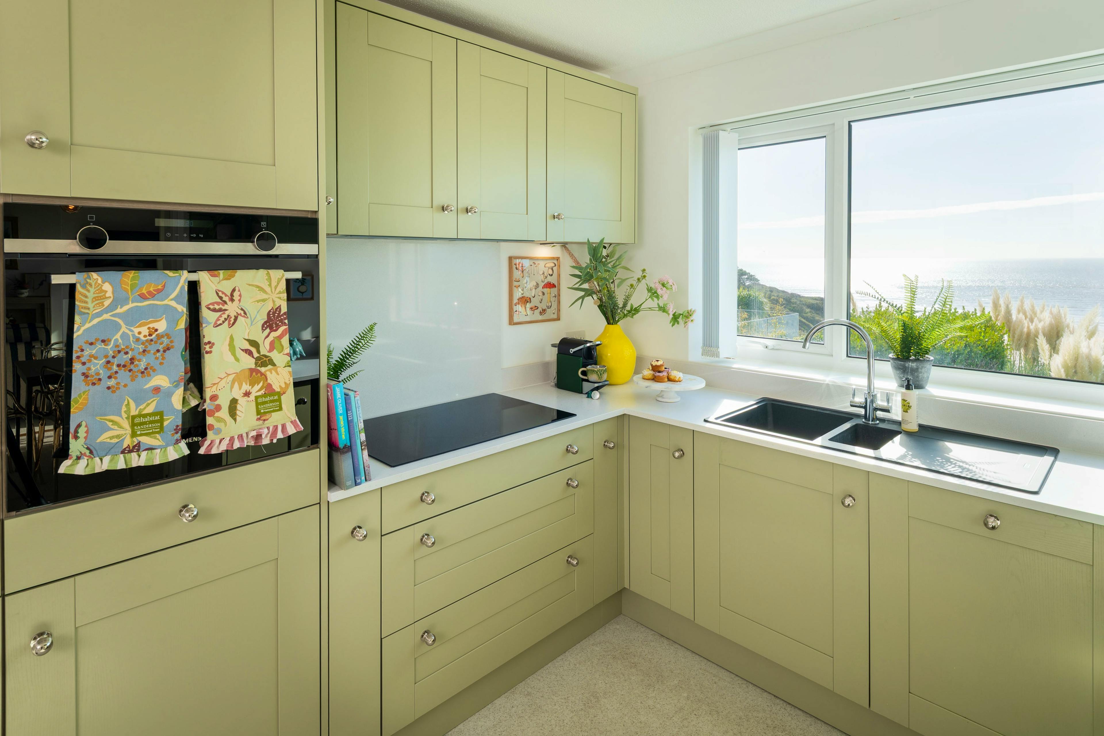Enjoy cooking and gathering in the beautifully styled sage-green kitchen and dining area, perfectly set up for long, leisurely meals.