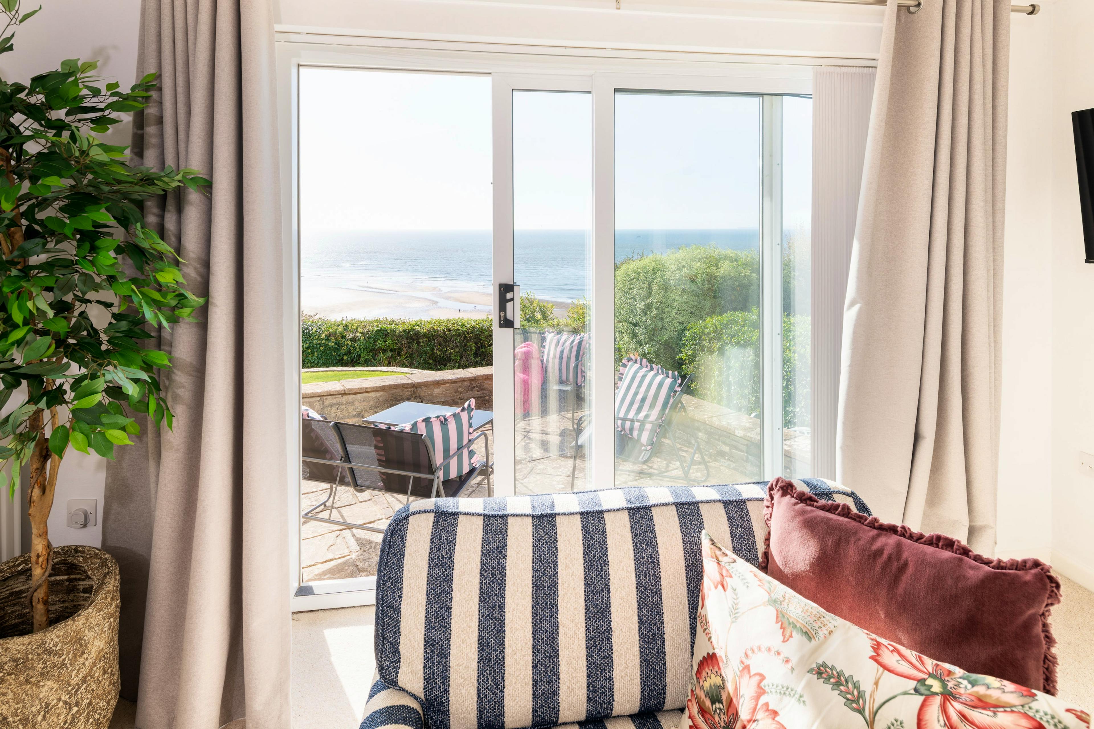 Relax in bright, airy living spaces where full-width windows bring the beach, water and big Devon skies straight into the home.