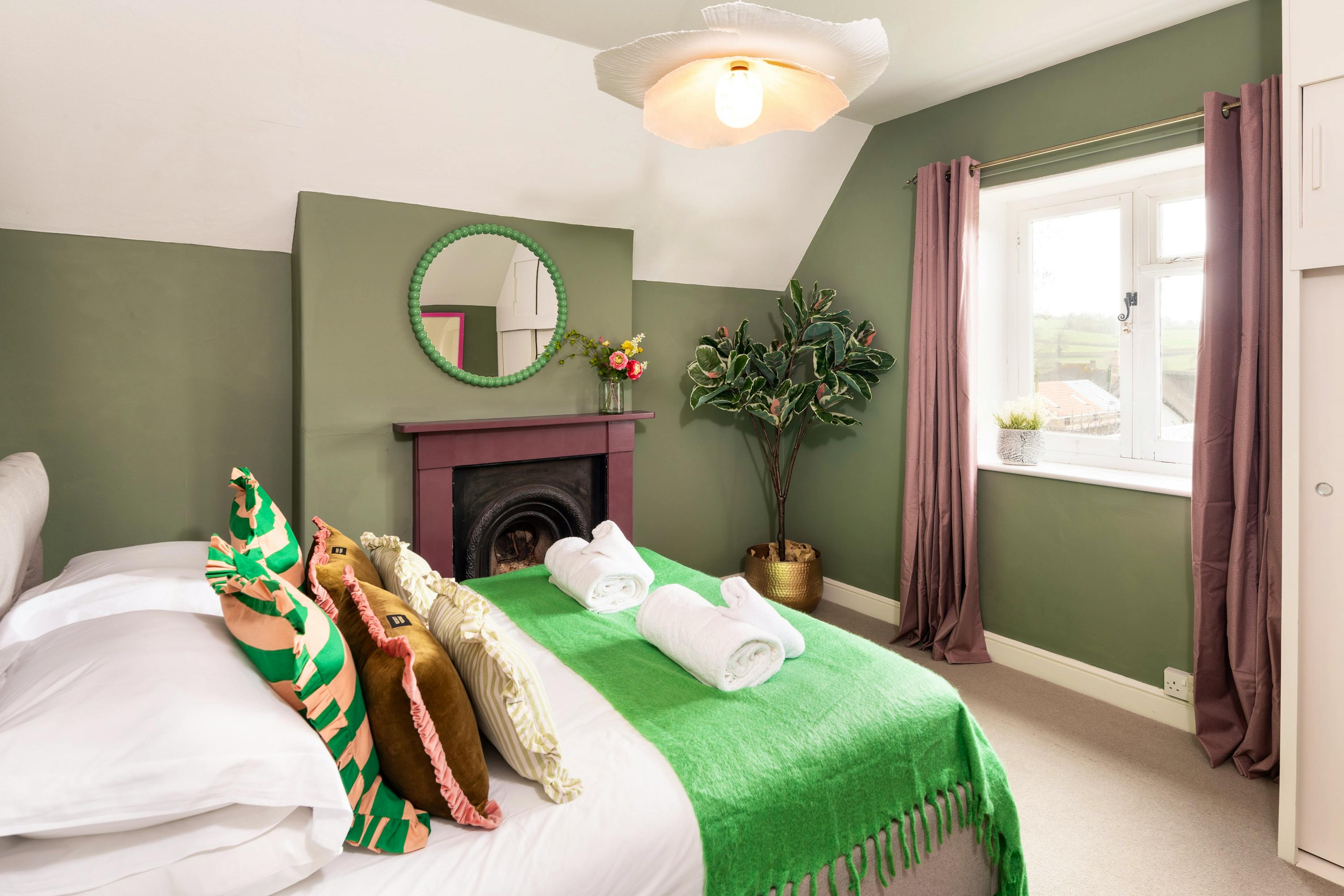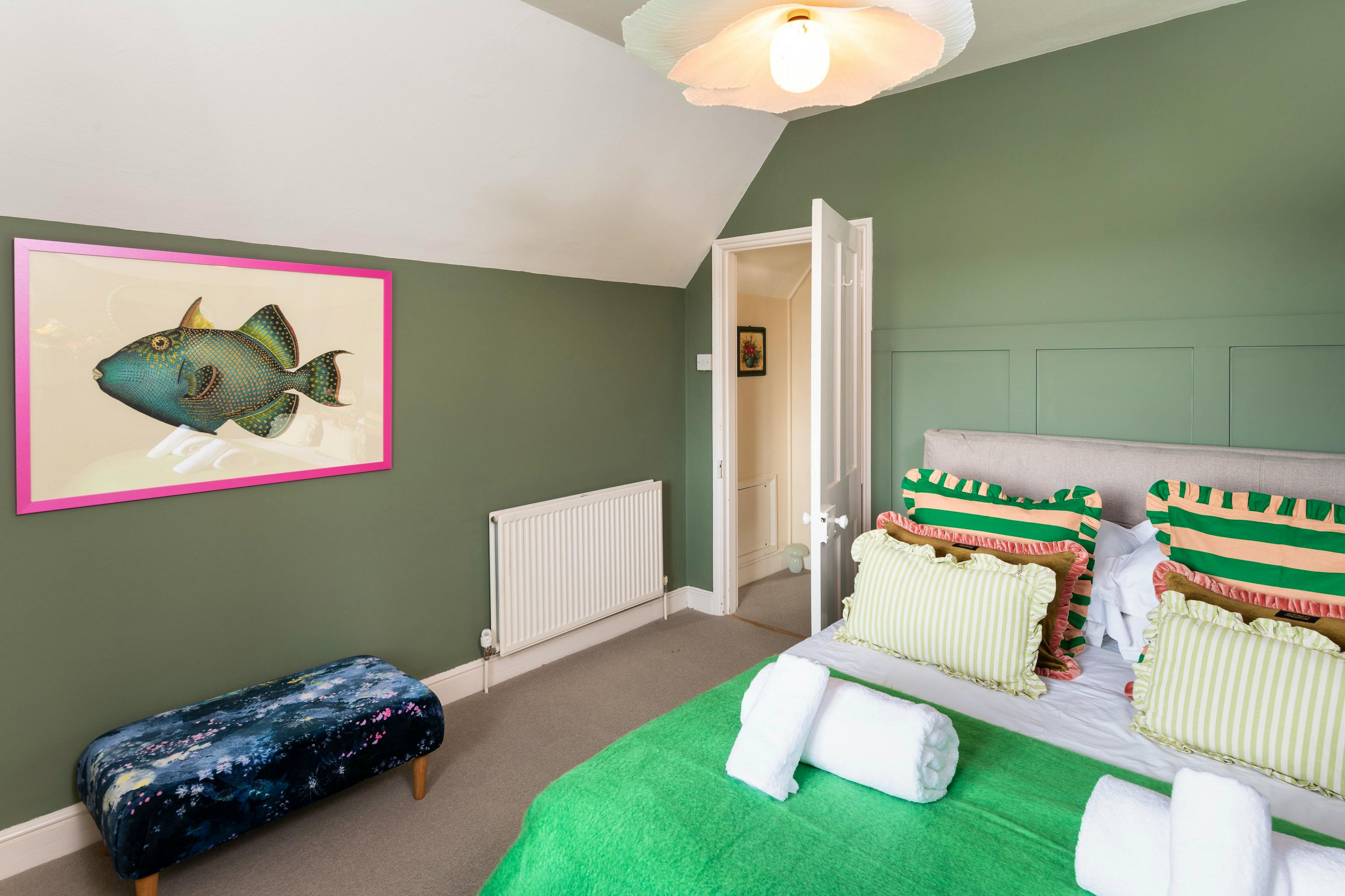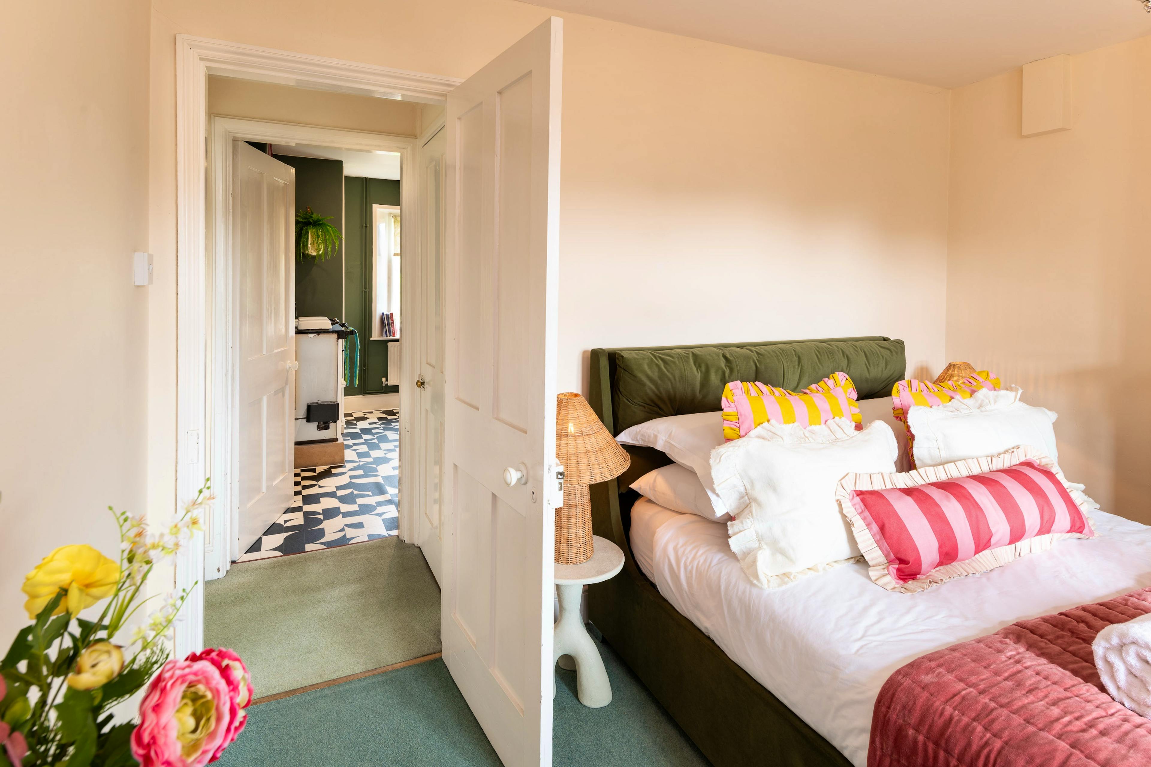 Cook in style in the playful sage green kitchen with its bold tile-effect floor and enjoy everything from quick breakfasts to cosy suppers.