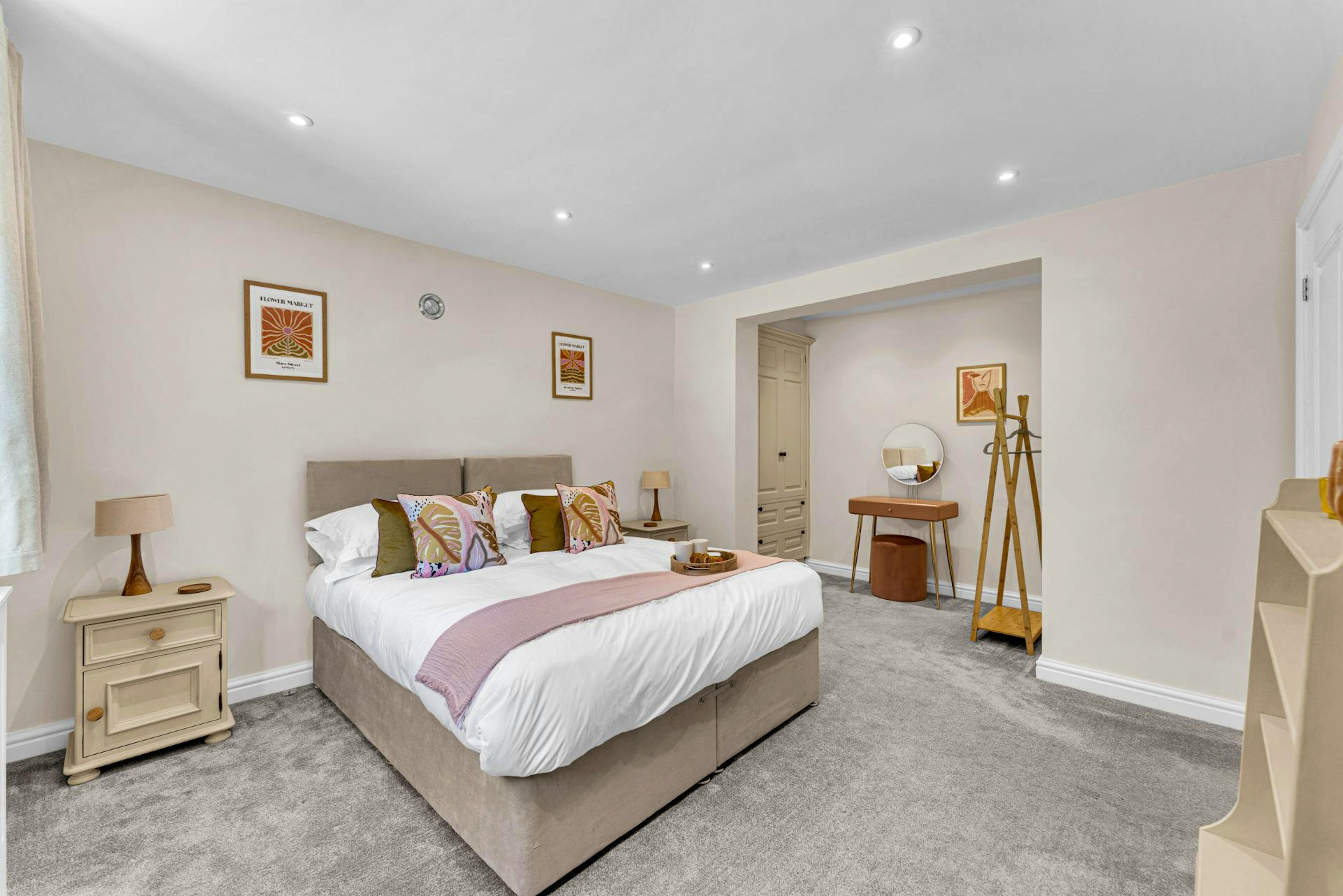 Master suite with king-size bed, dressing room and ensuite, plus flexible sleeping options.