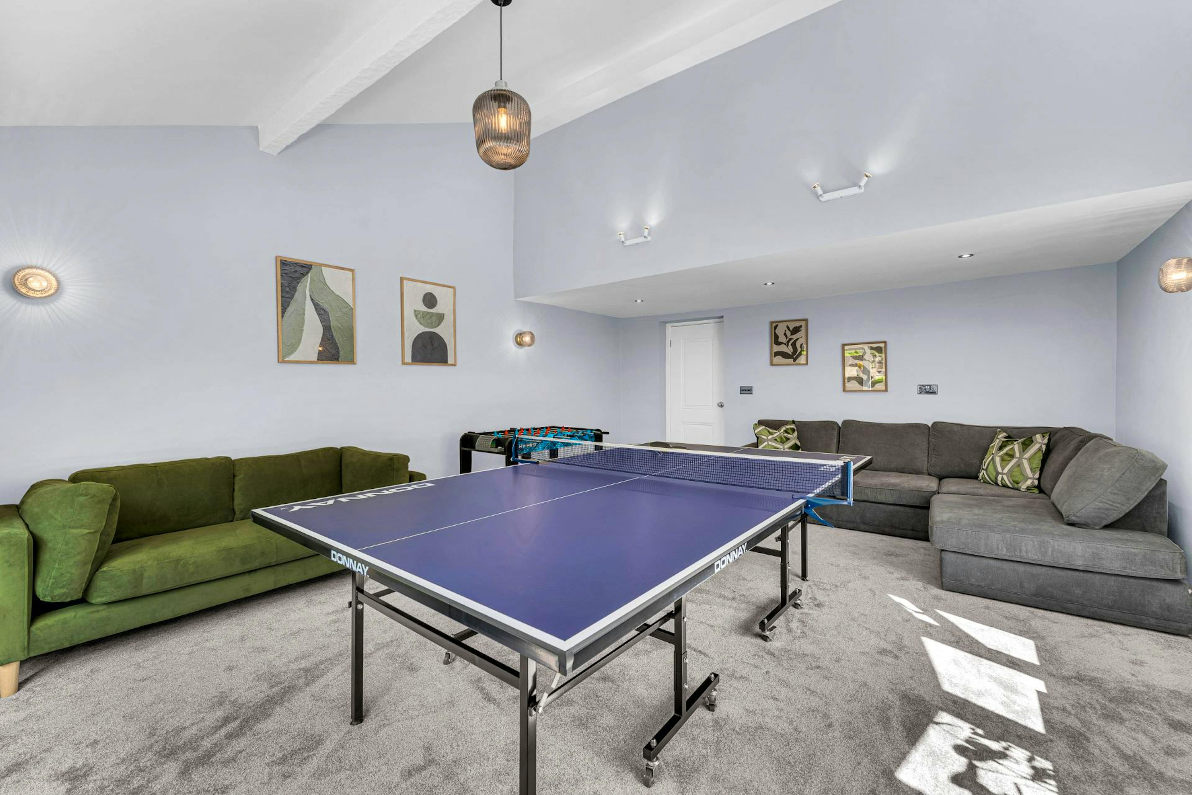 Entertainment for all ages with a games room featuring table tennis, table football and board games.