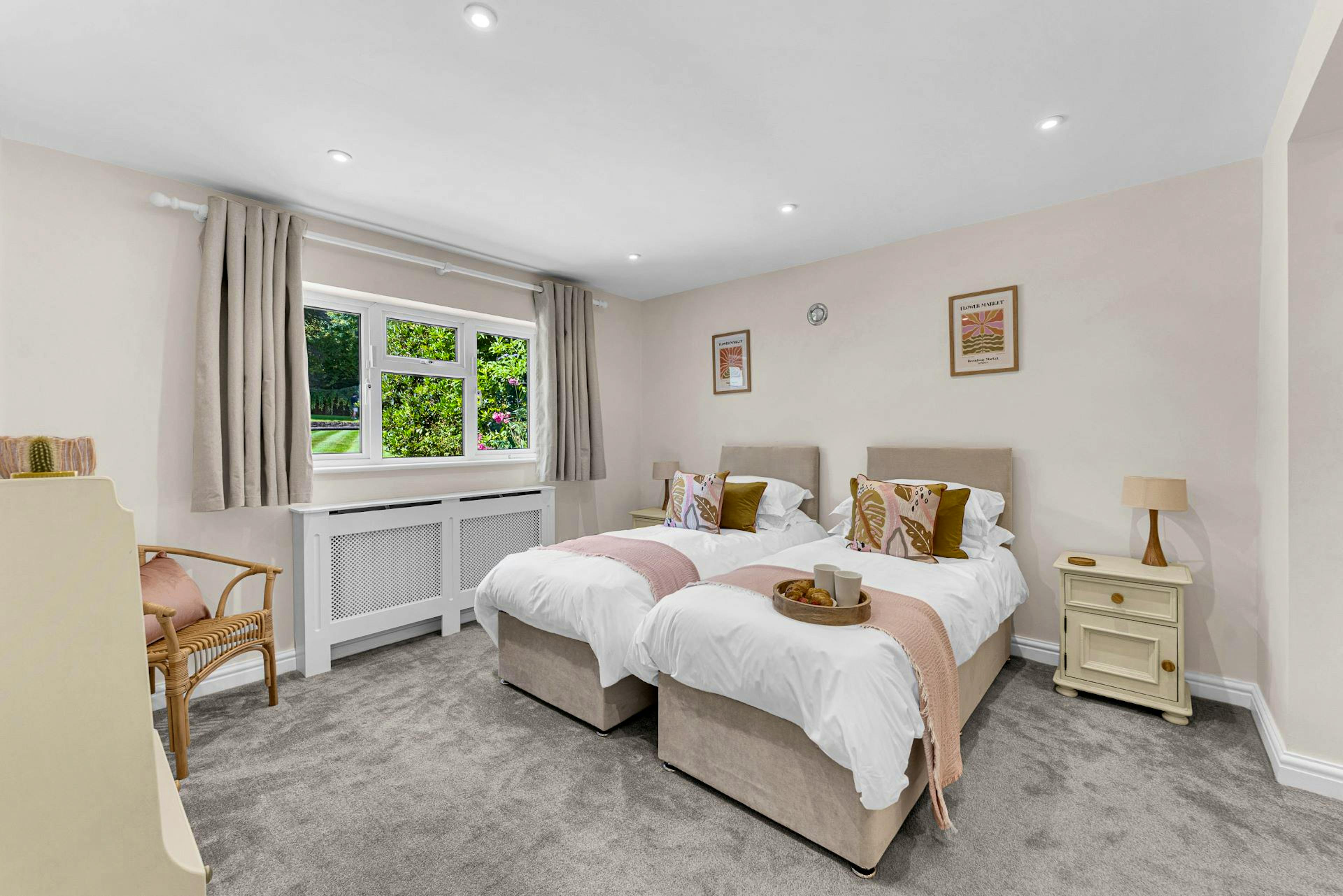 Blending rustic character with contemporary design, Garden Cottage is a stunning five-bedroom home that invites families and groups to gather in comfort and style. With a vast open-plan living space, beautifully landscaped gardens and a host of entertainment options, this spacious property makes the perfect base for holidays, reunions and special celebrations. Whether you’re relaxing in the wood-fired hot tub, playing games in the dedicated games room or dining together around the ten-seater table, every detail has been thoughtfully crafted to bring people together. Inside, natural light floods the entrance hall before opening into the heart of the home – a huge bespoke kitchen and living area. Equipped with three ovens, a Delonghi coffee machine, and a breakfast bar, it’s a dream for both casual cooks and serious foodies. After meals, choose from two lounge areas, one with views across the gardens and the other with a Smart TV and Netflix for cosy nights in. A handy utility room with American fridge/freezer and storage makes life easy after countryside walks with muddy boots or paws. The ground floor also features a flexible bedroom which can be set up as a twin or king, alongside a cloakroom. Upstairs, four further bedrooms continue the sense of luxury, all designed with sumptuous linens and soft furnishings. The master suite boasts a king-size bed, dressing room and ensuite shower, while the others include a king, a double and another flexible twin/king option. A sleek family bathroom and additional WC complete the layout, offering plenty of space for multi-generational groups. Entertainment is front and centre in the games room where you’ll find table tennis, table football and a selection of board games. Step outside and the magic continues in the extensive mature gardens, fully enclosed for safety and perfect for children and dogs. Here you’ll find a trampoline, garden games, rattan seating for sundowners, a 12-seater alfresco dining table and of course the wood-fired hot tub – a truly indulgent spot to unwind under the stars. Located in the charming village of Norley, the cottage is within easy reach of the local pub and shop, as well as the spectacular Delamere Forest just two miles away. Boutique shopping and dining await in Tarporley and Knutsford, while Chester offers a wealth of culture, history and entertainment. For walkers, the Sandstone Trail offers some of Cheshire’s most scenic countryside views, making this an ideal base for both relaxation and adventure.
