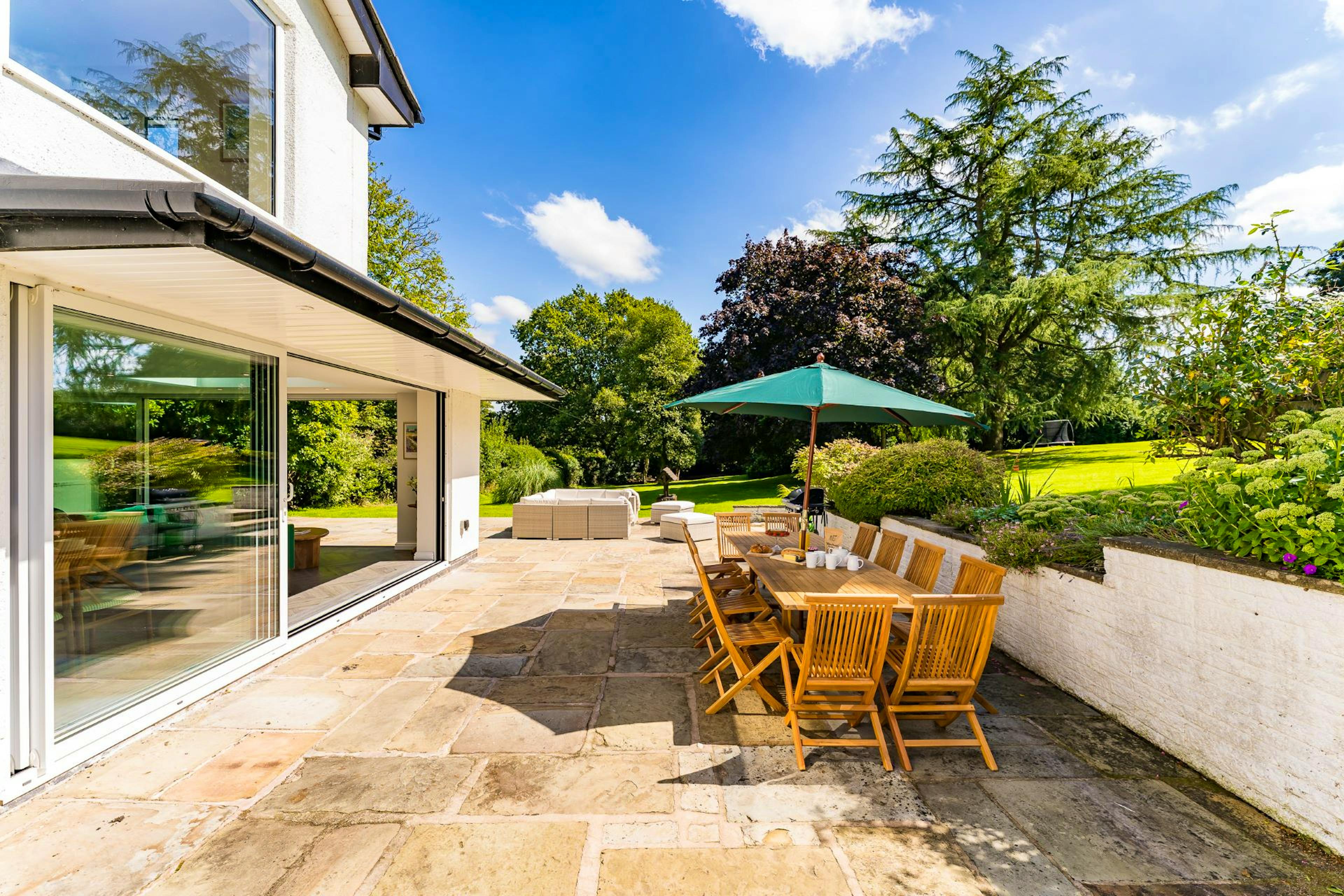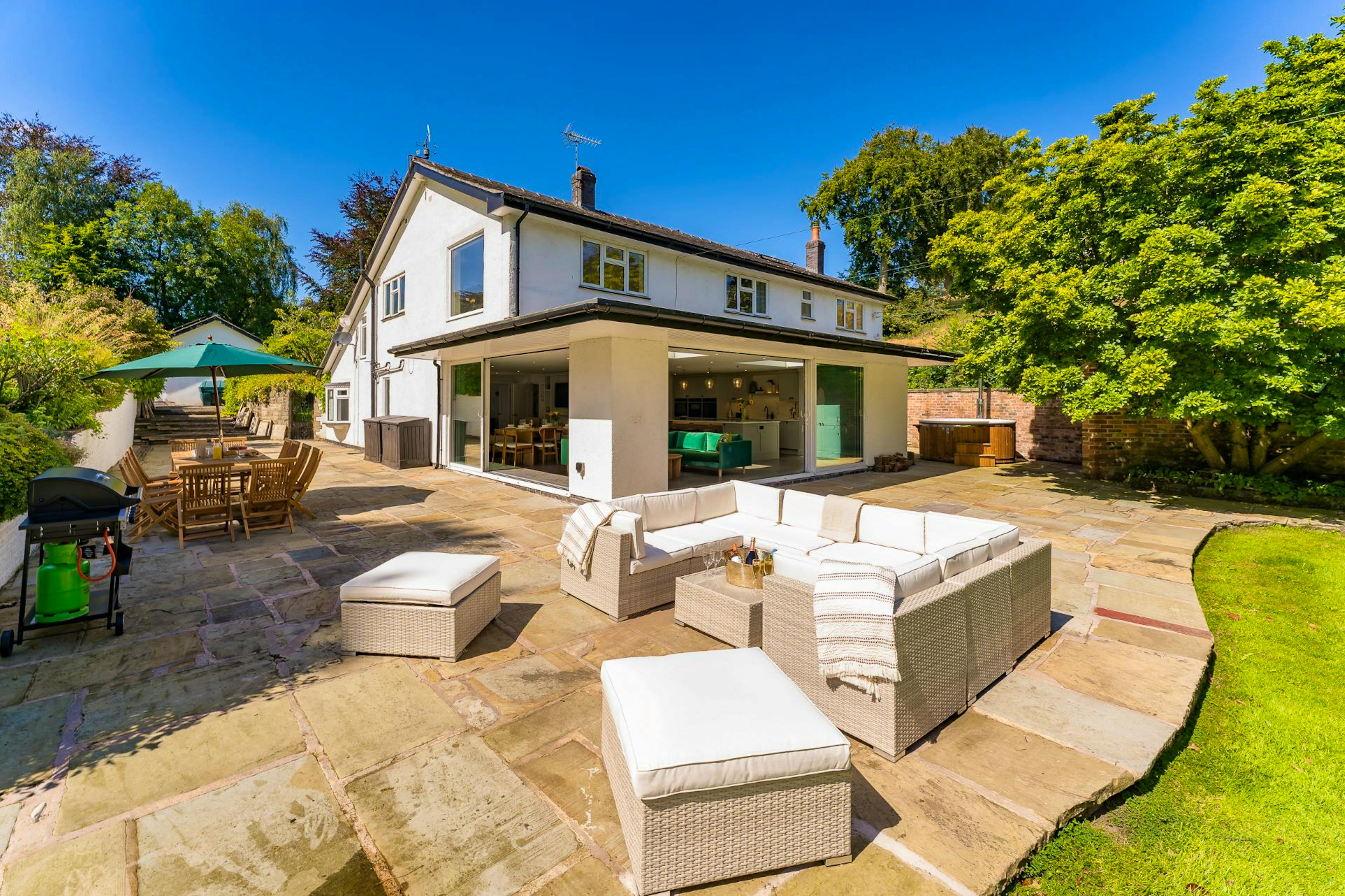 Luxurious countryside retreat in Cheshire with huge gardens, wood-fired hot tub and space for the whole family.