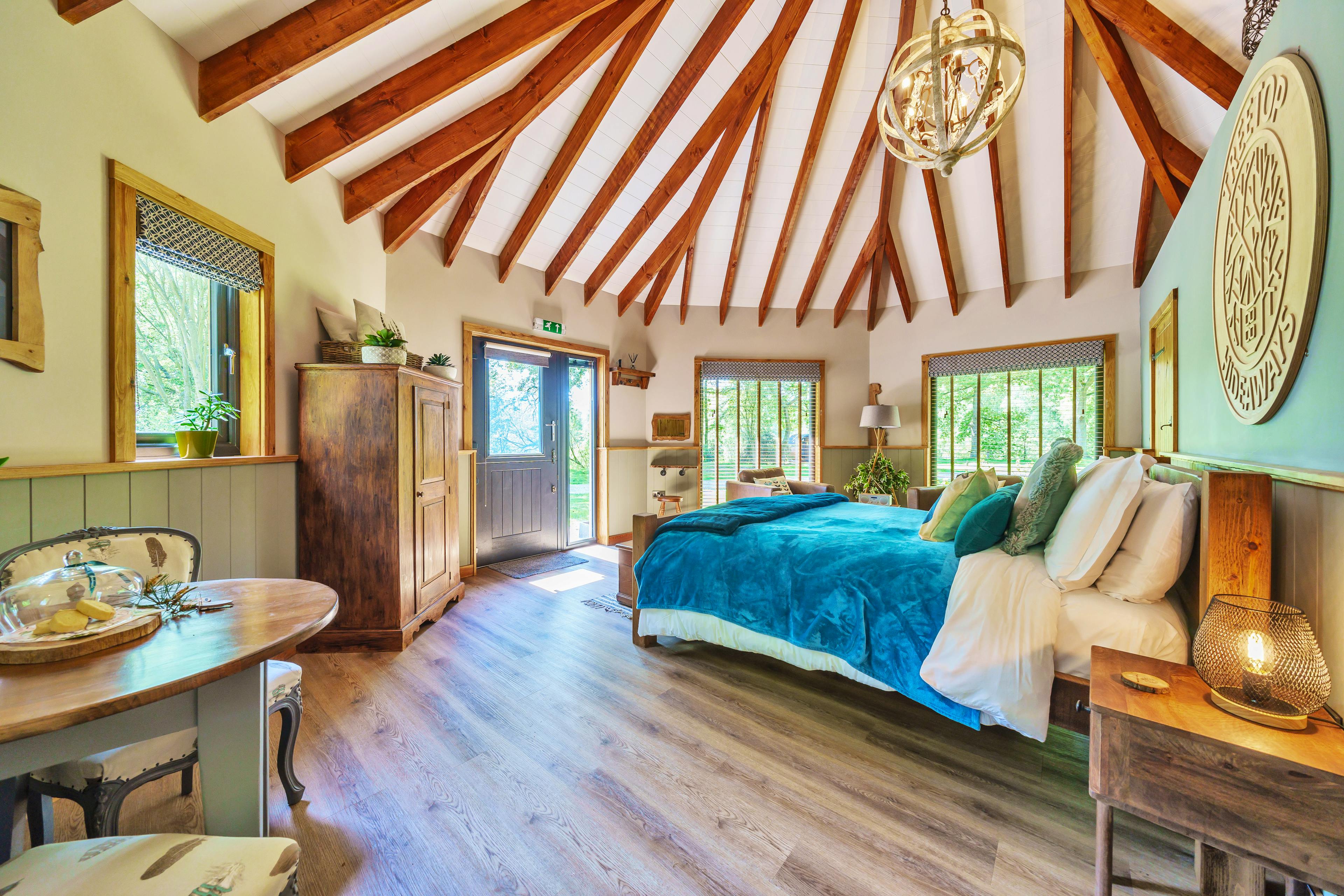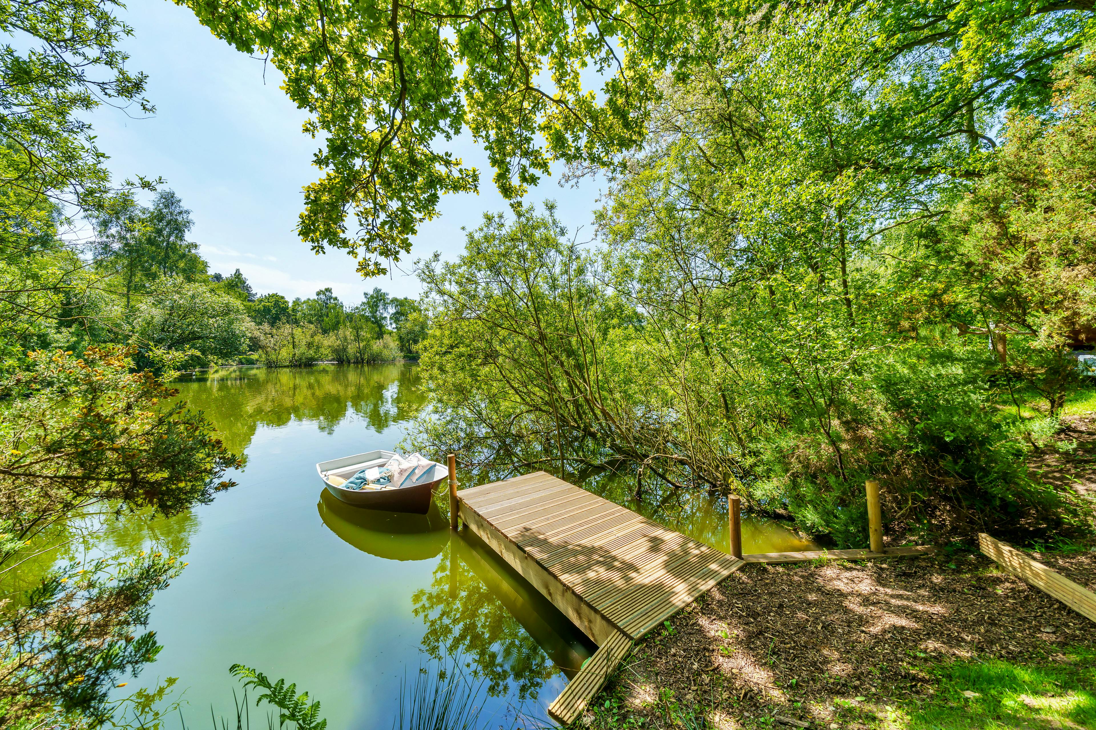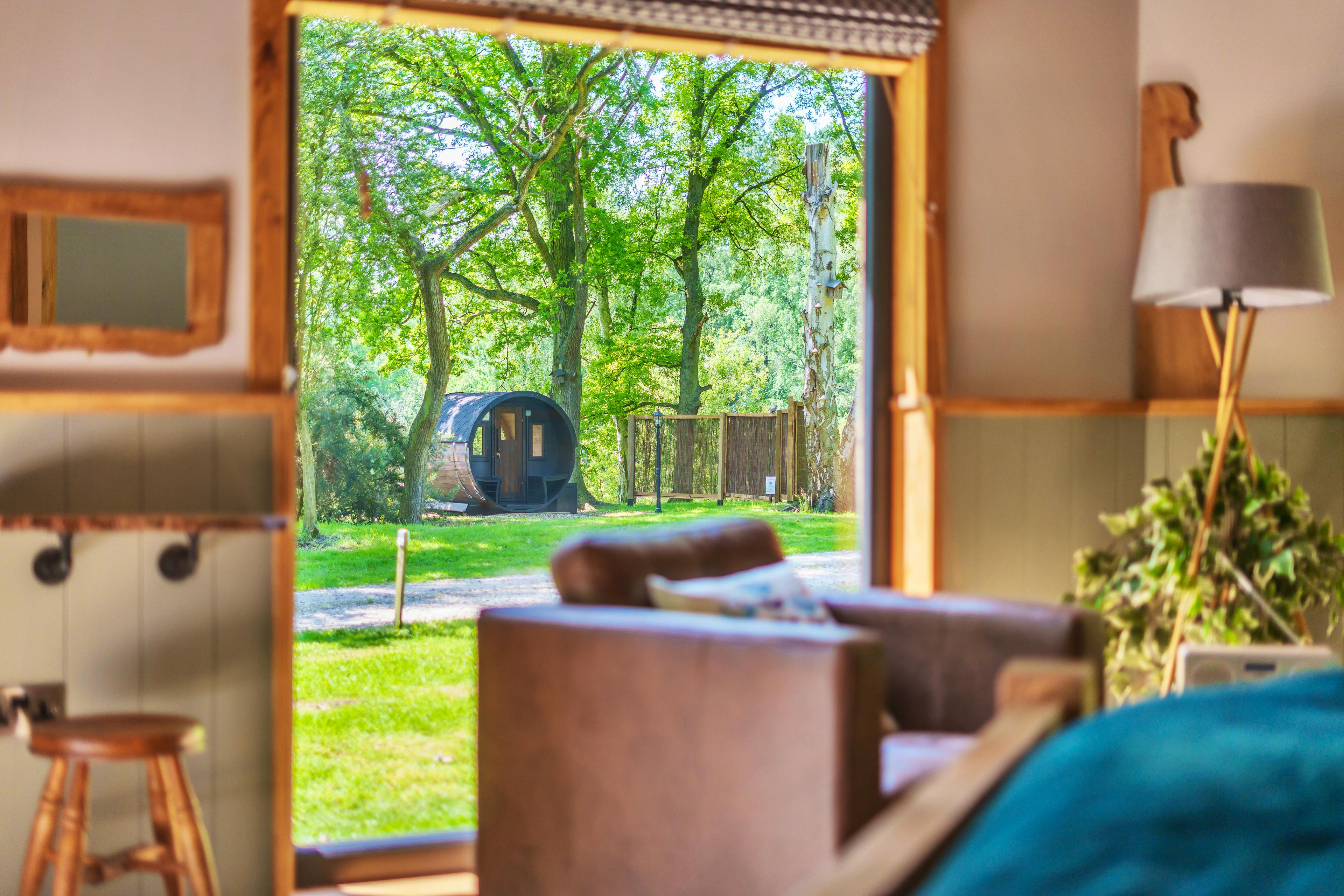Cosy timber lodge in Lincolnshire with a sauna and lakeside mooring - the perfect romantic getaway.