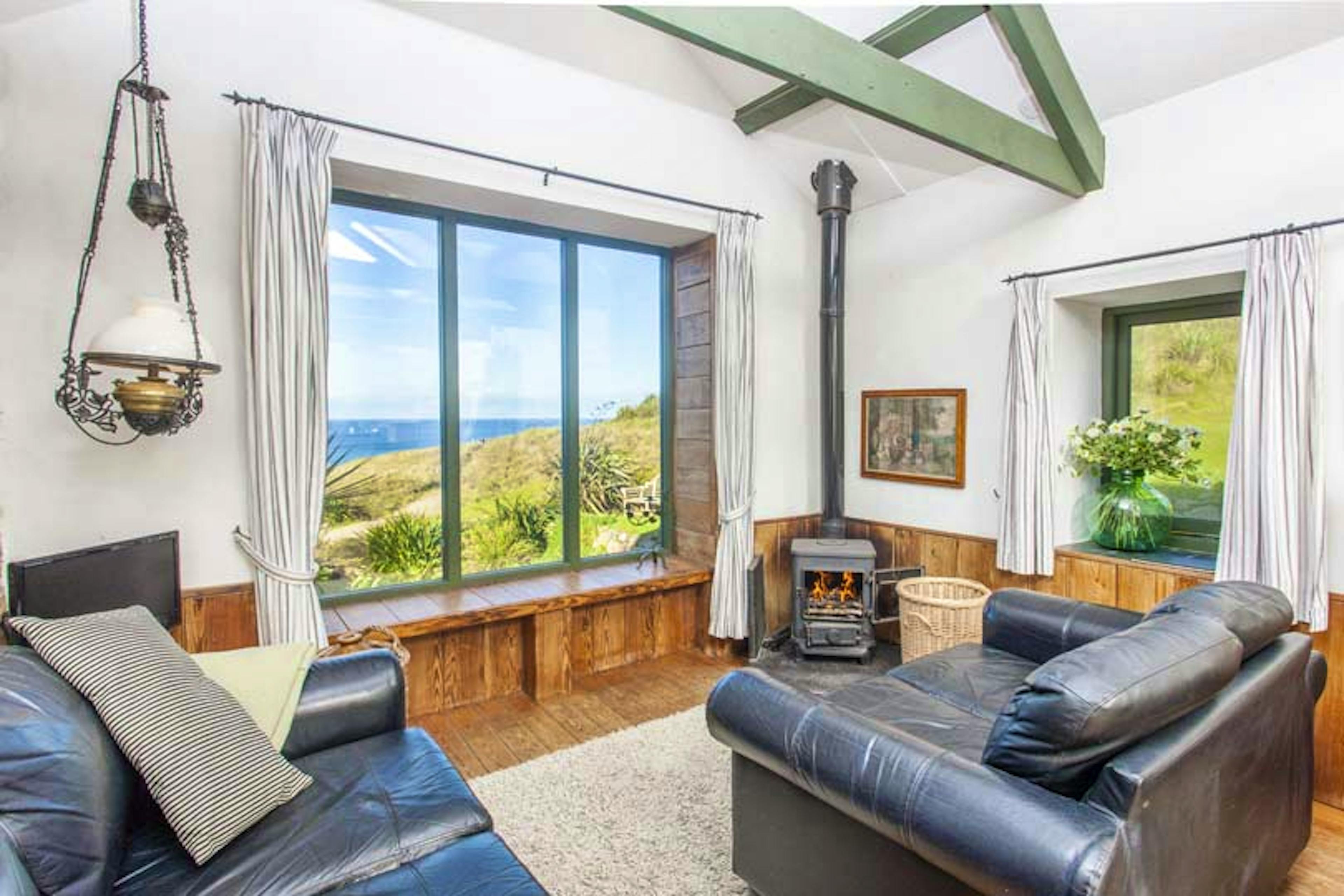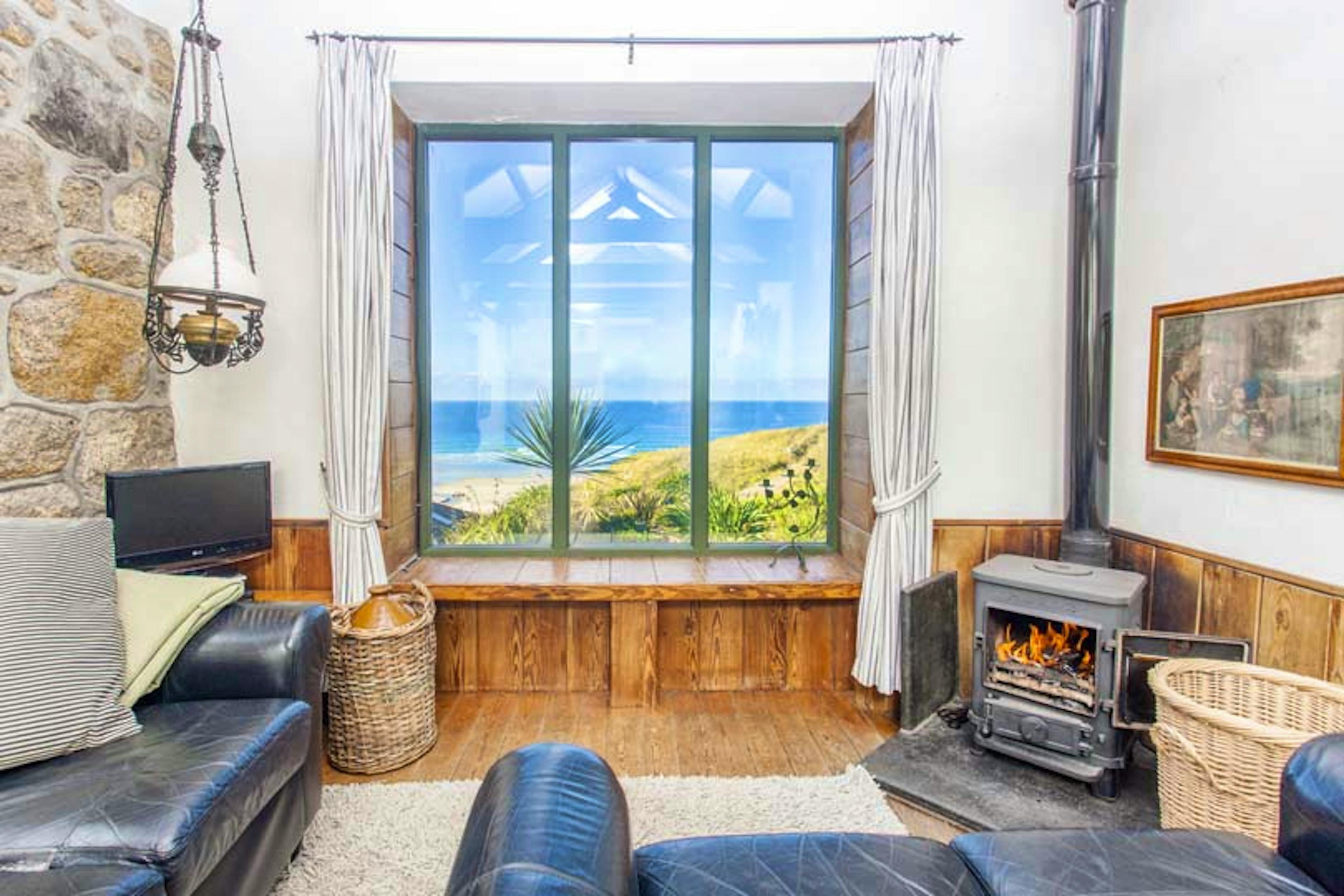 A wide picture window in the living room that really makes the most of that stunning sea view.