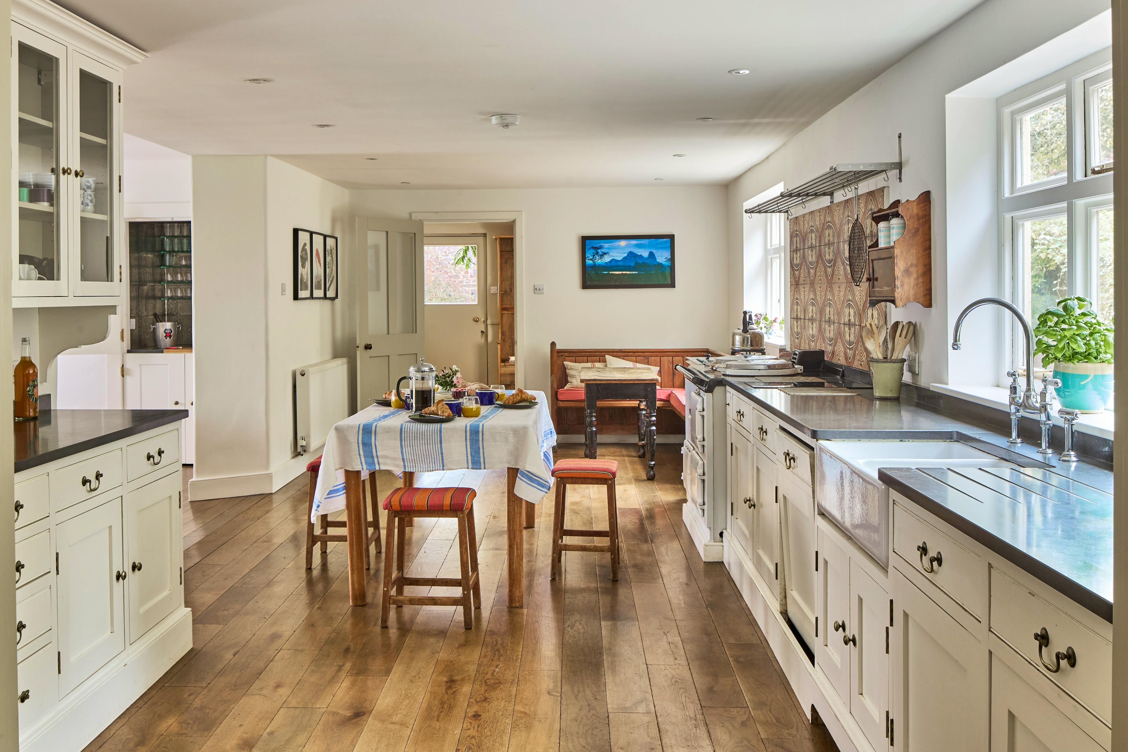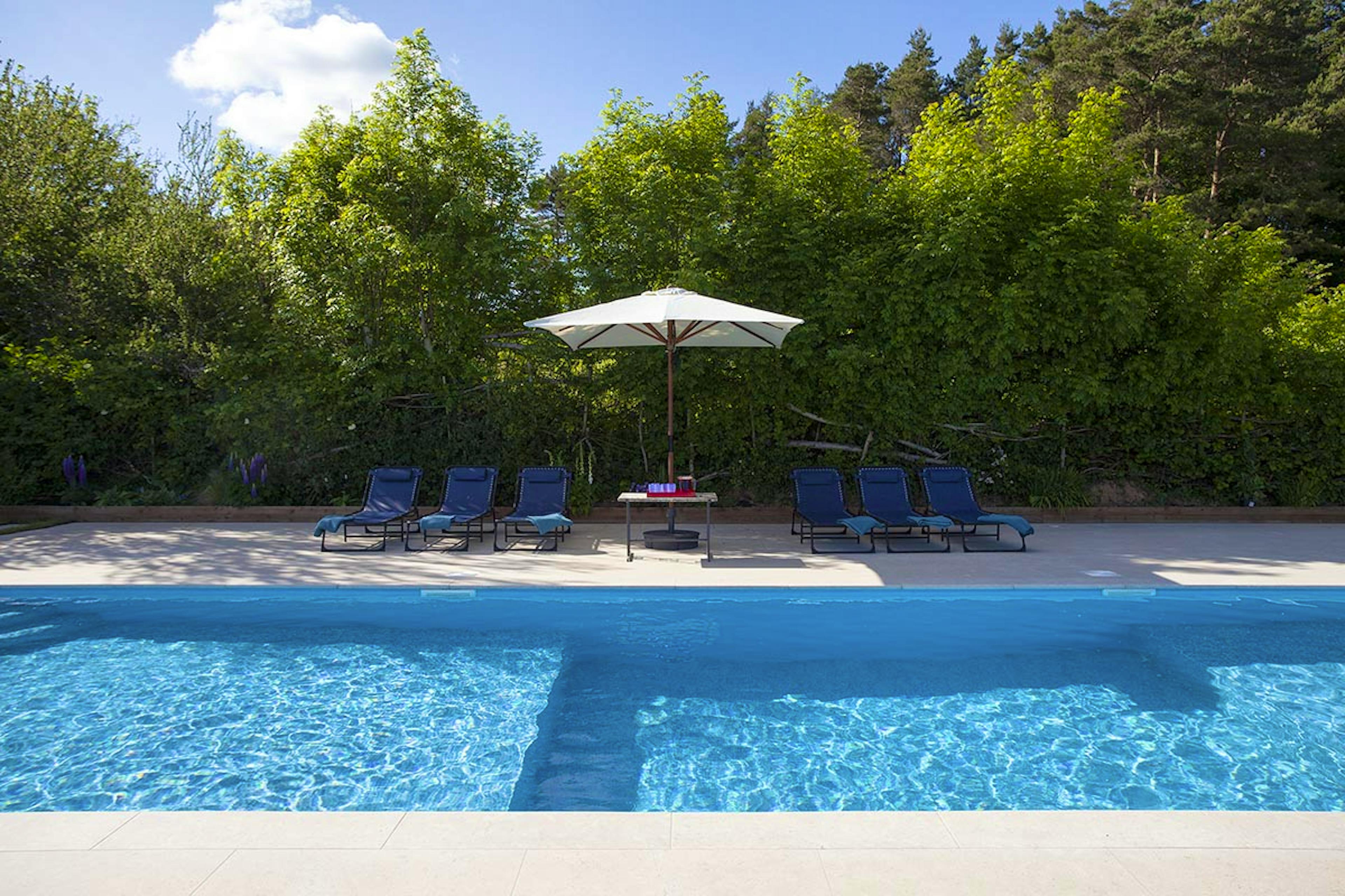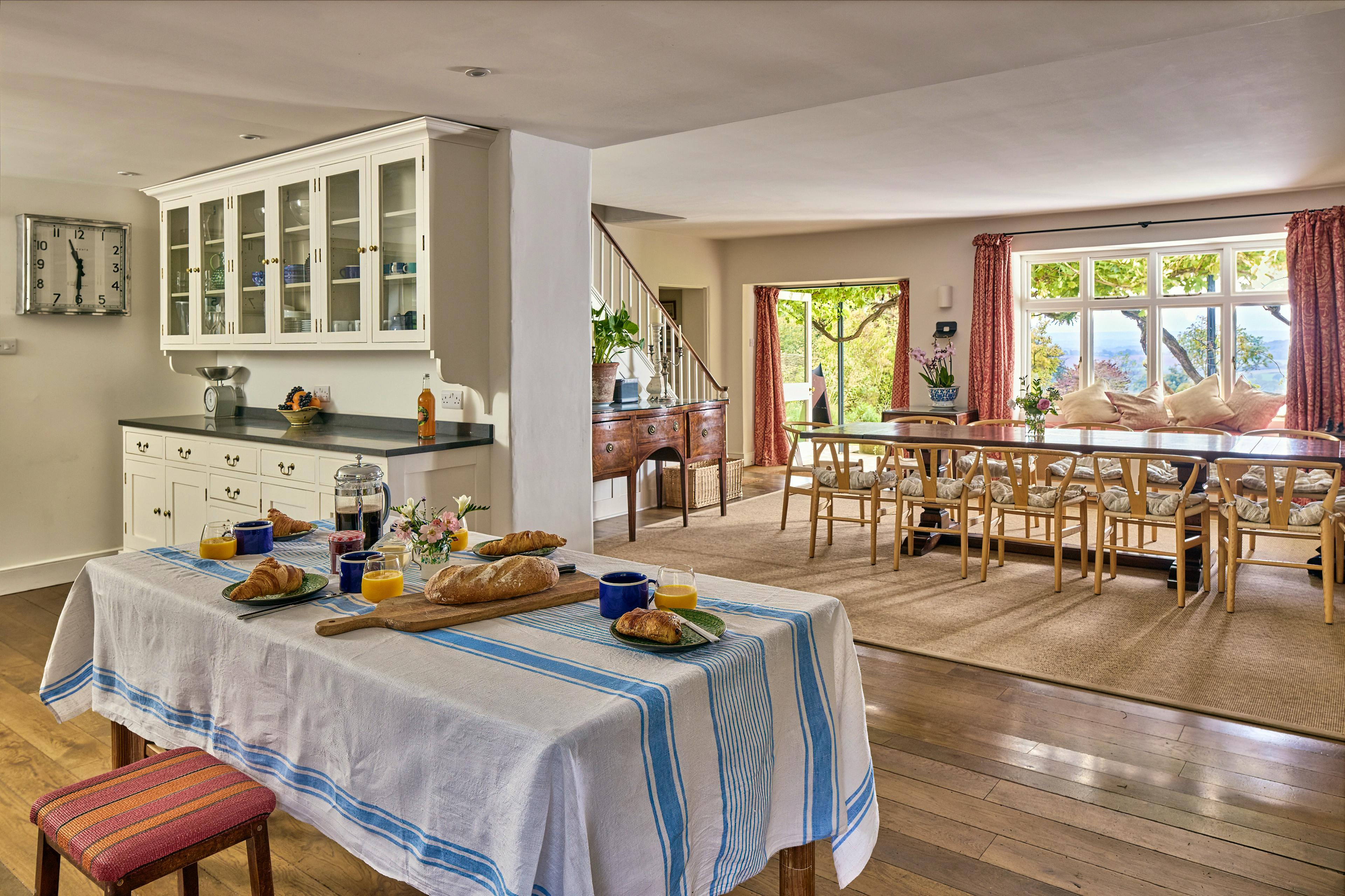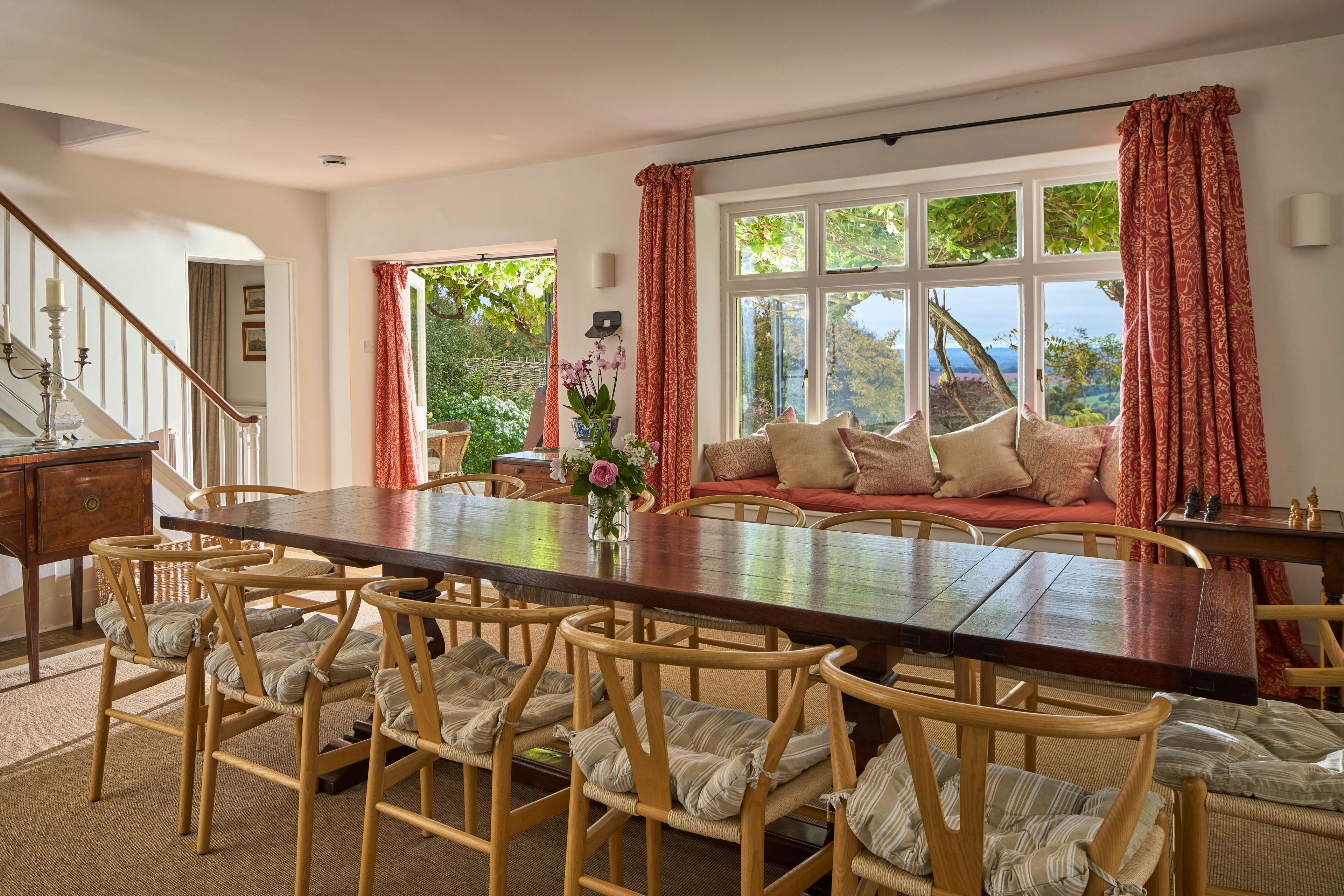 Enter Gogwell through the wood panelled boot room, which is lined with OS maps showing just what a special location this house has. There are walks in all directions and the house sits perfectly right in the middle of a family farm, with rolling farmland around you, no neighbours and a lovely location up a very long drive. Just off the boot room is the TV room, great for children who want to escape the rest of the group, for movie nights and the big game. There is also a second more formal sitting room, which is lined with books, and has cupboards full of games and puzzles - both are really cosy rooms with large squishy sofas and open fires. The fabulous kitchen opens off the boot room and has lovely oak-floors and a warming Aga. There are two additional electric ovens, extra hobs, two dishwashers, two kitchen sinks and every pot and pan you need to cater for large groups. The kitchen has a church pew style seating area but it also opens into the large, bright and spacious dining area - the scene of many a happy dinner party! There is also a fun mirrored cocktail cupboard with a drinks fridge, and a wood-burning stove to cosy things up when the weather turns. The dining room spills onto the verandah which is the ‘room’ that is hardest to leave. It runs the whole length of the south side of the house, is a sun trap and is a place to while away the hours. There is a long trestle table, cosy outdoor sofas and a BBQ and firepit, but the best bit is the breathtaking view which stretches out for miles across beautiful Devon countryside. Enjoy hearty breakfasts and summer lunches BBQs and sundowners - all shaded by grape vines and overlooking one of the finest views in Devon. Much of your stay is spent upstairs so the owners have made the rooms worthy of that. They are calm, light and comfortable with lovely beds and high quality linen. They are configured as four super-king bedrooms and two twins, and there are three bathrooms, one family bathroom, one ‘Jack and Jill’ and one ensuite - off the master which also has a dressing room suitable as an additional bedroom for children. There are also two downstairs loos. The barn is a lovely space, it has an oak floored yoga studio and a bedroom with a super-king bedroom and ensuite - this has no stairs and is suitable for those with mobility issues. This also works well for anyone who wants a bit of peace away from the main group. The enclosed garden is a total joy and it is enormous, with huge lawns and orchards. There is a fabulous 15m swimming pool, great for lengths, for children and - as it has two shallow ends - it is also great for home-rules water polo. For the less energetic there are floating bean bags - perfect for a good book and a G&T. The pool is heated from May to September. For extra fun, there’s a games room with table tennis, table football and darts, and also badminton, croquet, hammocks and a swing on the old oak tree with views looking out to Bickleigh. There are even two resident peacocks milling about. Gogwell is a peaceful, private retreat ideal for recharging, yet it is also perfectly located for exploring the best of Devon. Nearby, enjoy Knightshayes and its gardens, dine at the Lost Kitchen, or stroll along the Grand Western Canal. Within easy reach are the Wellington Monument (25 mins), Exeter (35 mins) and the beautiful gardens of Cothay Manor, Killerton and RHS Rosemoor. Lovely beaches like Saunton and Exmouth, as well as the wild beauty of Dartmoor and Exmoor - with their scenic trails and cosy pubs - make great day trips. From Gogwell, several public footpaths lead to the River Exe and the Exe Valley Trail, including a route to Bickleigh and the Fisherman's Cott, said to have inspired ‘Bridge Over Troubled Water.’ Guests also have access to three miles of fishing on the River Exe.