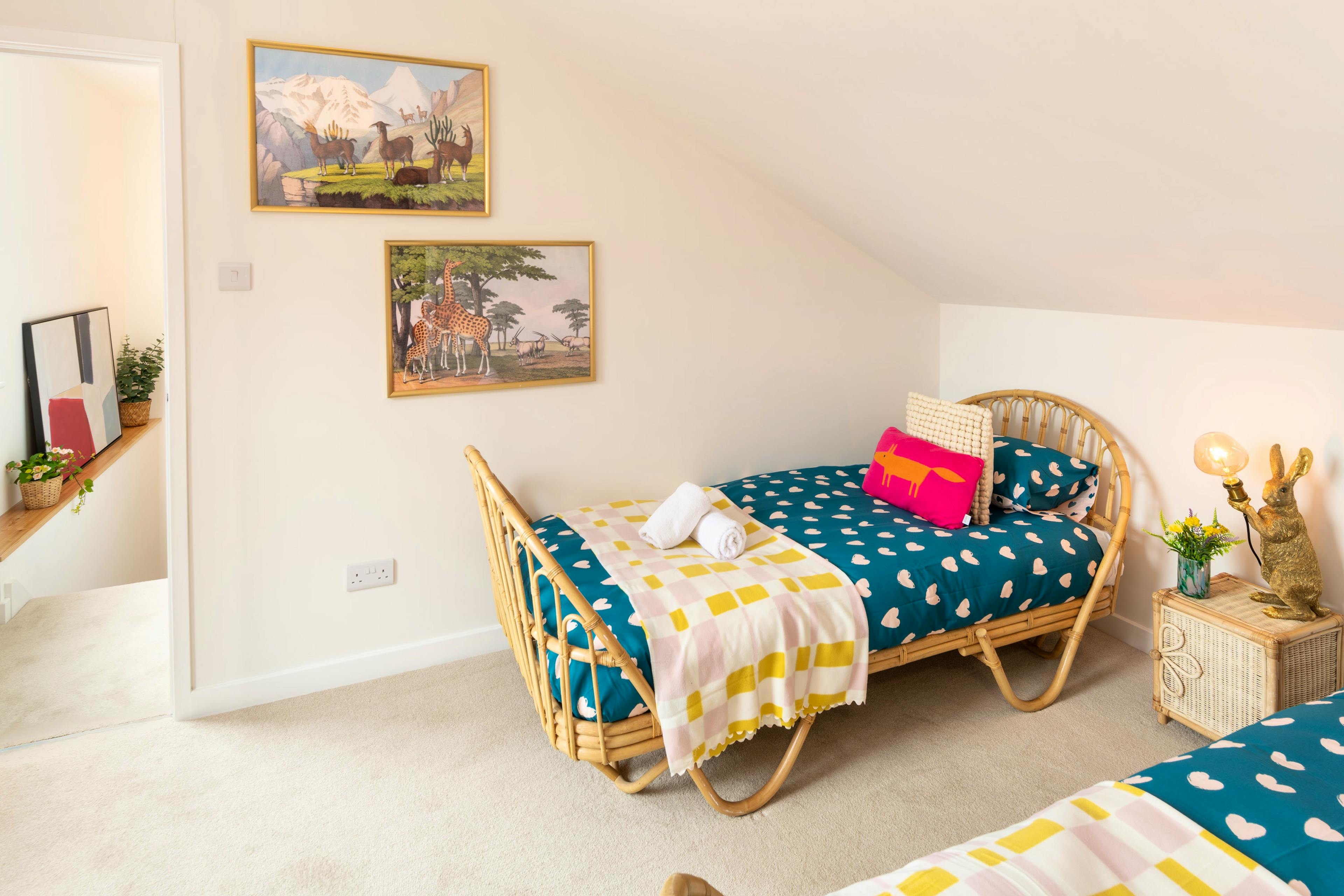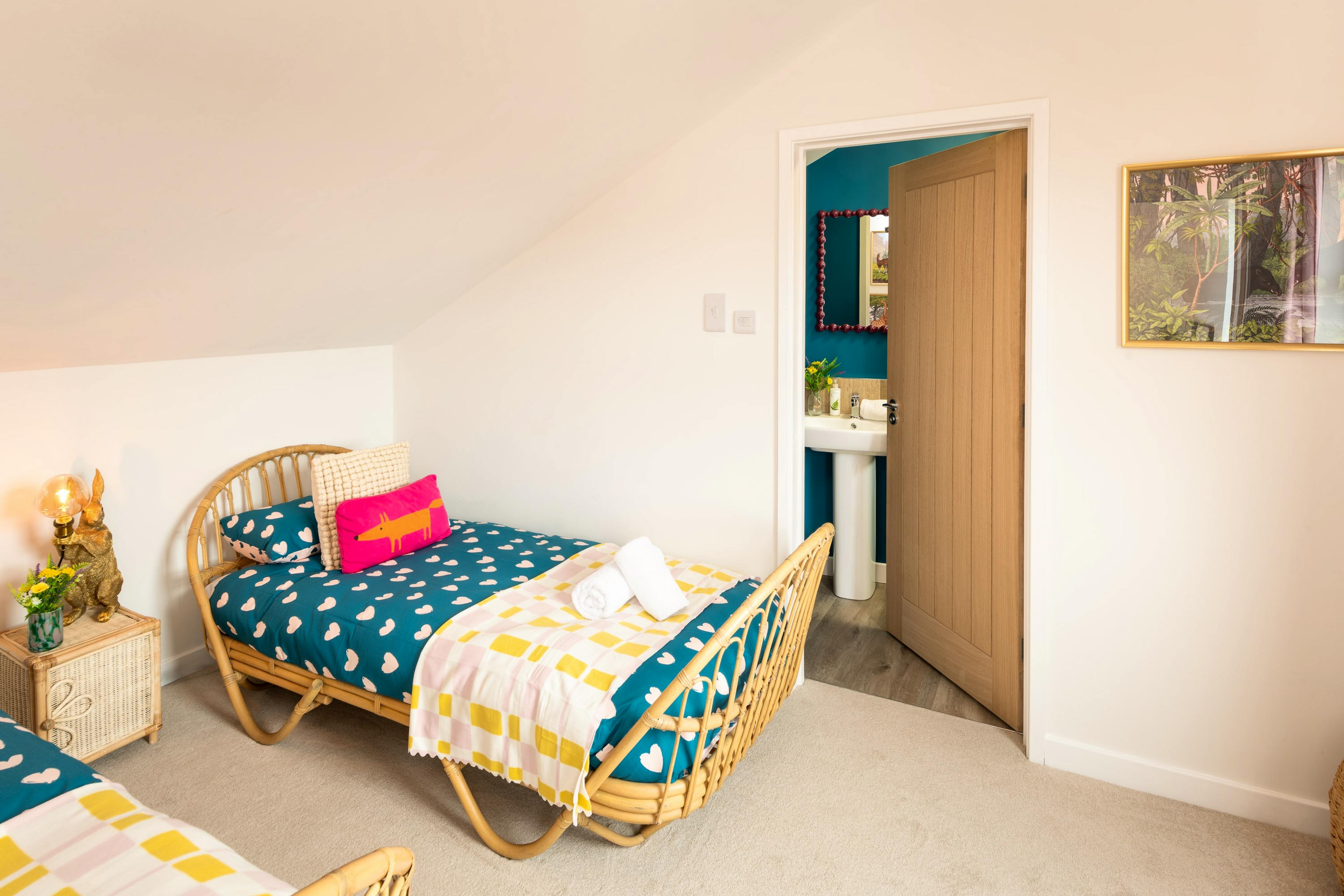 Sleep soundly in two calming king size bedrooms and a colourful children’s twin tucked beneath the eaves.