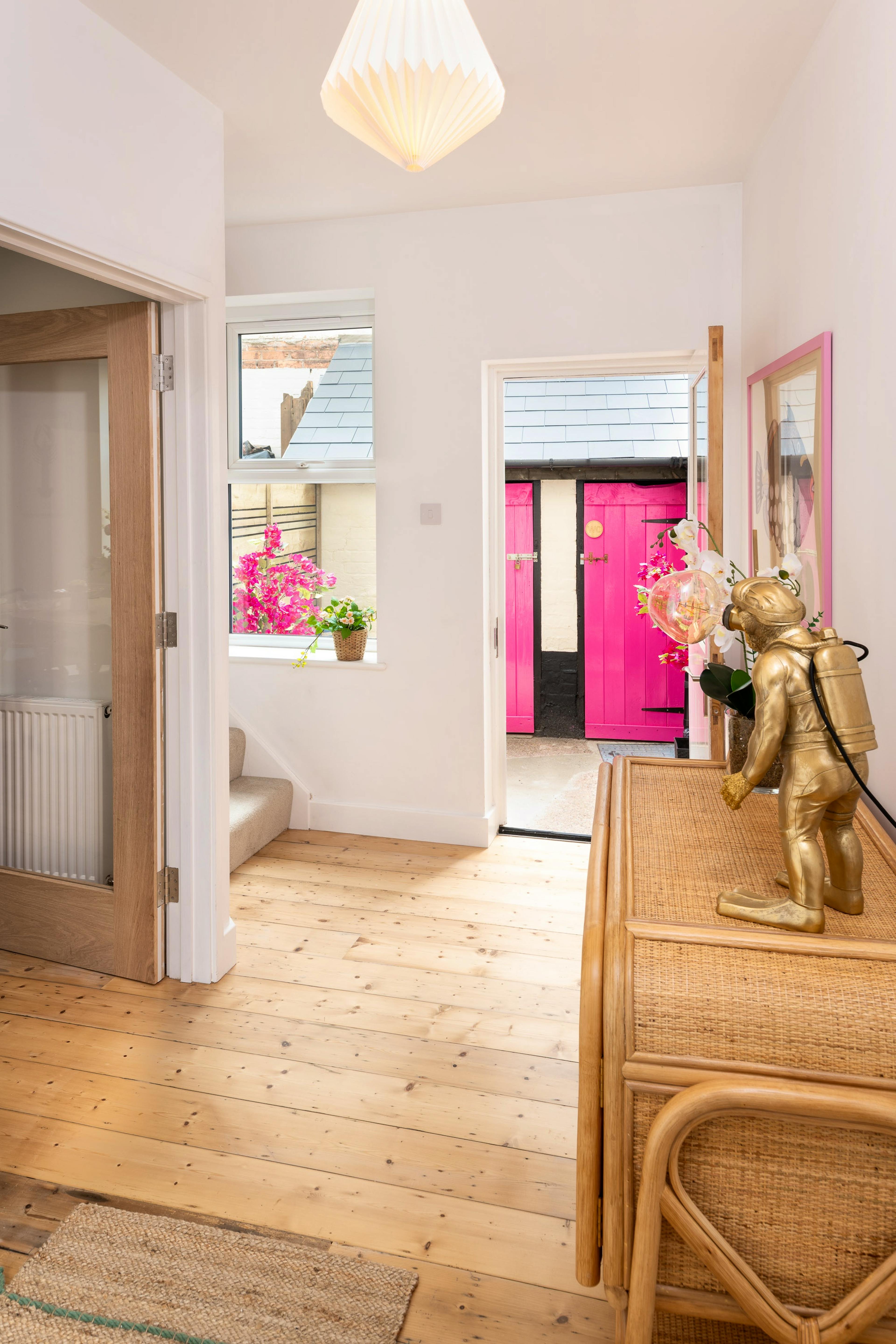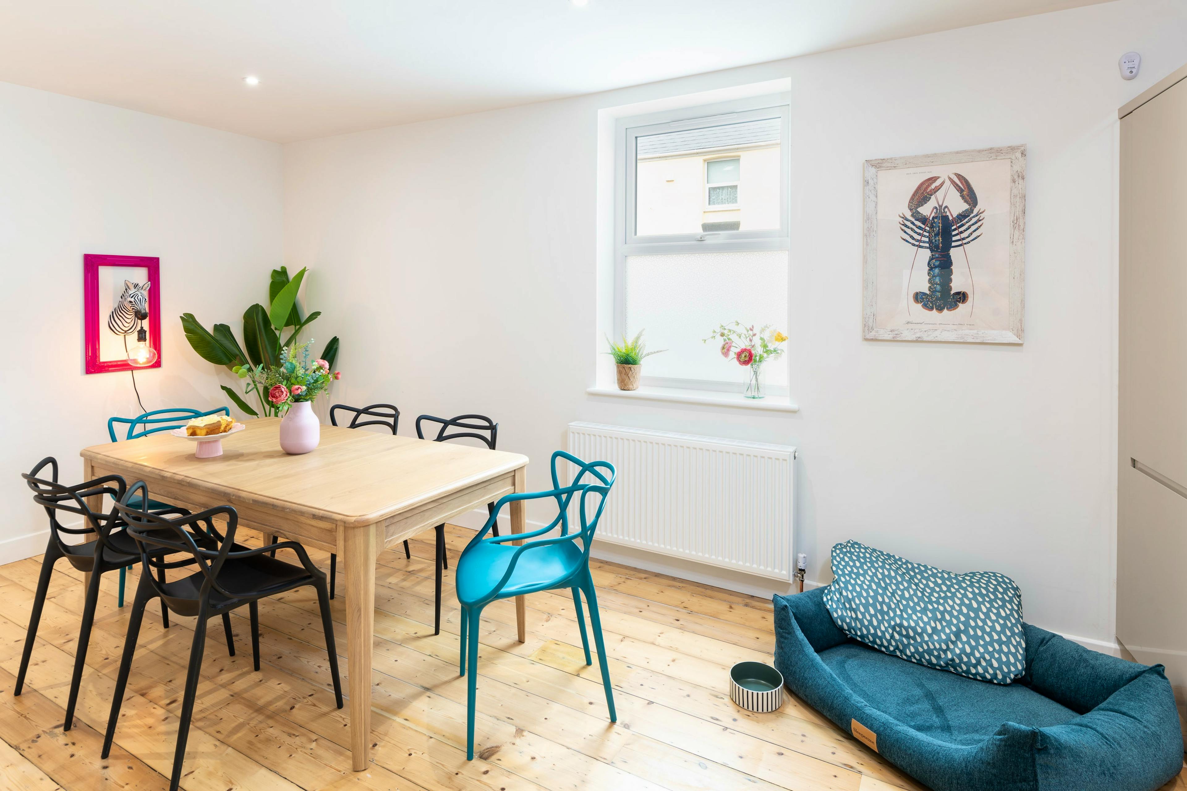 A cheeky seaside escape with style to spare, The Grande Annexe puts you right in the heart of Exmouth’s sun-kissed coast. Just five minutes from the marina, esplanade and long sandy beaches, this contemporary three-storey townhouse is all about fun, colour and easy holiday living. Whether you’re plotting a breezy long weekend by the water or settling in for a full summer stay, this playful pad invites you to kick back, switch off and savour the salty air with your favourite people. Step inside and you’re greeted by joyful interiors that instantly lift the spirits. The ground floor is the social hub, home to a bright kitchen and dining space where morning coffees become long, lazy breakfasts before setting off for the beach. Everything you need is here — a coffee machine for that first brew, all the mod cons for easy mealtimes and doors that open to a petite south-facing courtyard. This snug outdoor nook catches the sun and offers a quiet moment before the day begins, while the extra WC outside adds welcome convenience on busy beach days. Up on the first floor, guests can unwind in the cosy lounge, furnished with sink-in sofas perfect for an hour with a book or a family film night after a long day by the sea. A serene king size bedroom and a smart family bathroom complete this level. Climb again to the top floor and you’ll find a charming twin bedroom designed with children in mind, complete with its own compact ensuite. The second king size bedroom sits alongside it, offering grown-ups a peaceful retreat beneath the eaves. From your doorstep the best of Exmouth is yours to explore — watersports, boat trips along the Exe, arcades, ice cream stops and the classic Devon seaside charm that makes this town so beloved. Venture further afield and the Jurassic Coast reveals its treasures in Budleigh Salterton, Sidmouth and Lyme Regis. Or trace the Exe Estuary by bike along the Sustrans route, passing wildlife-rich shores, Lympstone, Topsham and the grand sweep of Powderham Castle before looping back through Dawlish Warren. It’s one of Devon’s finest day trips and a must for lovers of fresh air and big horizons.