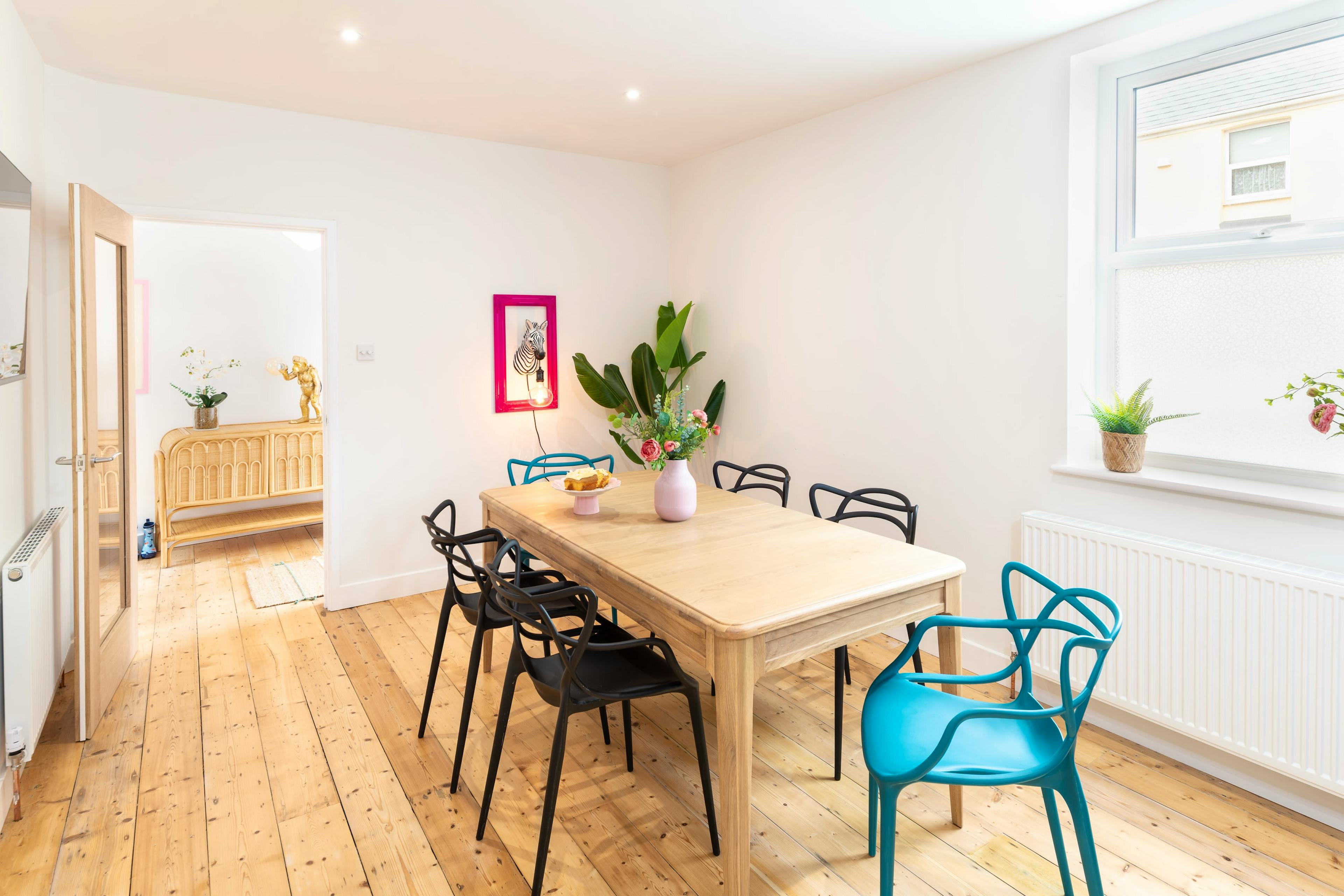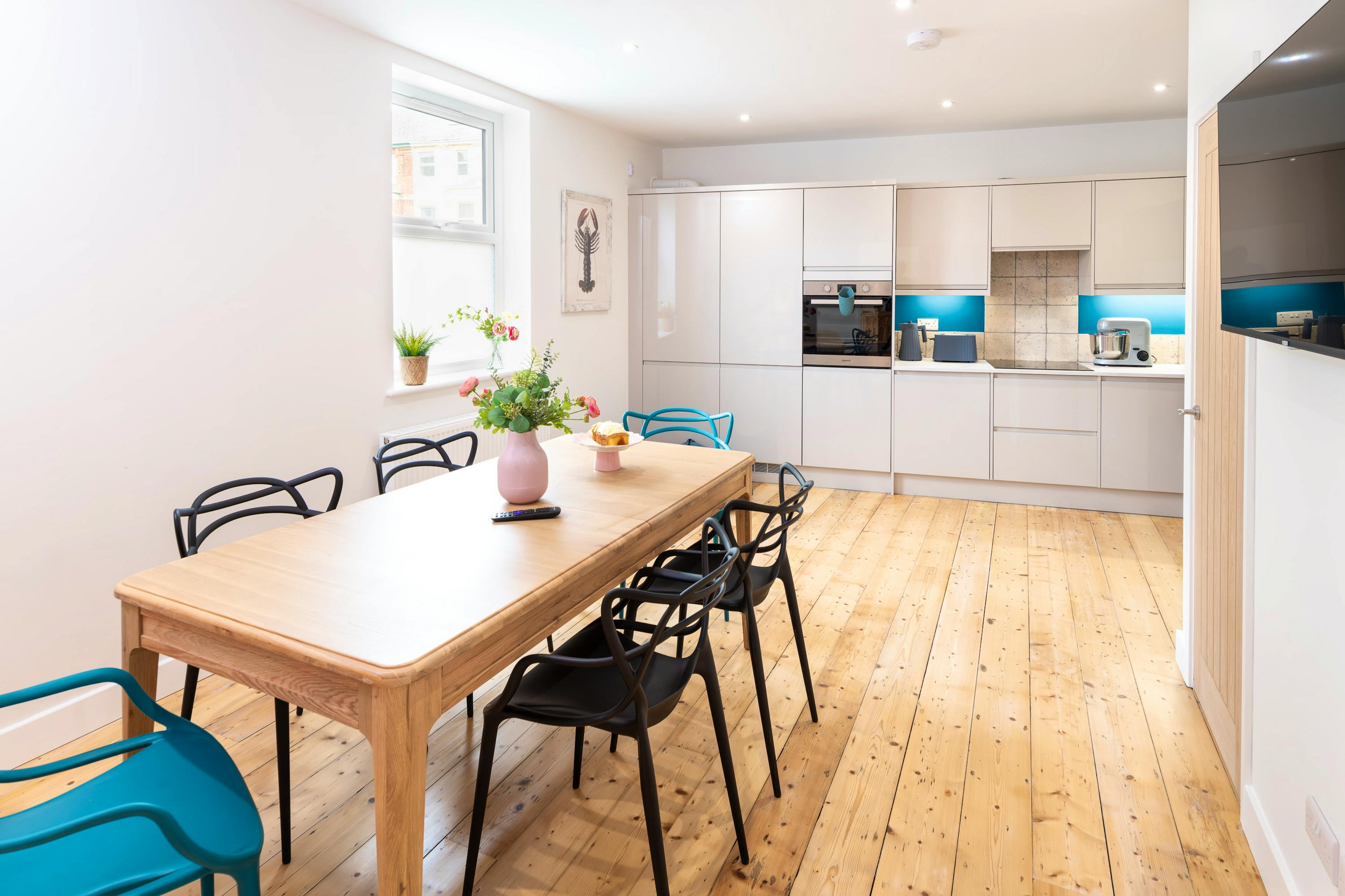 Enjoy relaxed mornings in the bright kitchen-diner as sunlight spills across the table.