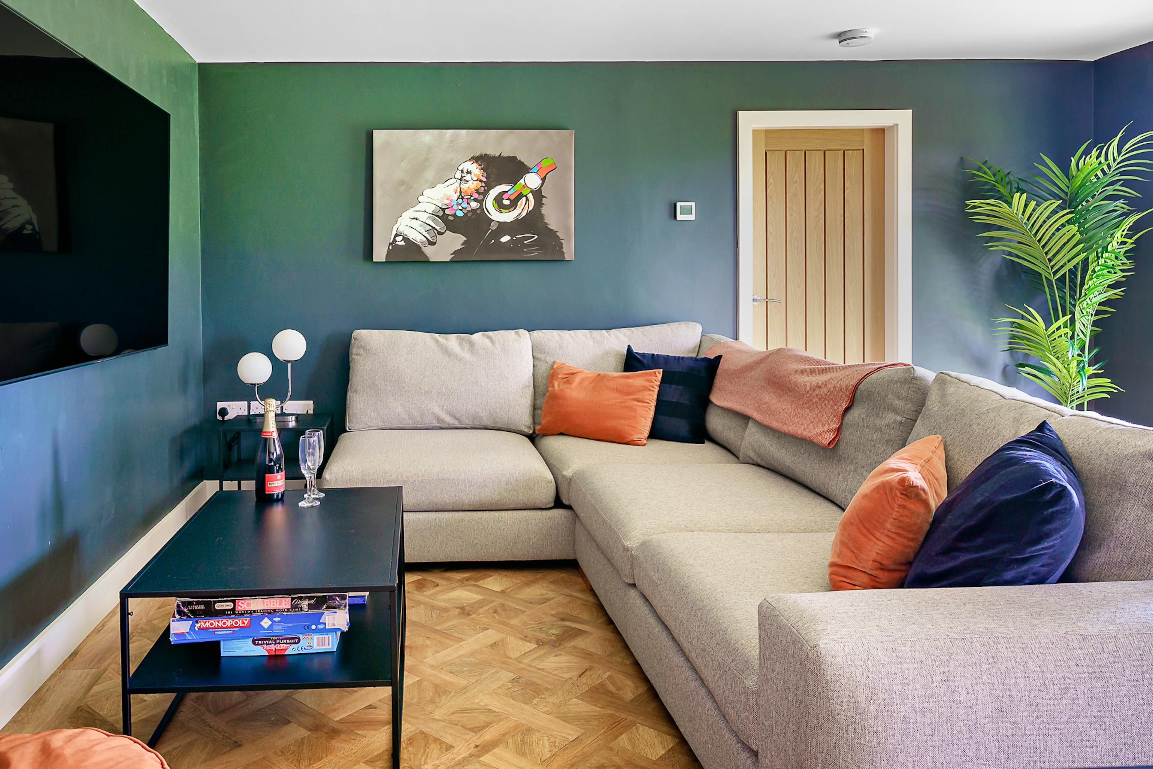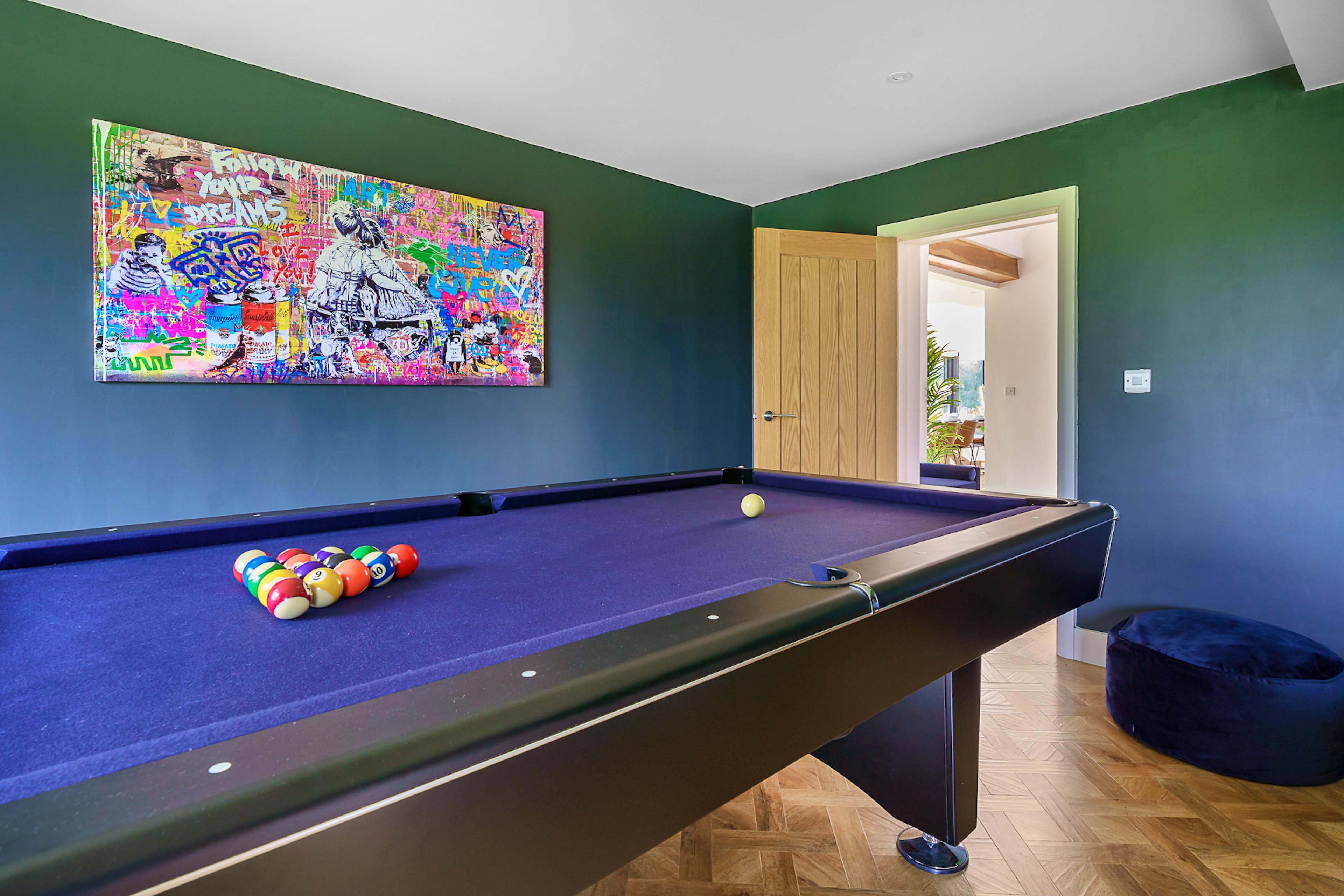 Cosy lounge with smart TV and fireplace, plus a fun games room with pool table and snug.