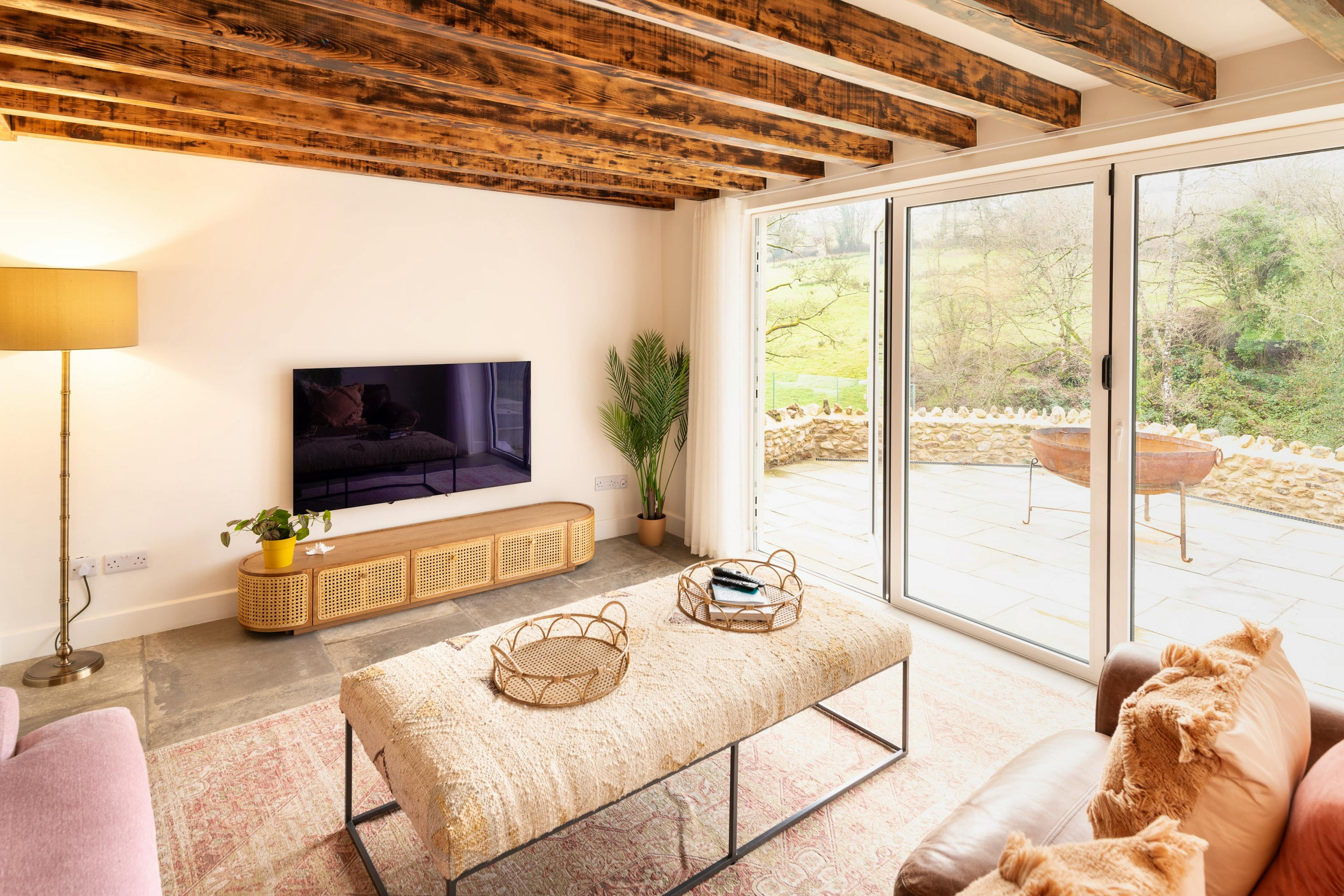 Hadhams is the kind of country retreat that makes you exhale the moment you arrive. Light filled and beautifully styled, this spacious home blends sleek contemporary design with cosy traditional touches, creating a luxurious escape for families and groups. Set just moments from Axminster and only a short hop from Lyme Regis, it promises blissful downtime, fabulous entertaining spaces and gorgeous countryside views from dawn to dusk. Step through the front door into the generous open plan living space where the sitting room, dining area and kitchen all flow together effortlessly. This is where everyone will naturally gather, sharing lazy breakfasts, celebratory suppers or simply long chats with the bi fold doors open to the garden. The interiors are thoughtfully curated with quality furnishings and statement pieces, including beautiful touches from Graham and Green, ensuring every corner feels both stylish and wonderfully inviting. The sitting room is a joy throughout the year thanks to those huge bi fold windows that flood the space with light even on grey days. For quieter moments or cosy evenings in, the snug offers a warm retreat with a wood burner and deep seating perfect for unwinding with a film. When the competitive spirit strikes, the games room steps in with a full size pool table and darts board that will keep the fun flowing long into the night. Keen cooks will adore the expansive country kitchen equipped with a large Rangemaster oven, American fridge freezer and one of the smartest coffee machines around. Vast worktops and plenty of room for helpers make it a dream space for rustling up feasts with the very best local produce. Throw open the doors to dine overlooking the garden with gentle views of the rolling fields beyond. Upstairs, four beautiful bedrooms offer rest and retreat. The master bedroom, dressed in romantic coral shades, features a super king size bed and an ensuite with lovely countryside views. There is also a king room, a double, and a versatile bunk room ideal for children or adults. A spacious family bathroom includes a roll top bath and walk in shower. Outside, the garden sets the scene for alfresco relaxation. With lawns, rural views and a hot tub available on request, sunset evenings become something truly special. The surrounding area is a dream for explorers. Within minutes you can reach Axminster, River Cottage HQ or the fossil filled coastline at Lyme Regis. Enjoy beach days, farm shops, woodland walks or scenic rambles along the Jurassic Coast before returning to this peaceful haven.