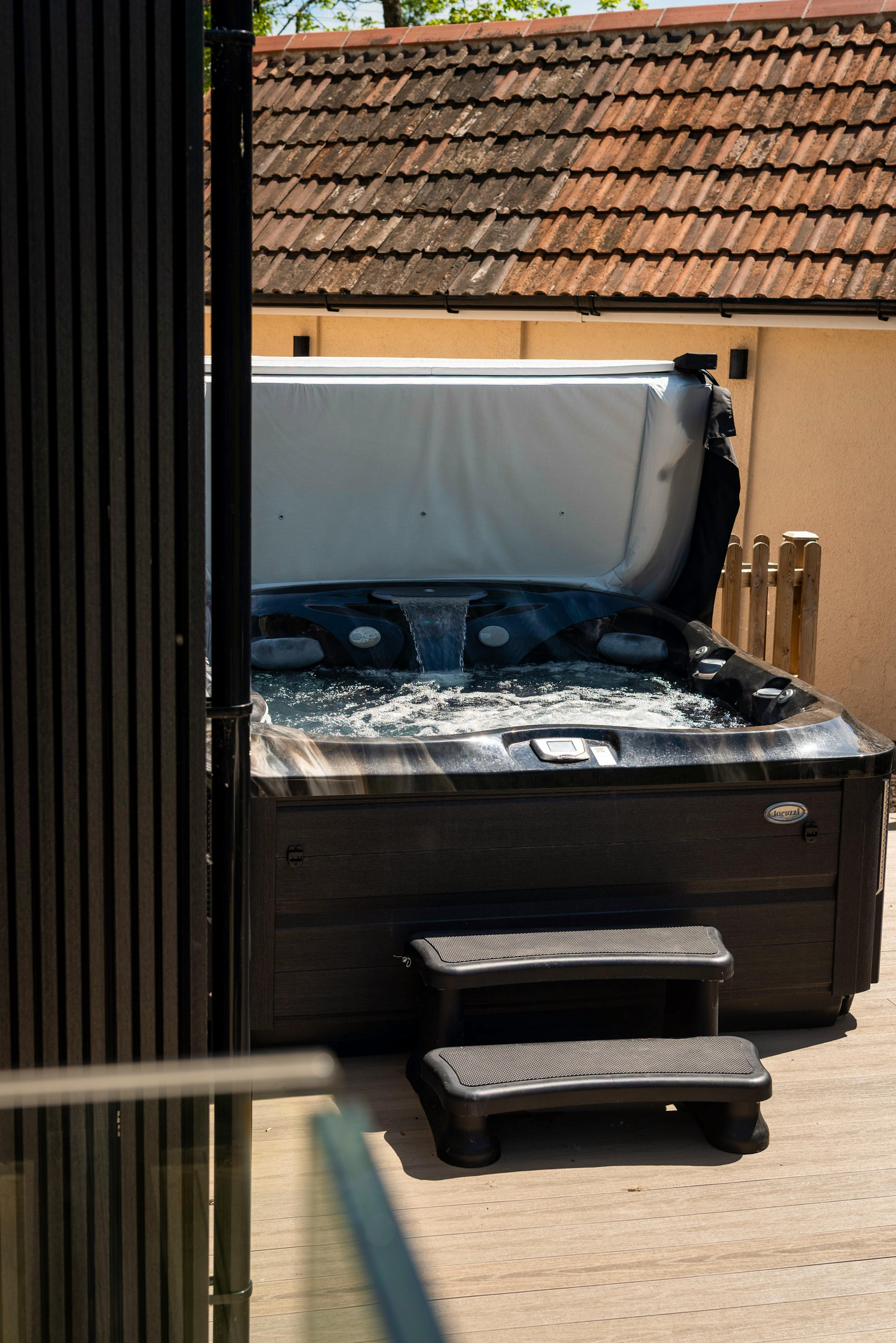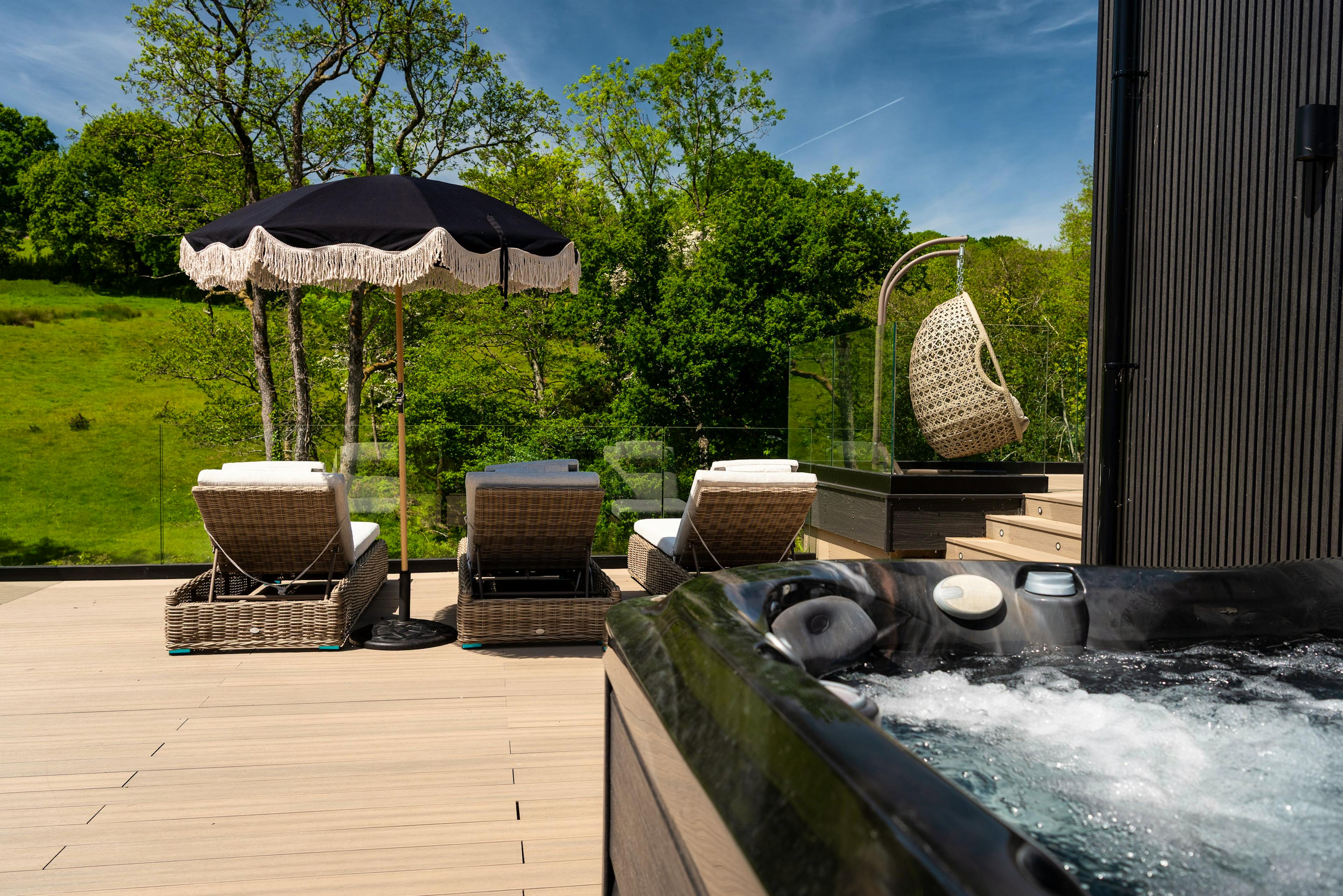 The hot tub is available on request for an additional supplement.